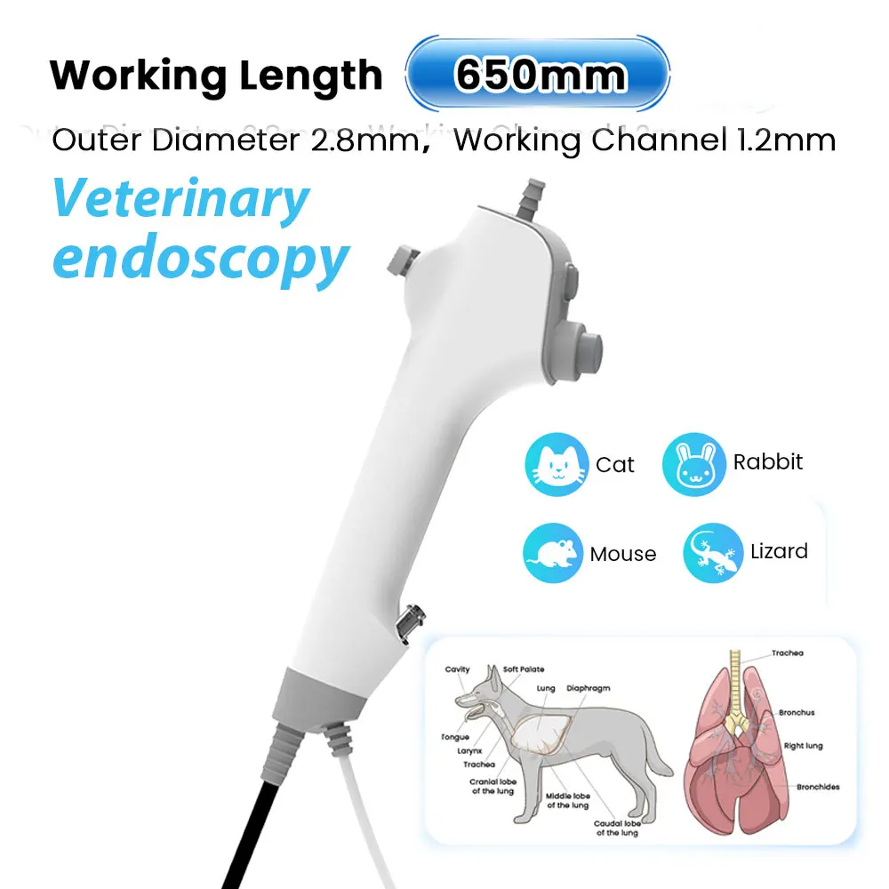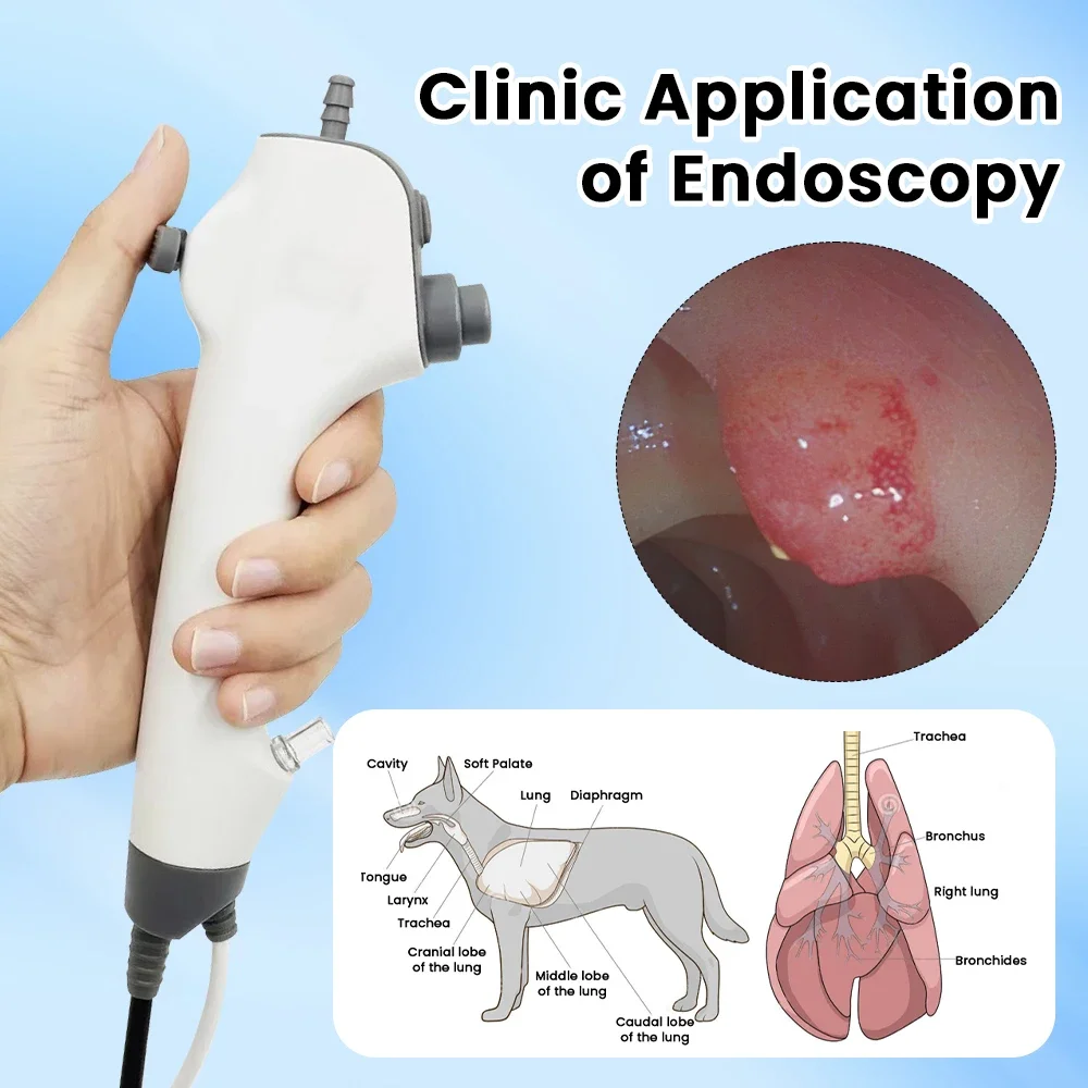 Aplicación clínica de endoscopia: Examen y tratamiento de la garganta del tracto digestivo del hospital de animales, para boncoscopia de animales pequeños (gato, perro), rinoscopia, oesófago, cuerpo extraño, cistoscopia, vagincopia, etc.