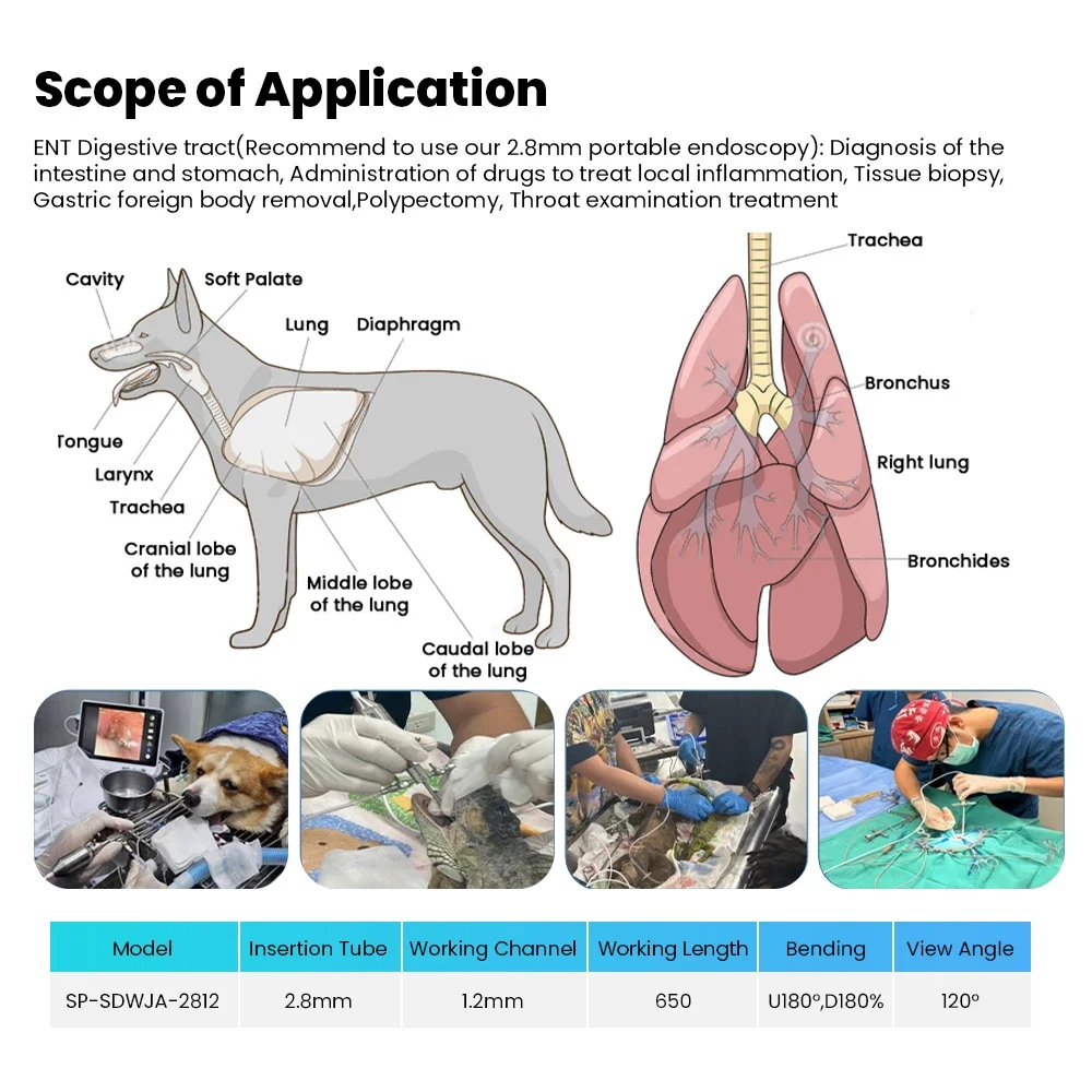 SP-SDWJA-2812 con diámetro exterior de 2,8 mm, diámetro interior de 1,2 mm y longitud de trabajo extendida de 650 mm, es perfecto para animales Gastroscopia, Sinuscopia, Gastroscopia, cistoscopio endoscópico de urología, etc.