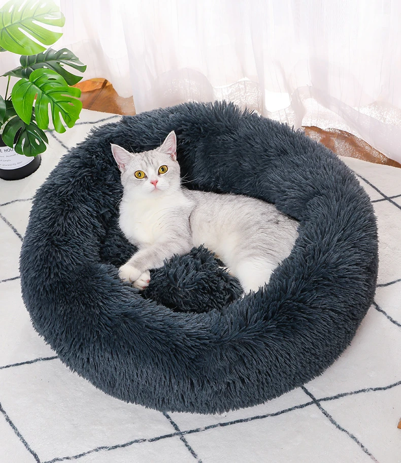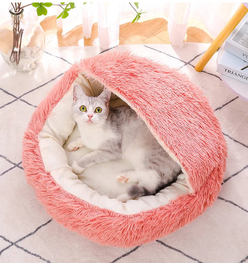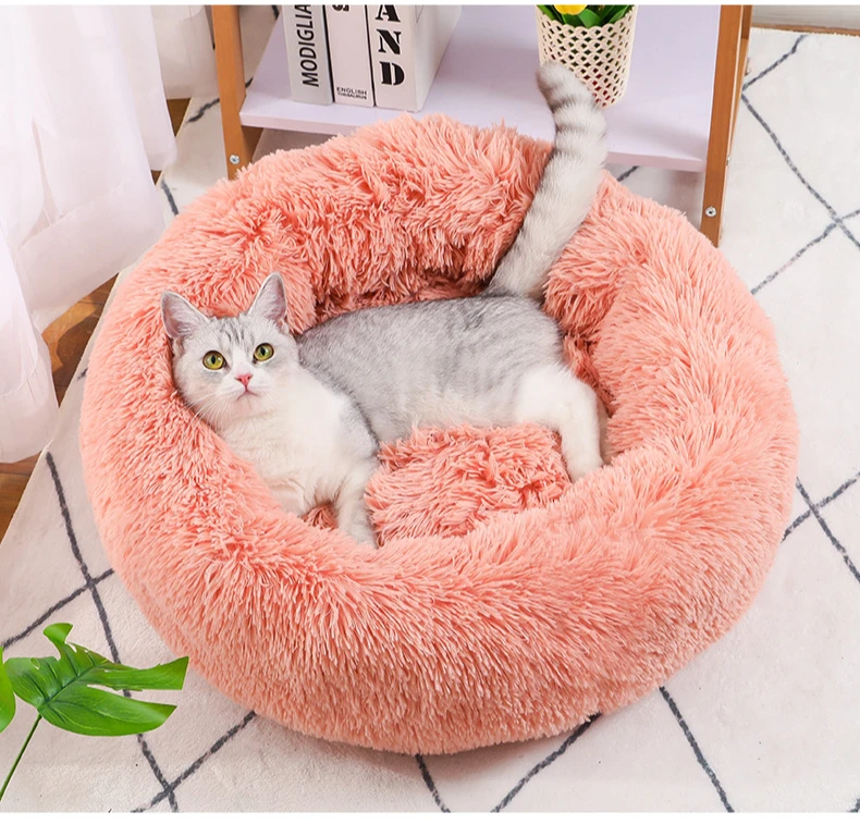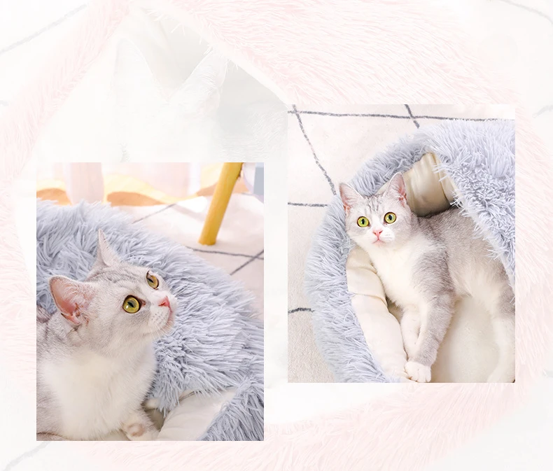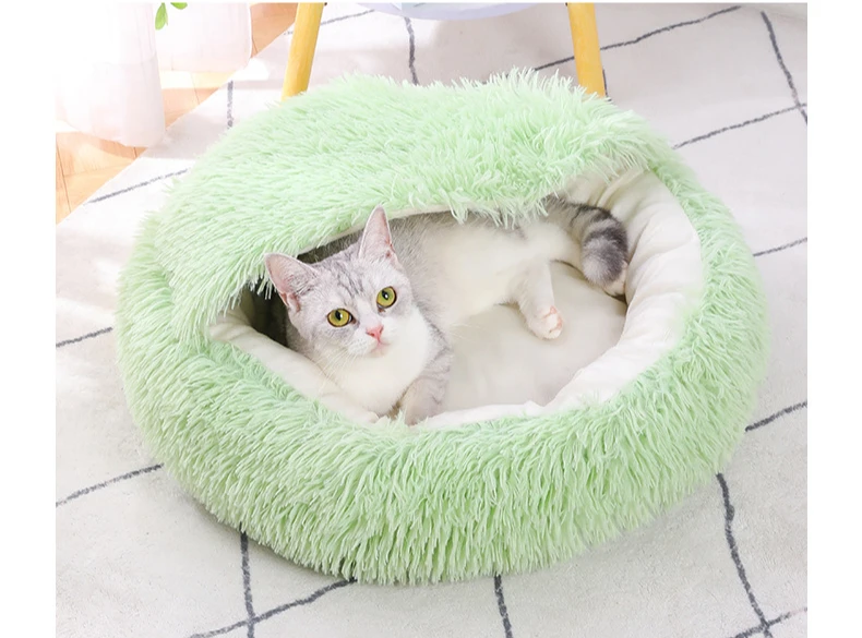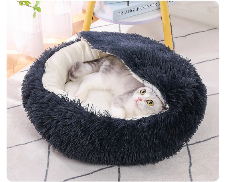 Camas cálidas de lana para gatos, relleno de algodón PP, nido de peluche suave para cachorros y gatitos, comodidad interior antideslizante, esteras para dormir para mascotas, camas para perros