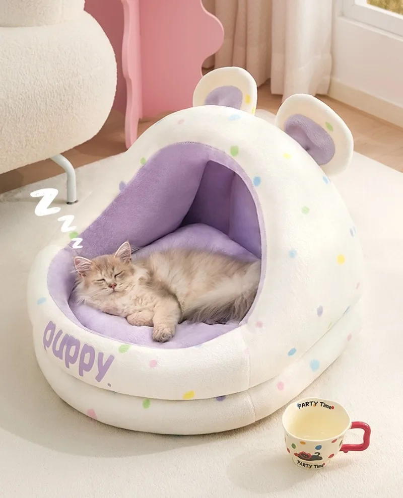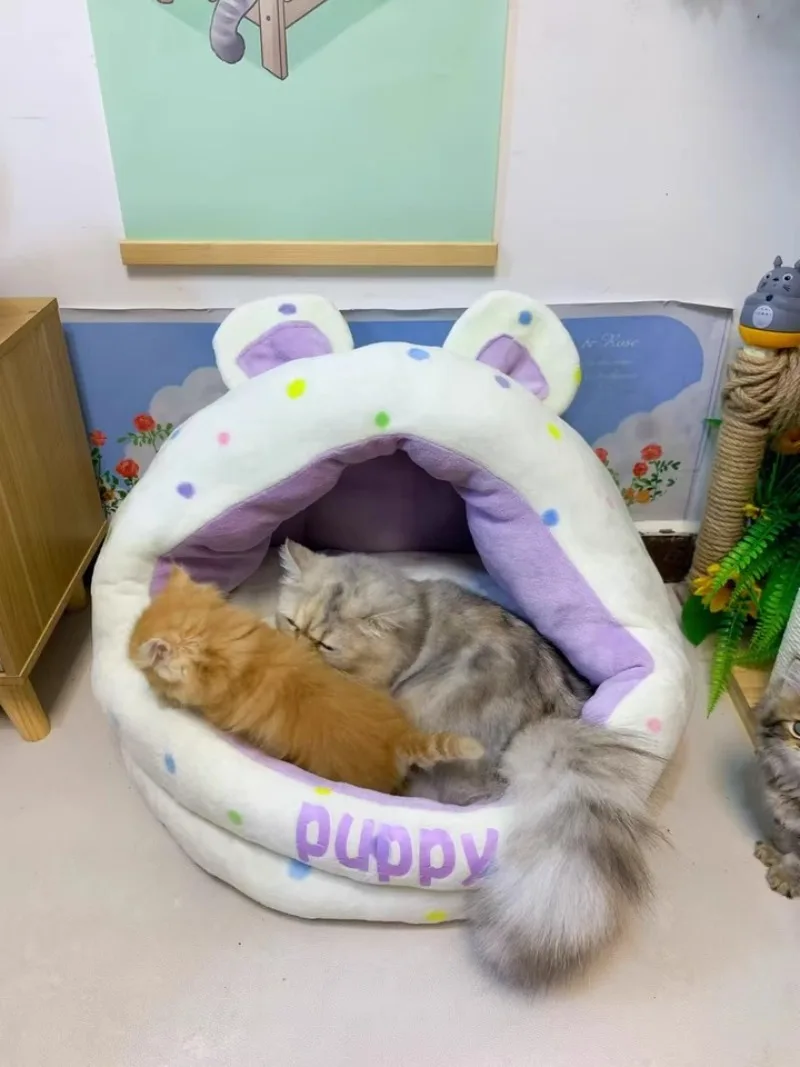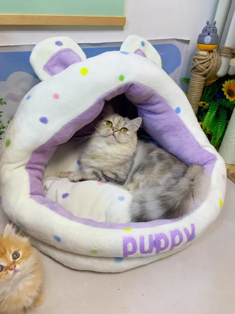 Camas para gatos gruesas y cálidas para invierno, sofá para dormir, camas semicerradas de terciopelo para perros, casa grande, Villa oculta para gatos, productos bonitos de lujo para mascotas