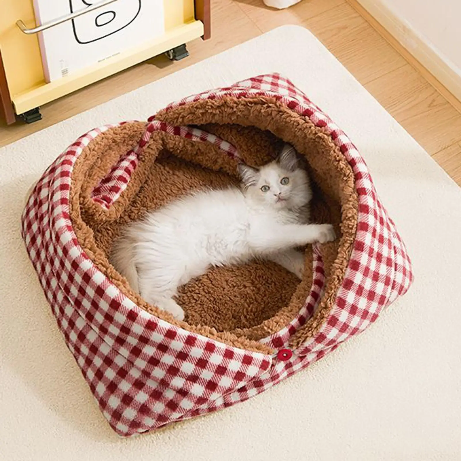 2.Usos versátiles: este nido para gatos presenta una estructura que permite dar vueltas con manta y adaptabilidad del cojín, que ofrece relajación en varias formas, lo que lo hace ideal para jugar, descansar o escenarios cómodos para la siesta.