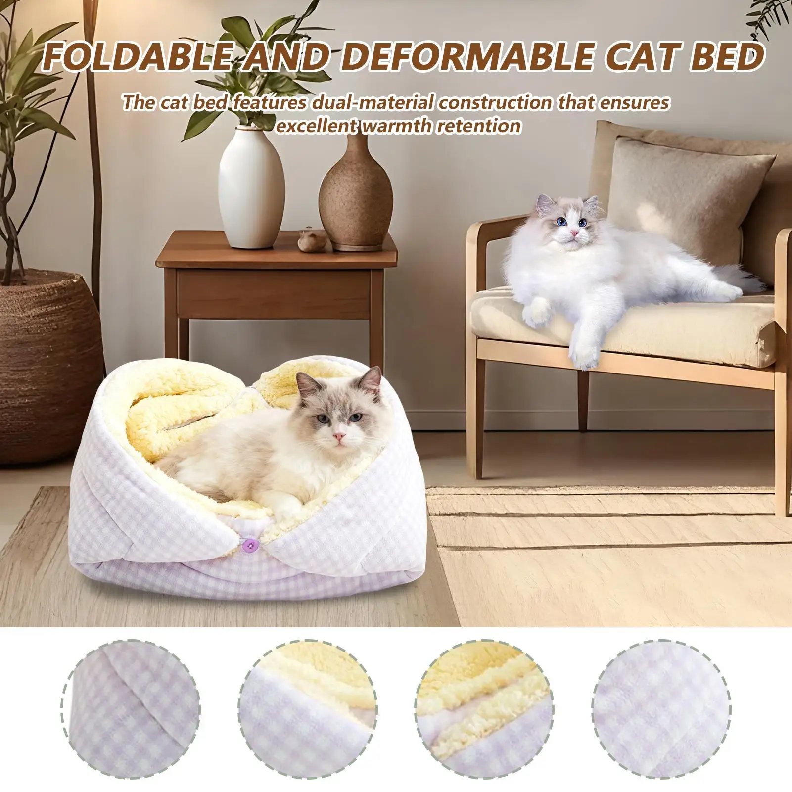 4.Garantía de comodidad durante todo el año: las camas para gatos cuentan con regulación avanzada de temperatura, lo que garantiza protección del aire acondicionado y selección lateral estacional para una calidez óptima en invierno y frescura en verano, mejorando la relajación de su gato durante siestas o sesiones de descanso en interiores.