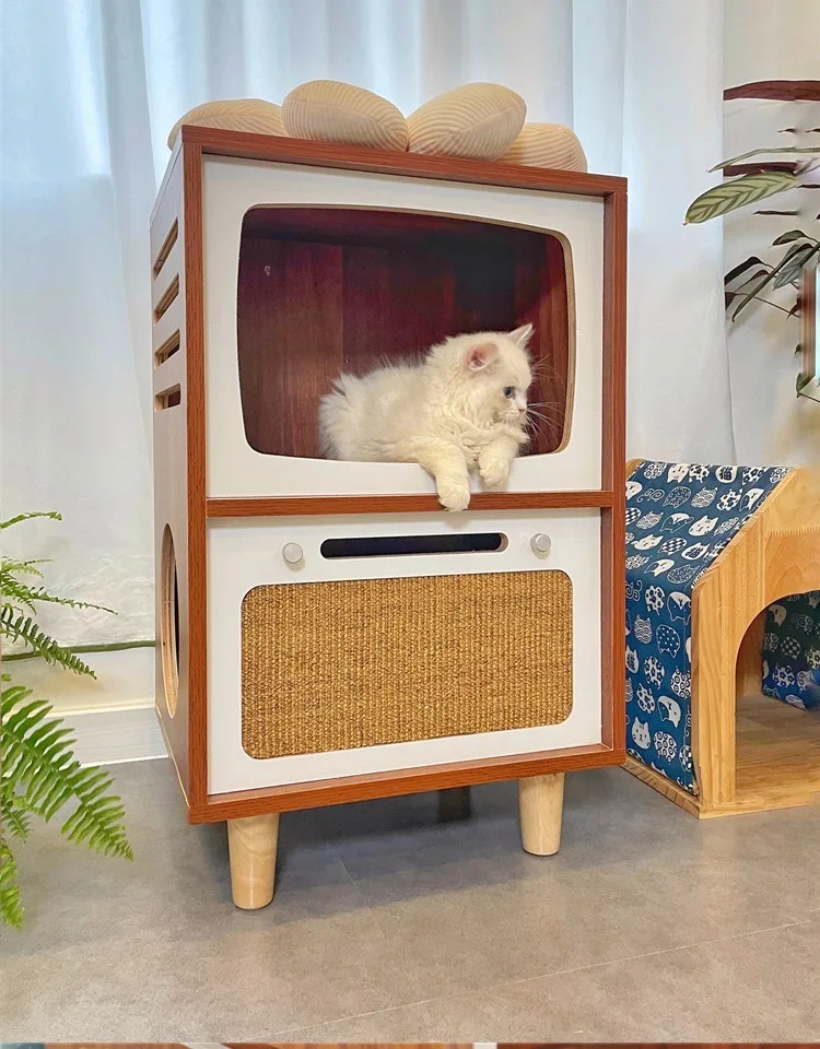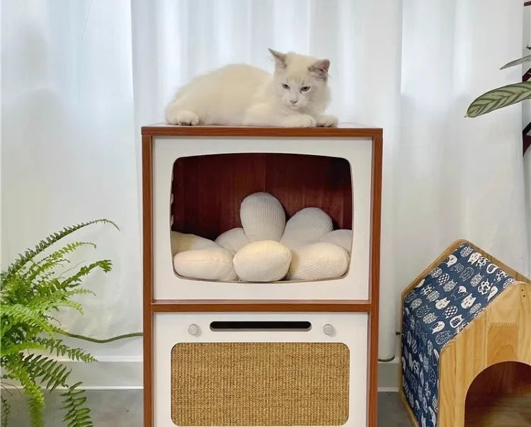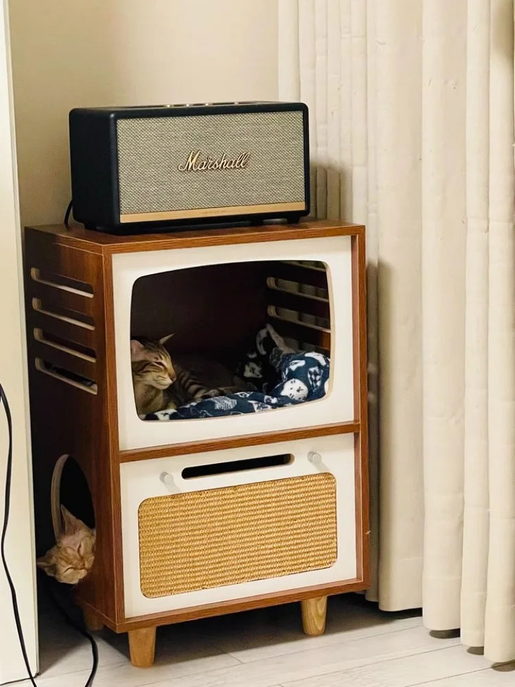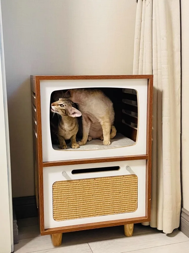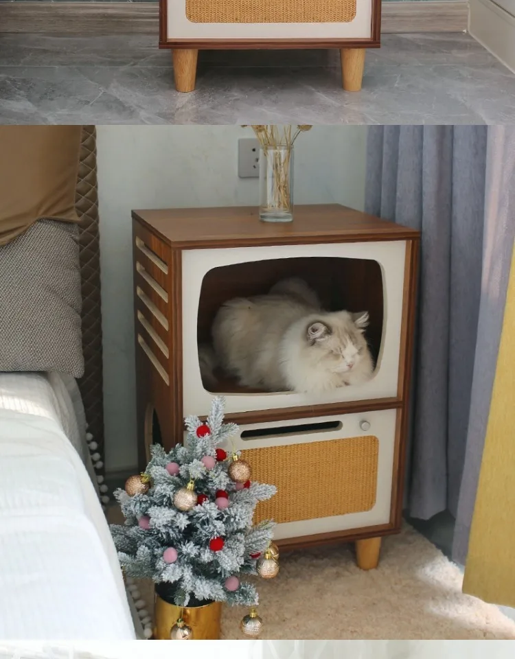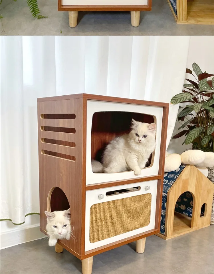 Camas de madera maciza para gatos, muebles creativos para gatos, casa de cama para mascotas, gatos, casas para el hogar, suministros para mascotas, camas ocultas, casas para habitaciones de túnel