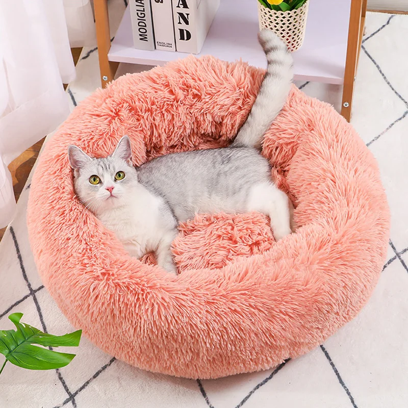 Camas redondas para gatos, cama para mascotas, cama súper suave para gatos, casa larga de felpa para perros pequeños, cojín, perrera, sofá nido para gatos para dormir cálido de invierno
