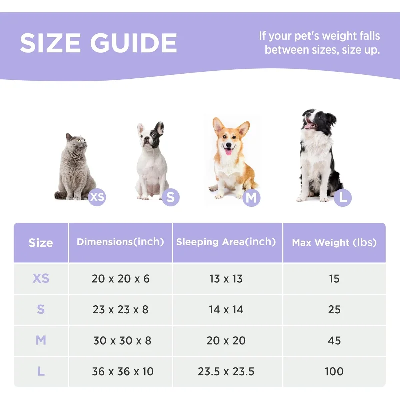 Se adapta a todos los amigos peludos: ideal para felinos o perros pequeños, esta cama de felpa para gatos mide una cómoda cama de 20" x 20", perfecta para perros o gatos de hasta 15 libras.¿A diferencia de qué talla elegir?Adquiere una talla más para disfrutar de comodidad adicional.La parte inferior antideslizante garantiza que la cama permanezca en su sitio y el sherpa peludo aumenta la comodidad.Es más que una simple cama, es la zona de recuperación personal de tu mascota.