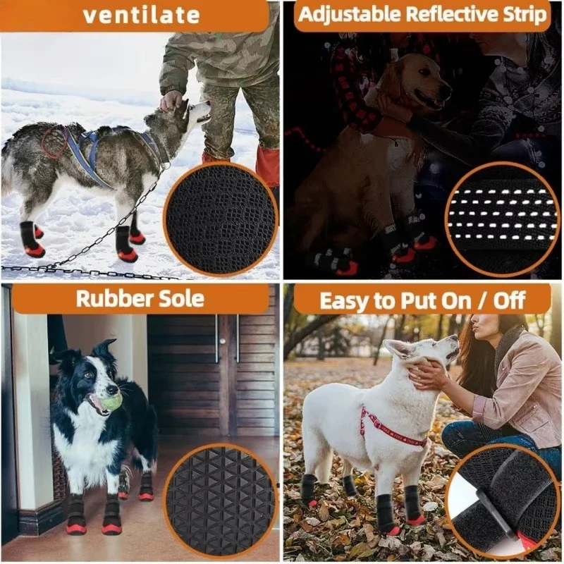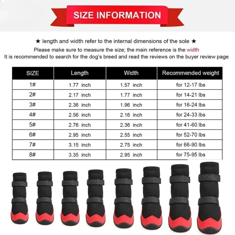 Precio para un perro de 50 kg. Las botas no le quedan. Intenté asegurarlas con cinta autoadhesiva, funciona, pero mi perro gira las patas, así que no es definitivo.