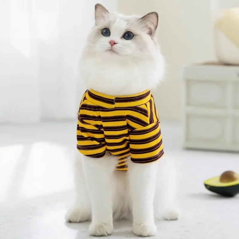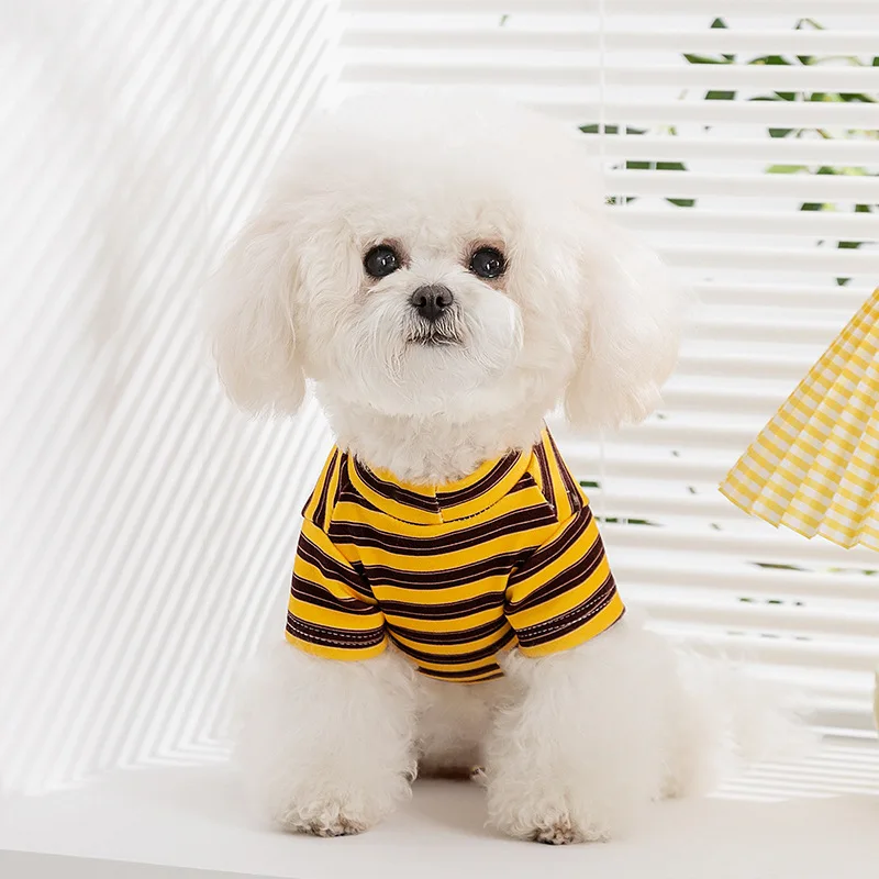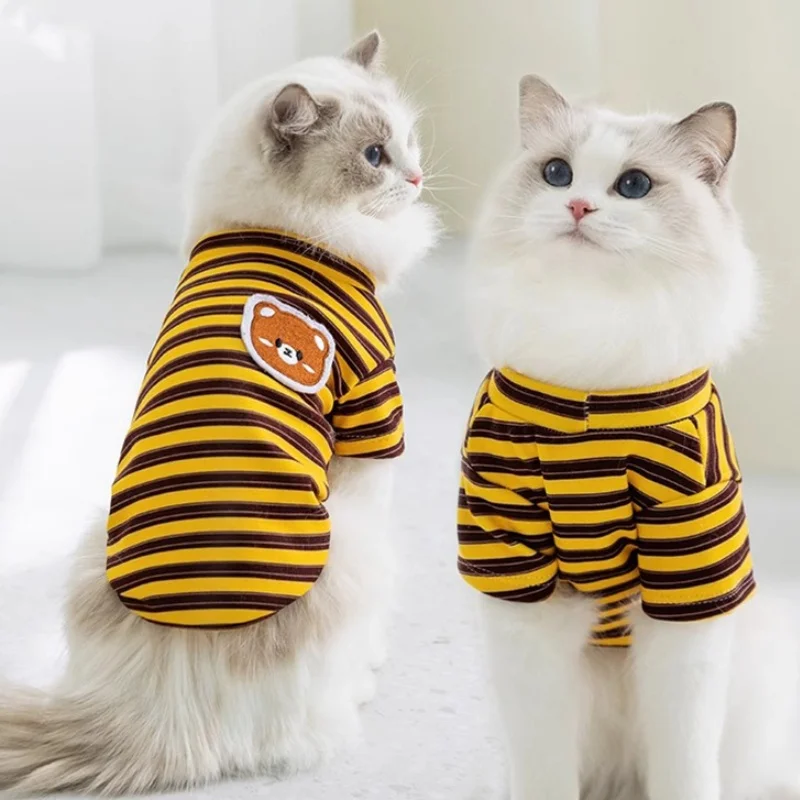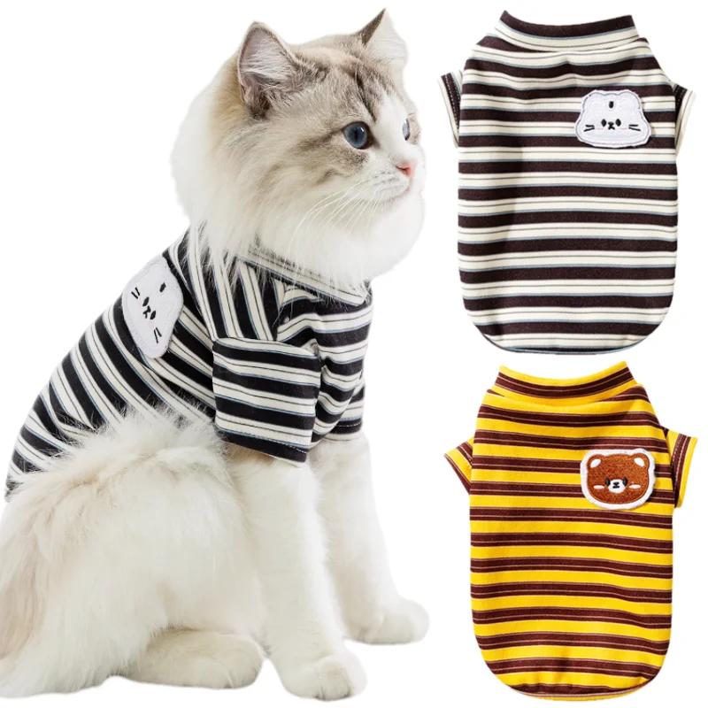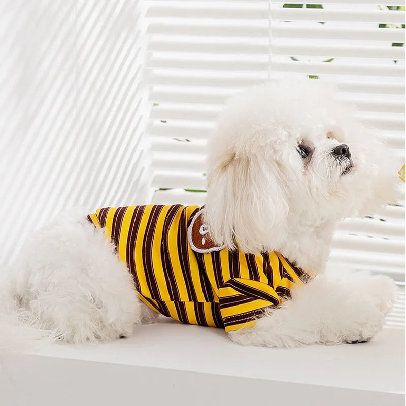 Camisa a rayas con diseño de oso para perro, ropa fina de verano para perro, sudadera transpirable para cachorro, chaleco para gato a la moda, camisa para mascotas, ropa para caniche