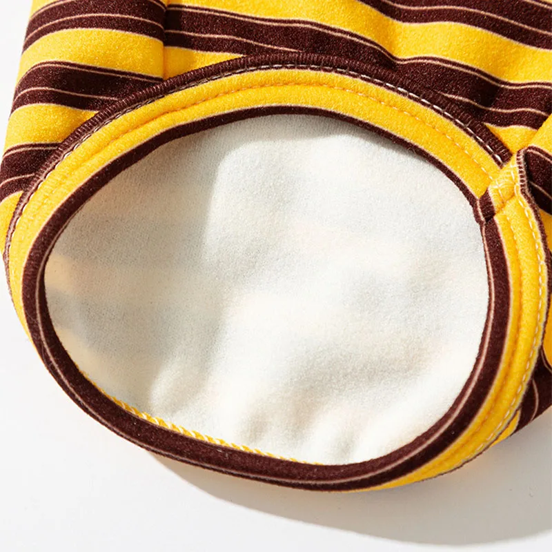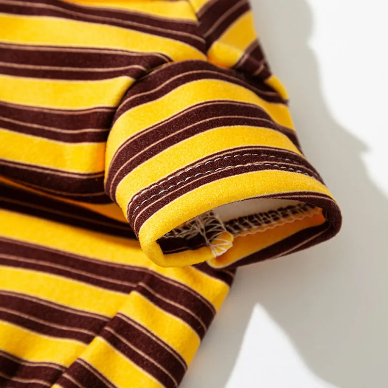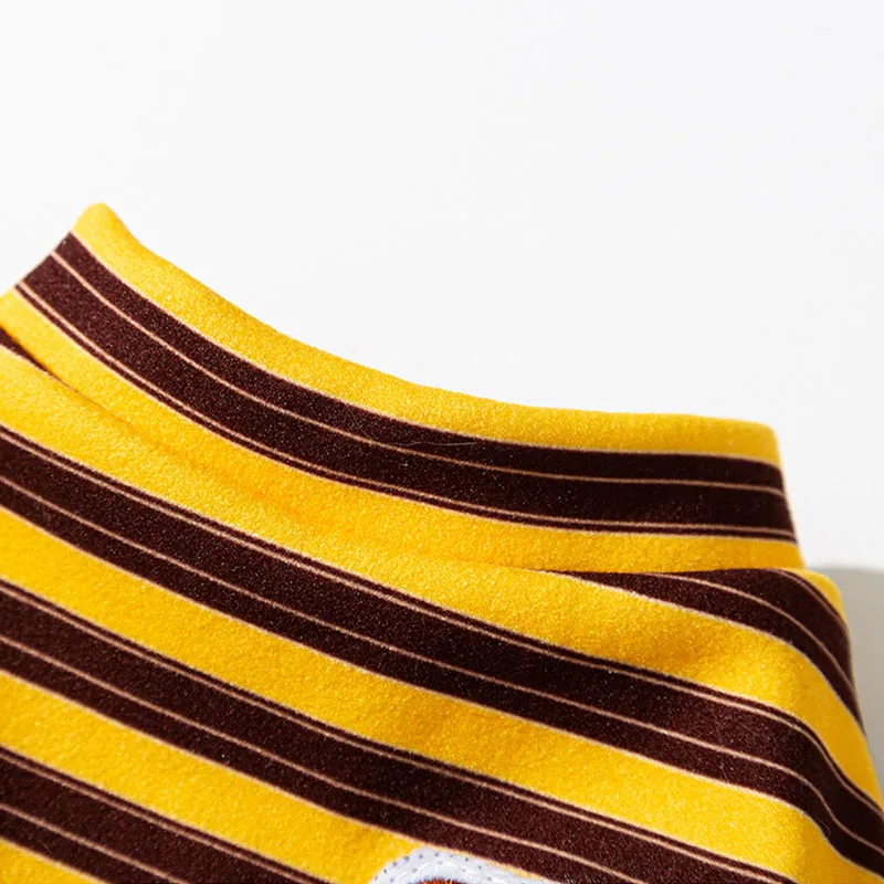 Característica:El diseño de rayas es a la vez clásico y moderno/La combinación de colores amarillo y marrón es animada y llamativa/A juego en blanco y negro, simple y atmosférico/La pegatina de osito de peluche en la parte superior es el toque final/Lleno de ternura y diversión