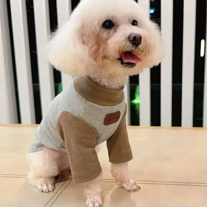 Camisa con Base contrastante para mascotas, ropa para mascotas con bonito oso de peluche para perros pequeños, ropa para perros pequeños, ropa para cachorros, otoño e invierno