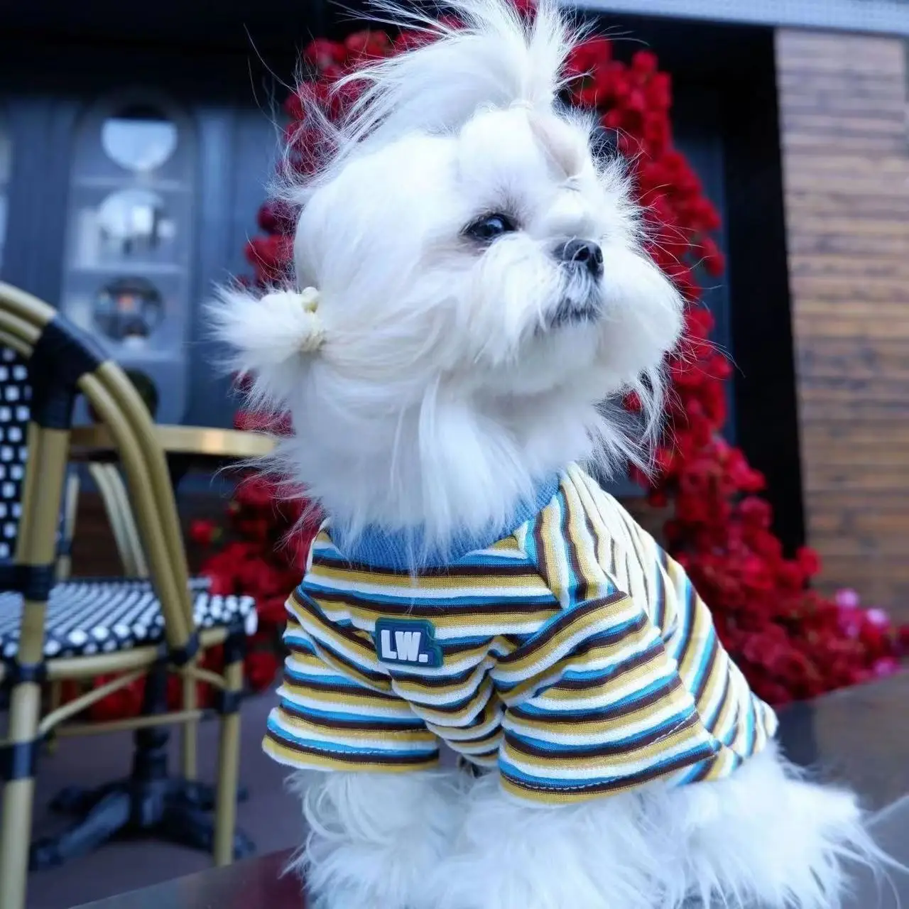Camisa con Base a rayas para mascotas, ropa para perros, oso Schnauzer, gato de peluche, ropa para cachorros pequeños, primavera y otoño