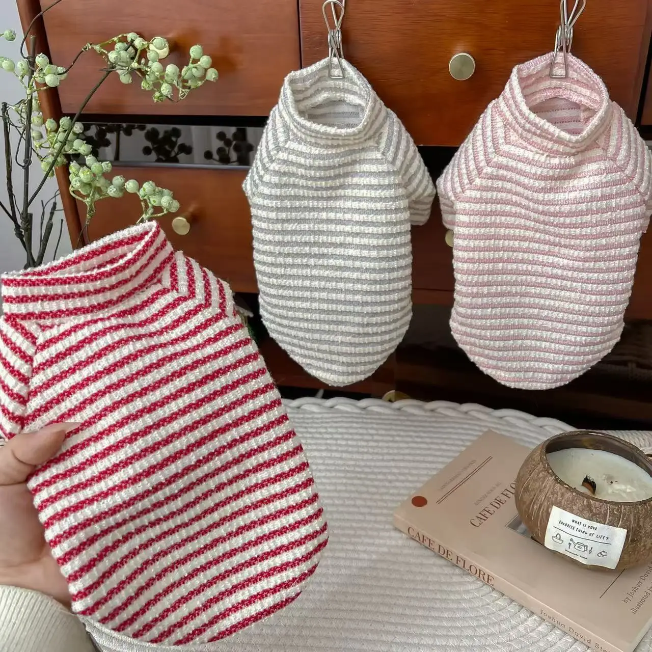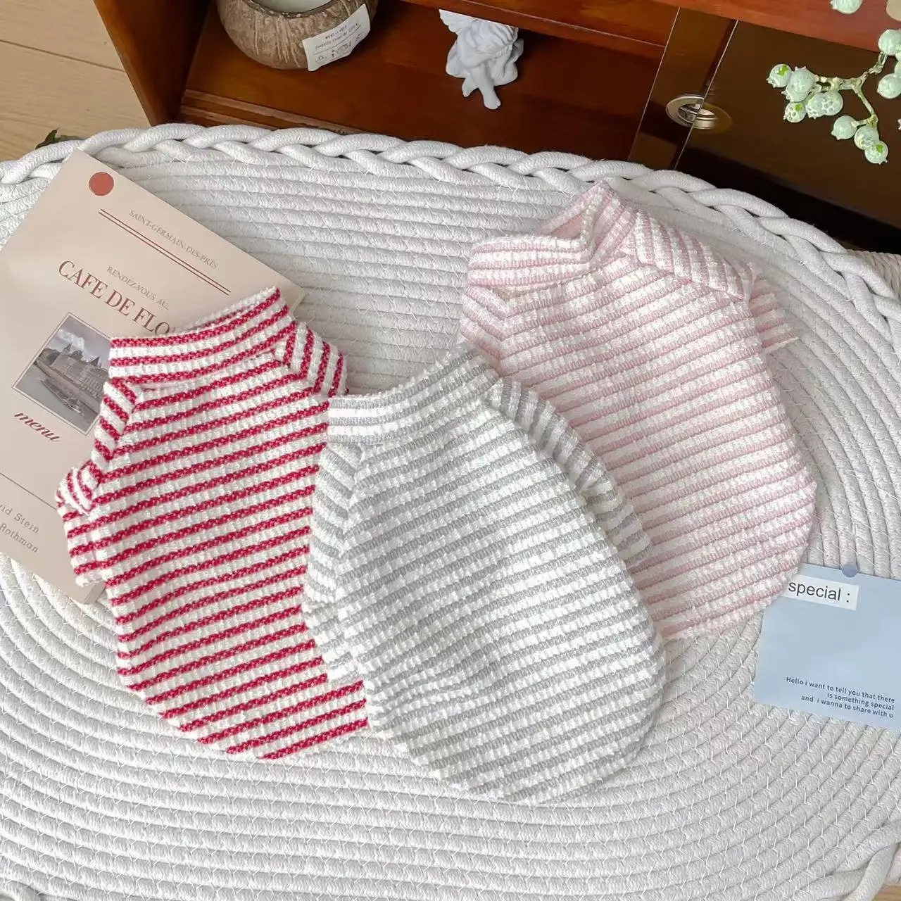 Camisa Base a rayas de primavera para mascotas, ropa para gatos, camiseta a rayas de manga larga, ropa para perros pequeños