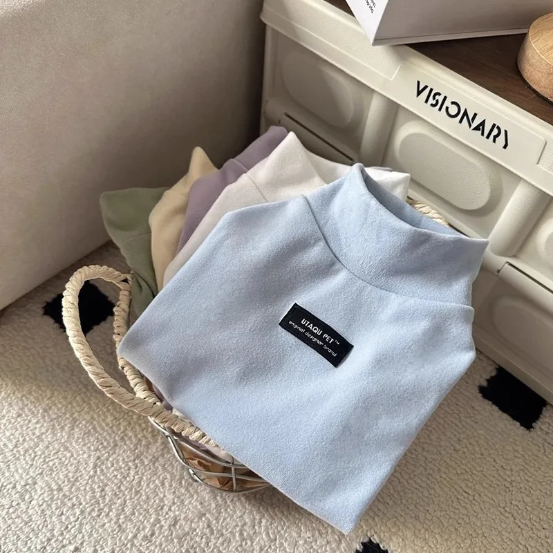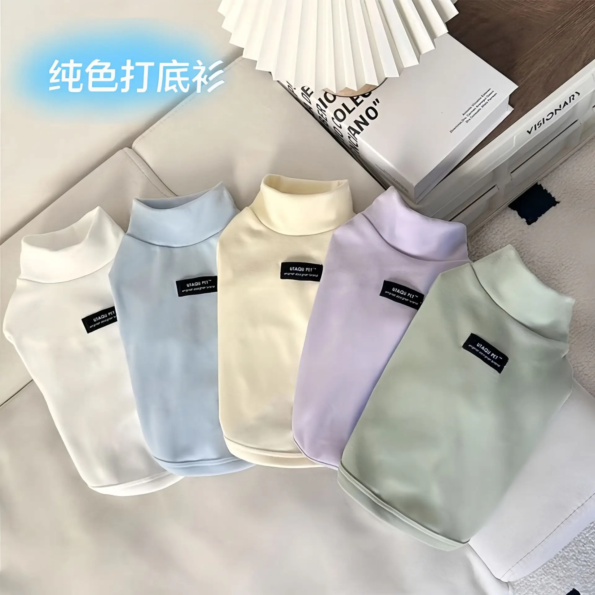 Camisa básica de Color sólido para mascotas, camiseta de cuello alto para perros, Sudadera con capucha de peluche, ropa Universal para perros pequeños y gatos Yorkshire, primavera