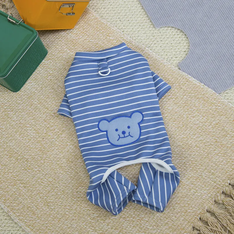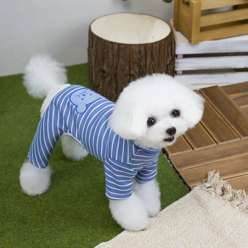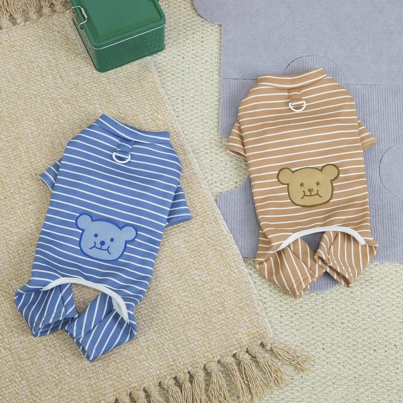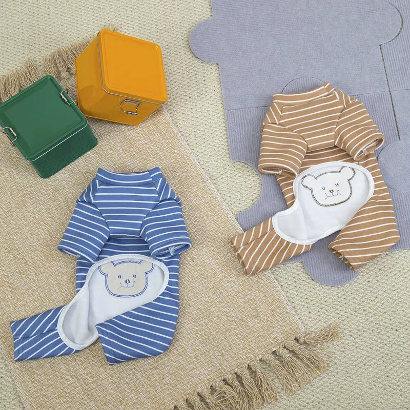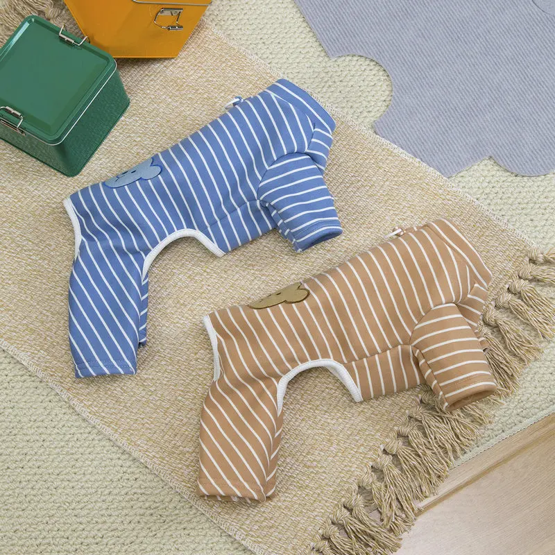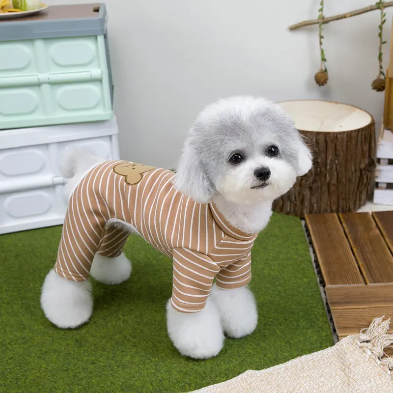 Camisa básica de cuatro patas a rayas para otoño e invierno, mono de peluche para mascotas, ropa para cachorros, pijamas para perros pequeños