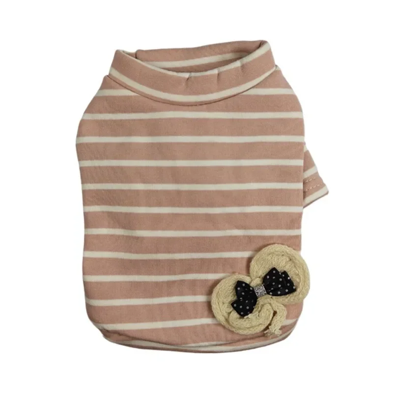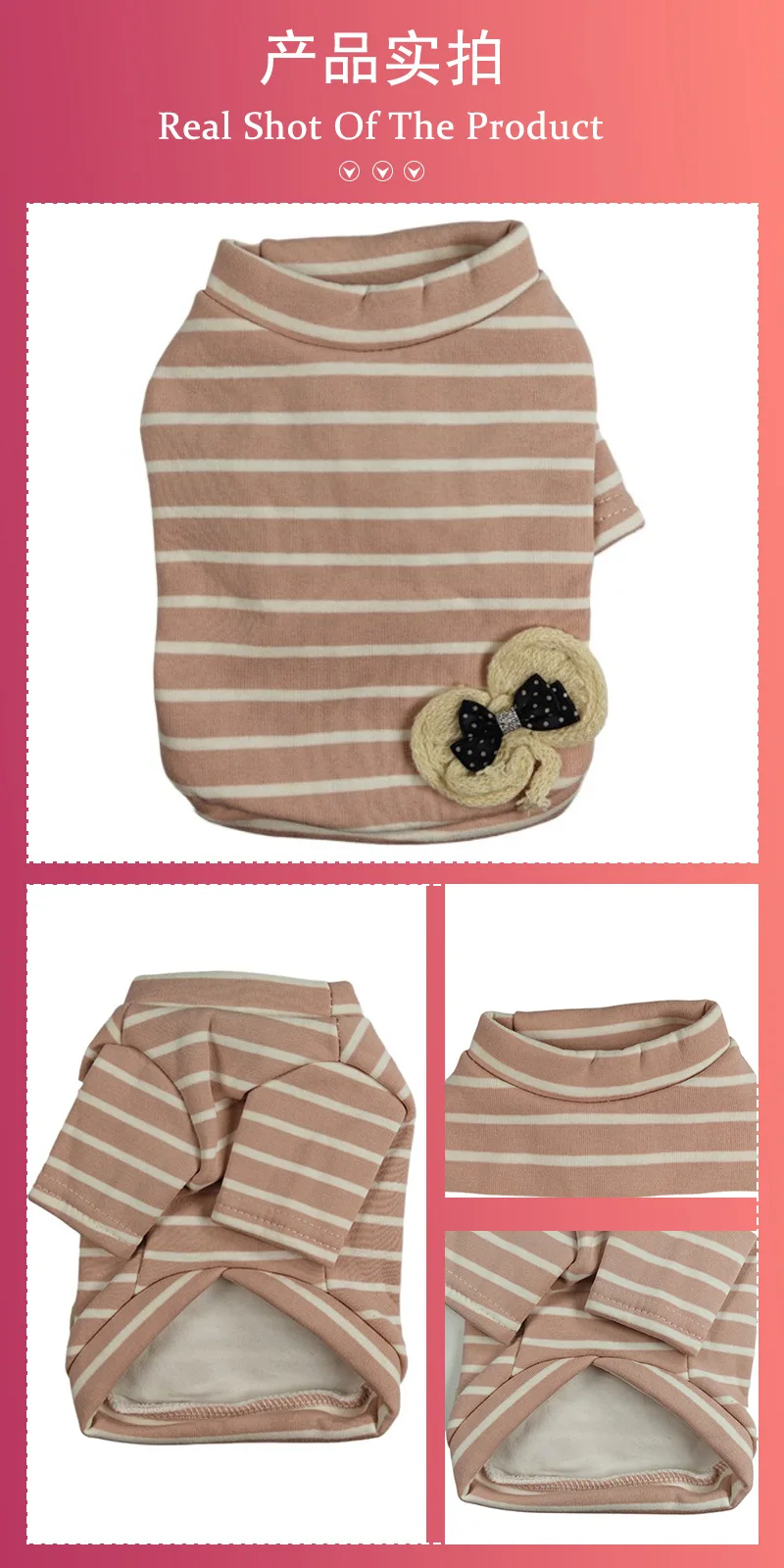 Camisa básica de cuello alto para otoño e invierno, Sudadera corta a rayas con lazo tejido, ropa para mascotas de dos patas, ropa para perros pequeños