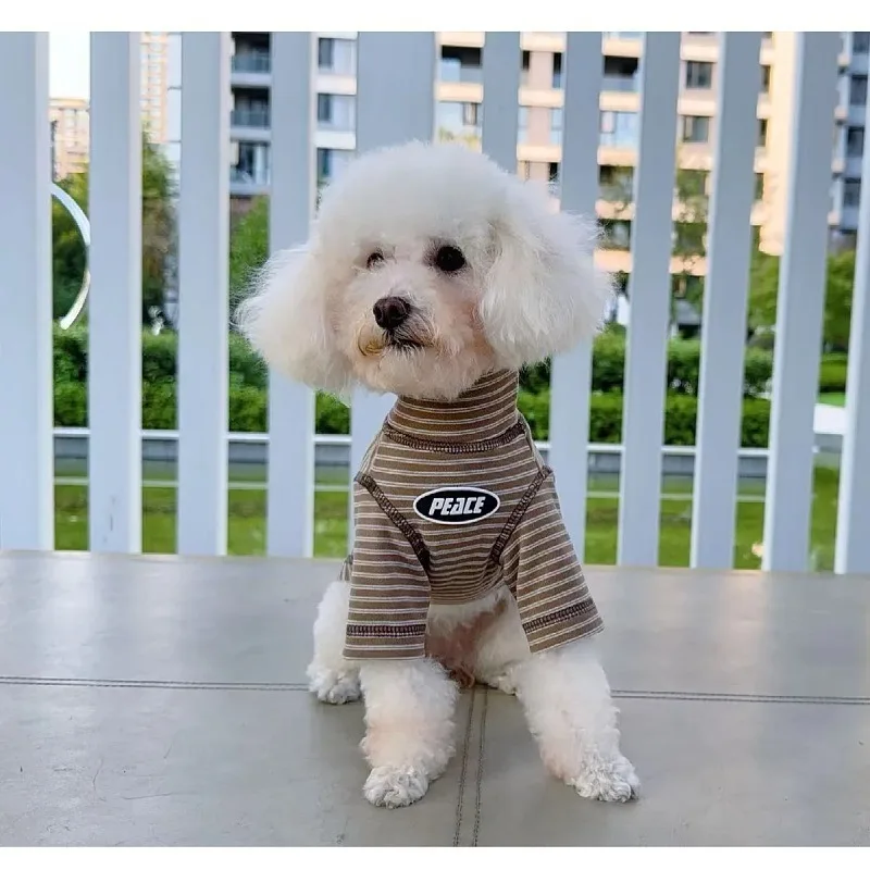 Camisa básica de cuello alto para otoño e invierno, sudadera a rayas para gatos, ropa de invierno para el hogar, ropa para perros pequeños - imagen 1