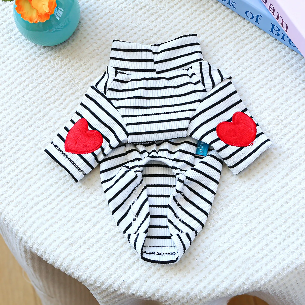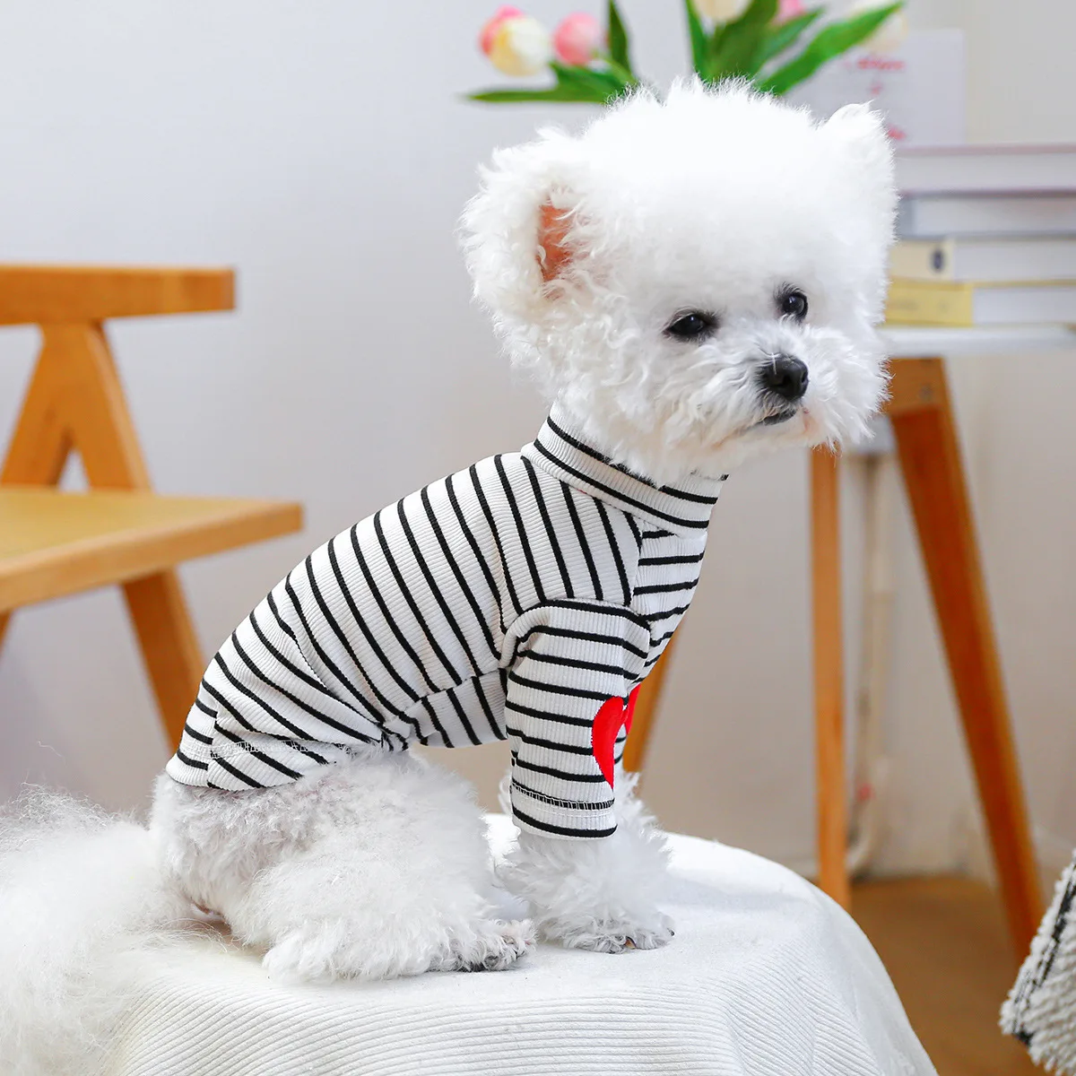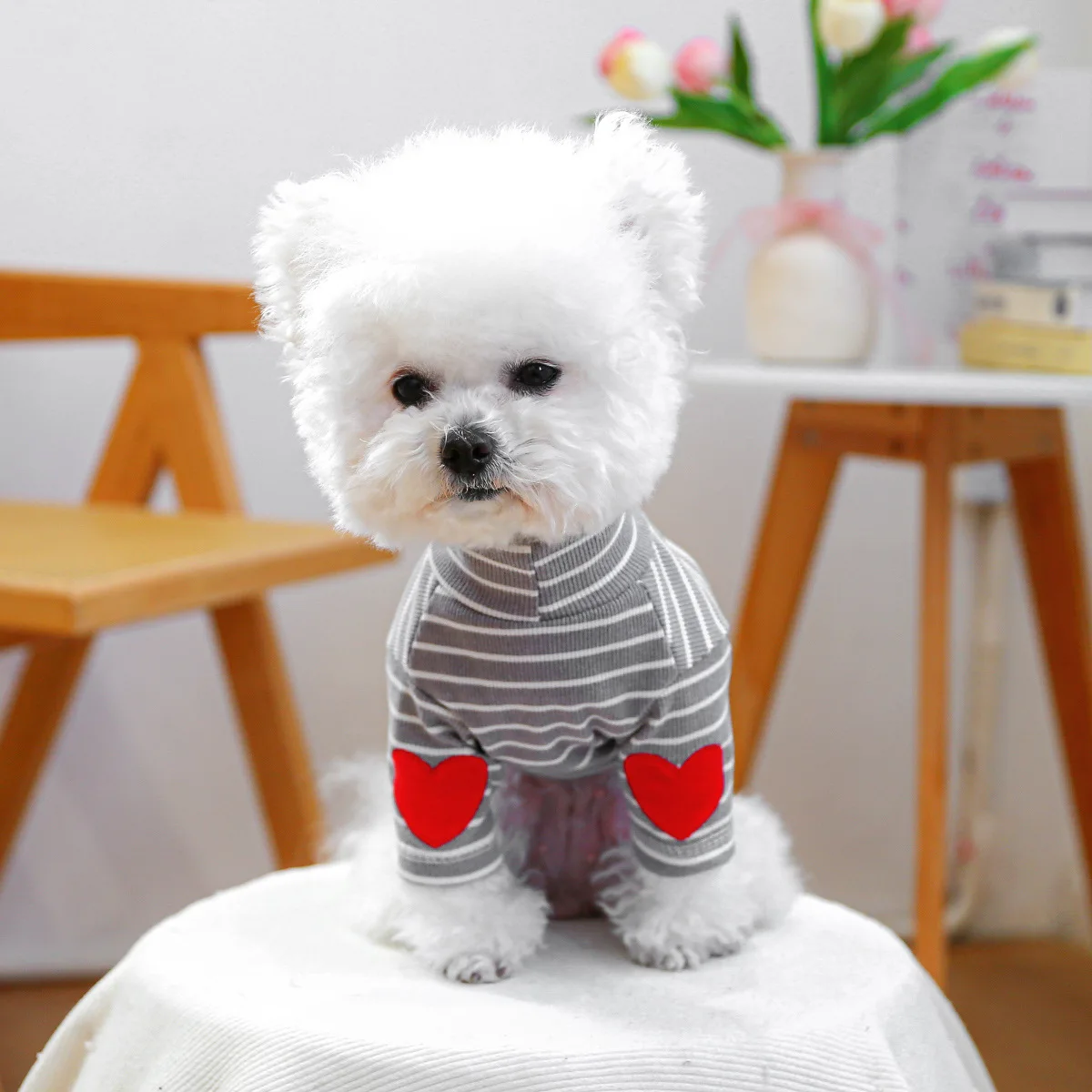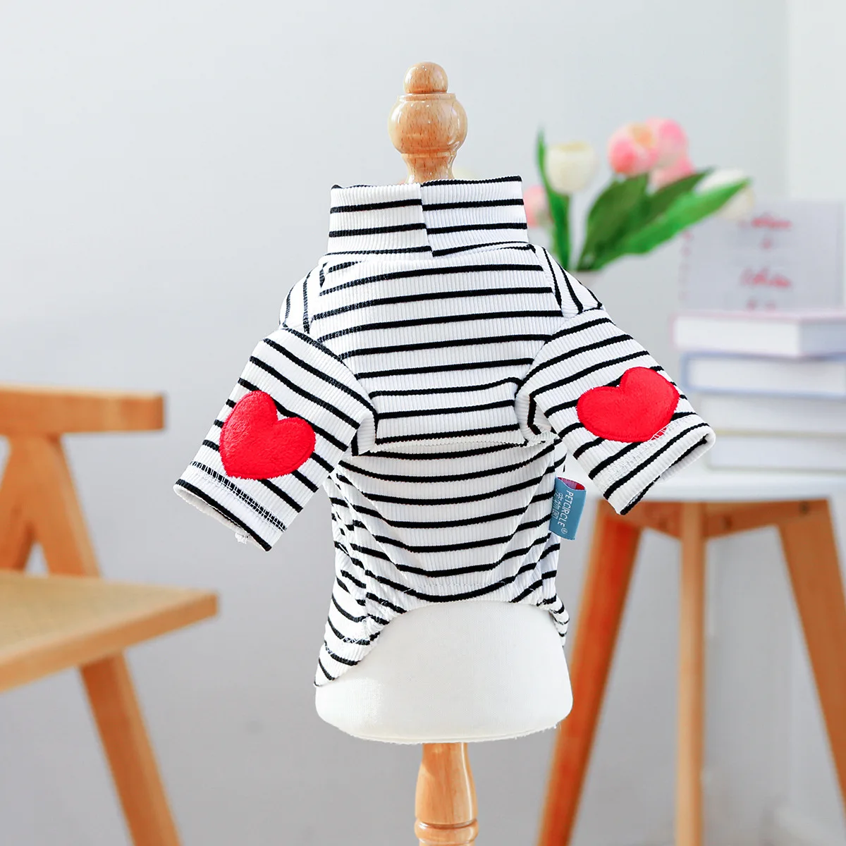 Camisa básica de cuello alto a rayas para mascotas, pijamas bonitos con mangas de corazón para perros, camiseta para perros, ropa para perros pequeños, ropa para cachorros