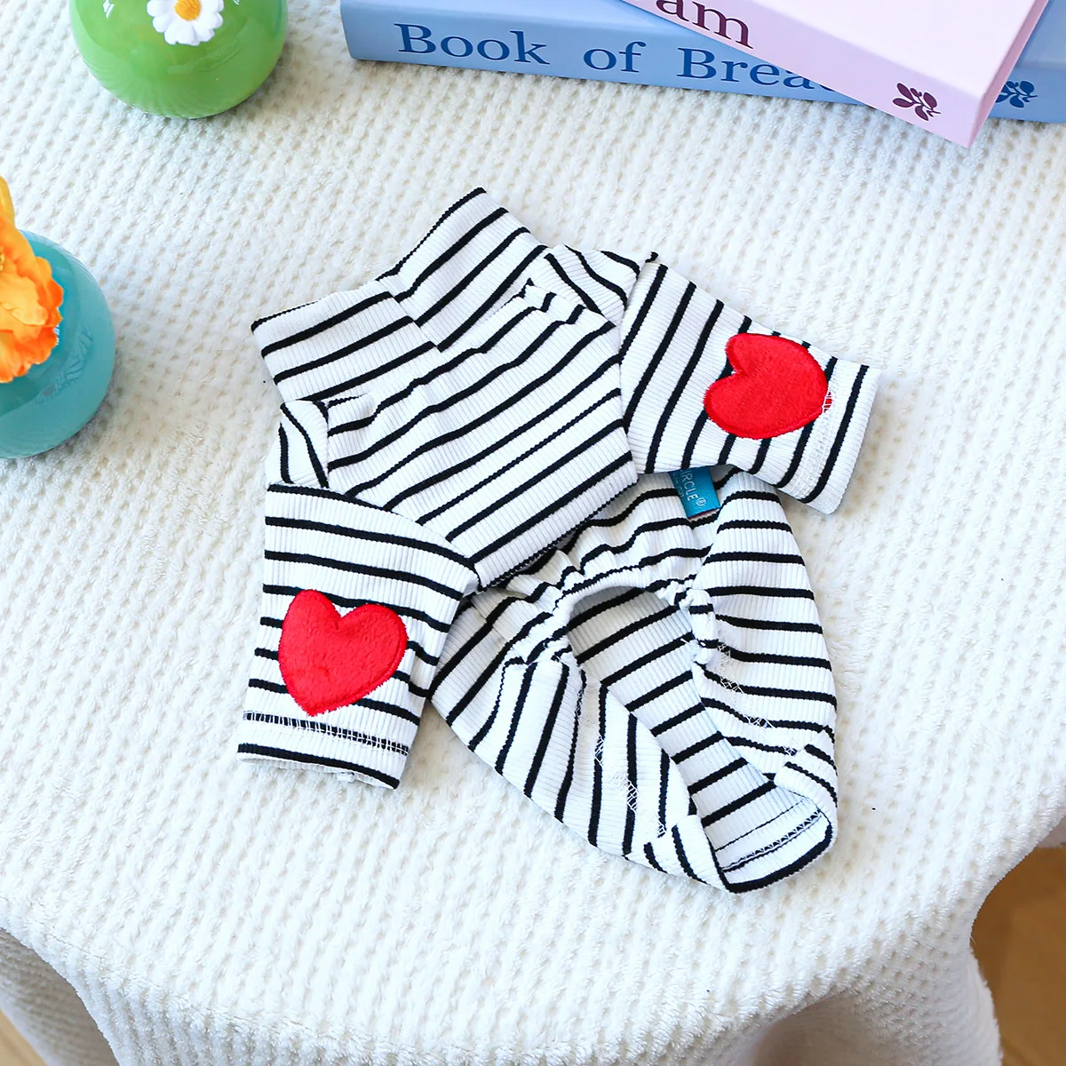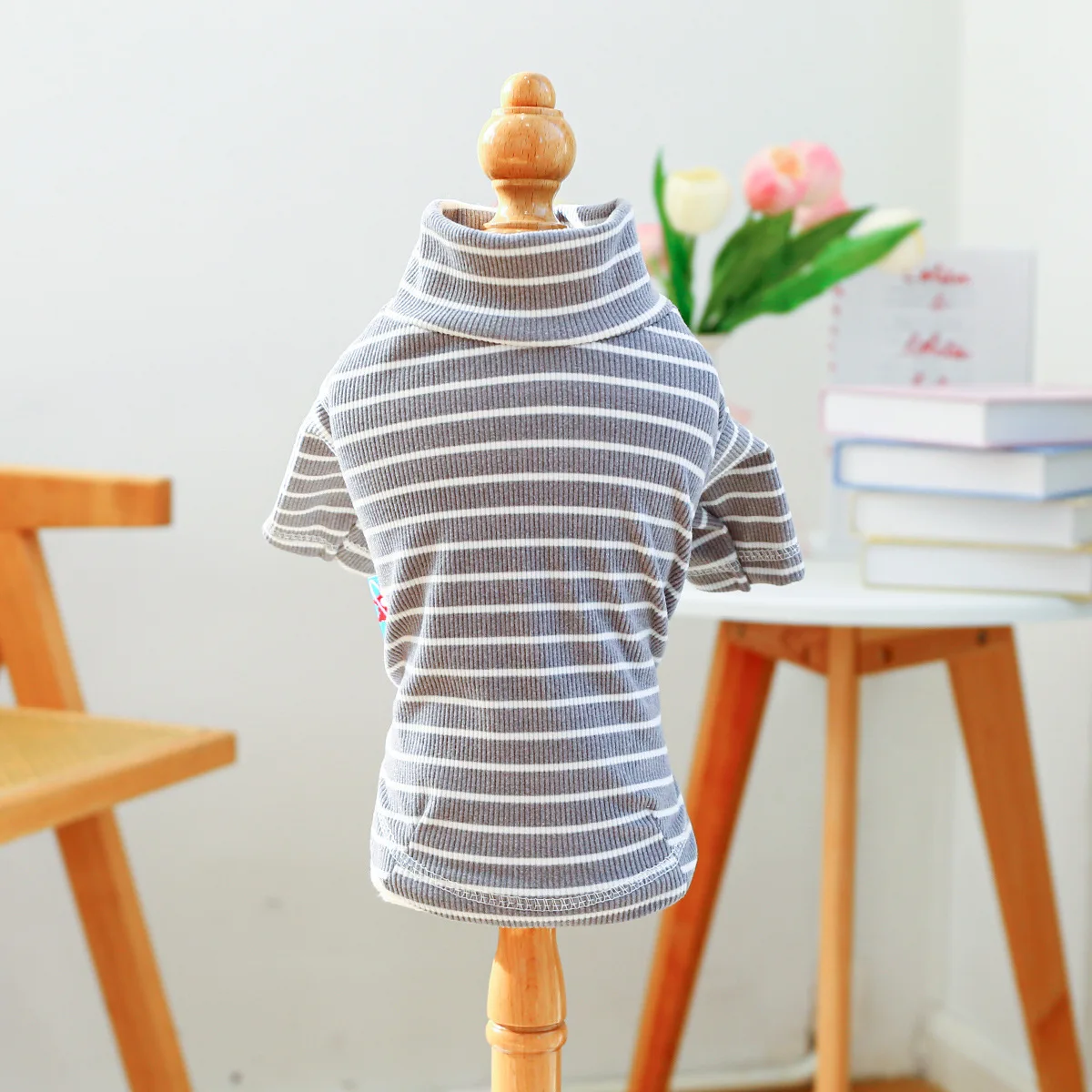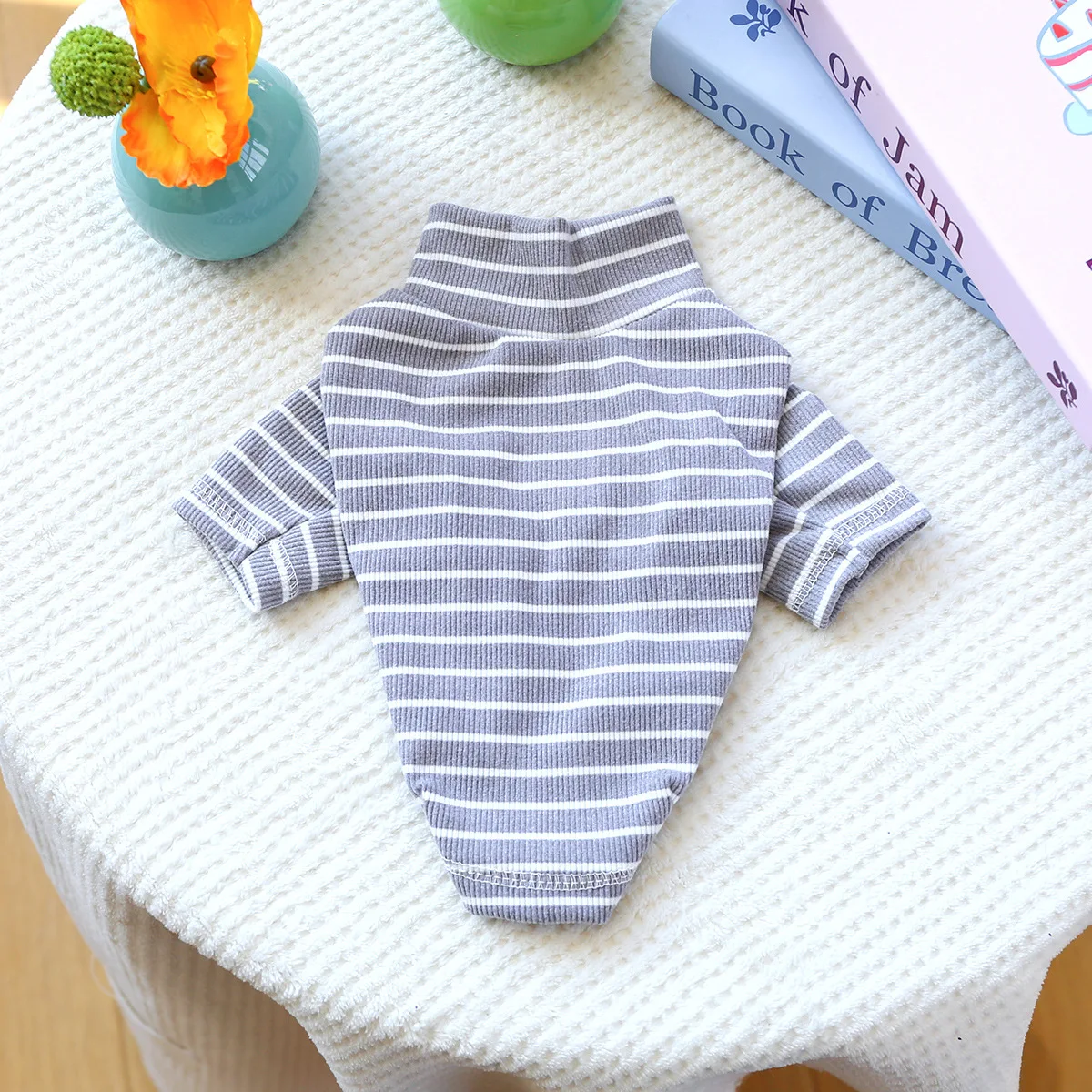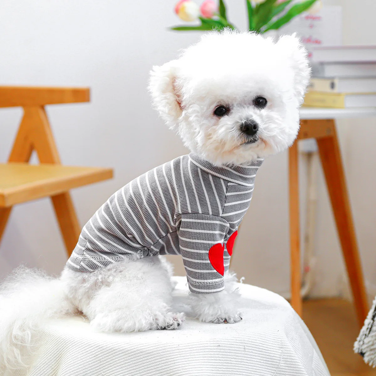 Camisa básica de cuello alto a rayas para mascotas, pijamas bonitos con mangas de corazón para perros, camiseta para perros, ropa para perros pequeños, ropa para cachorros