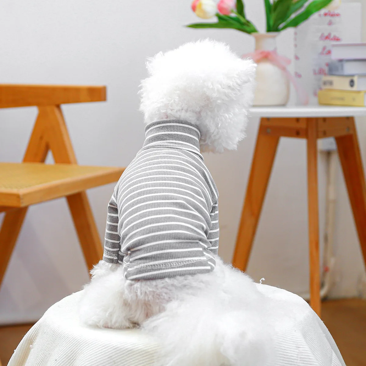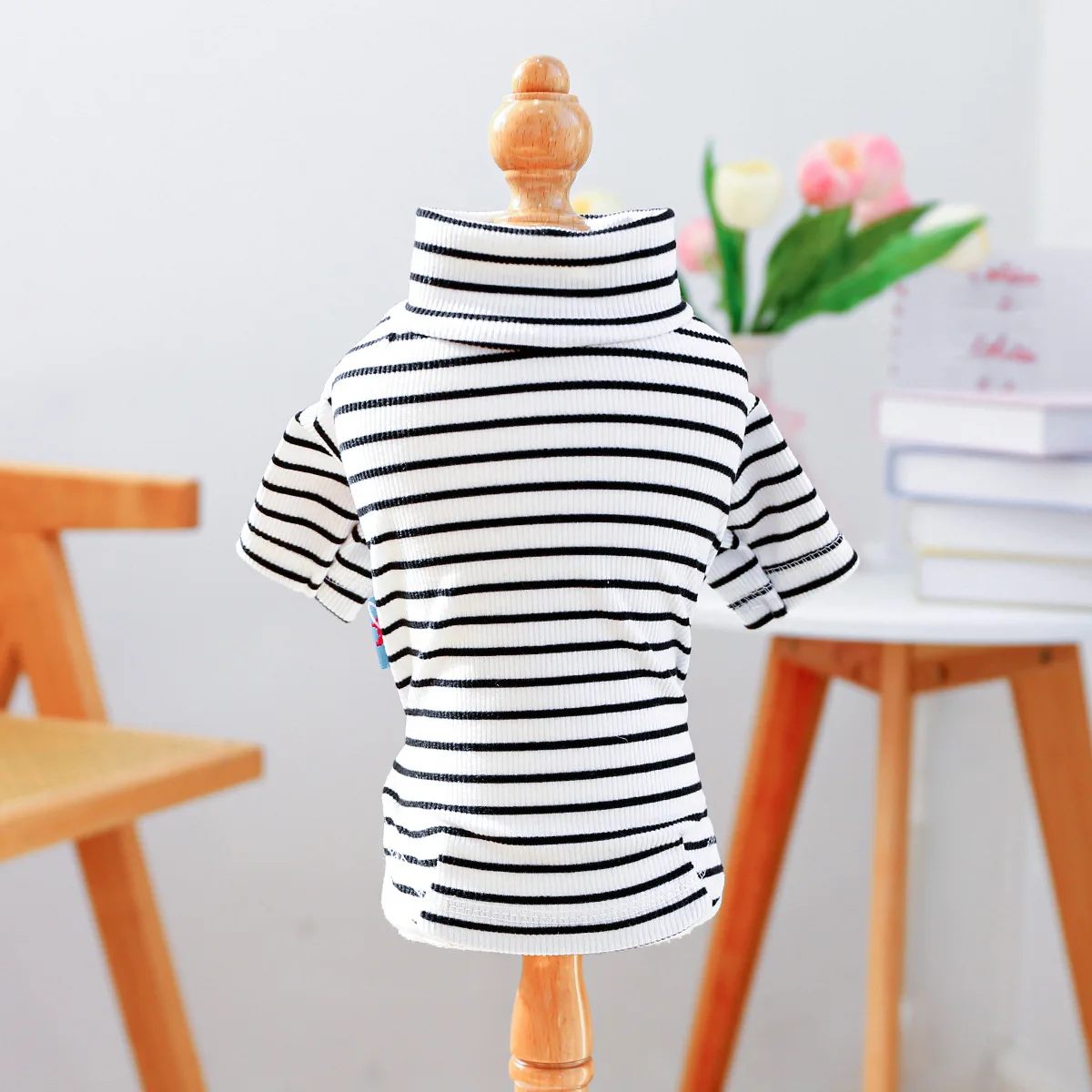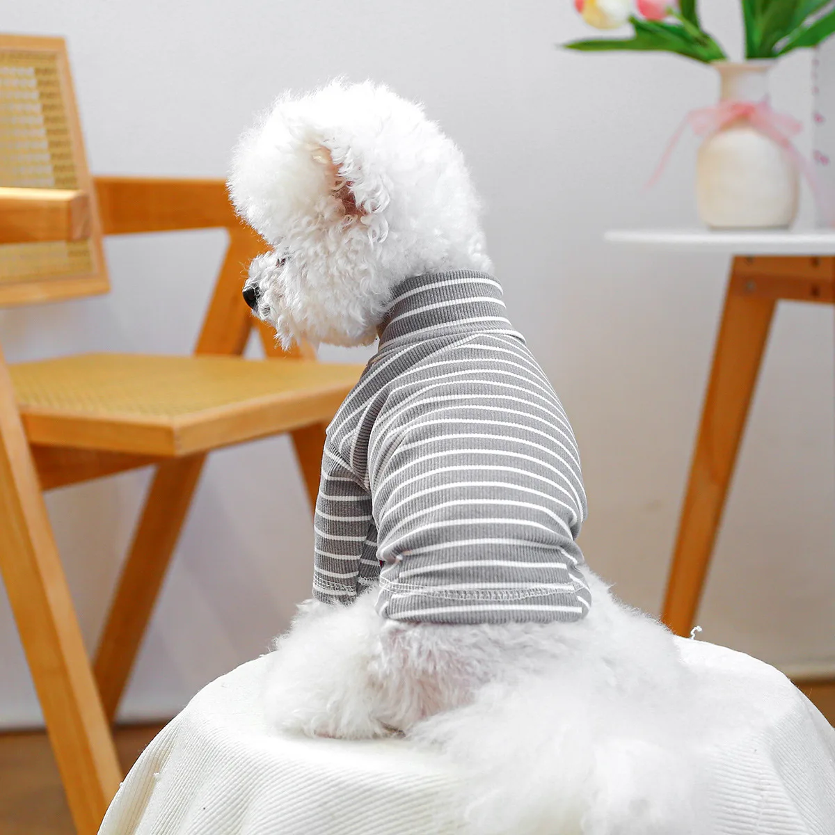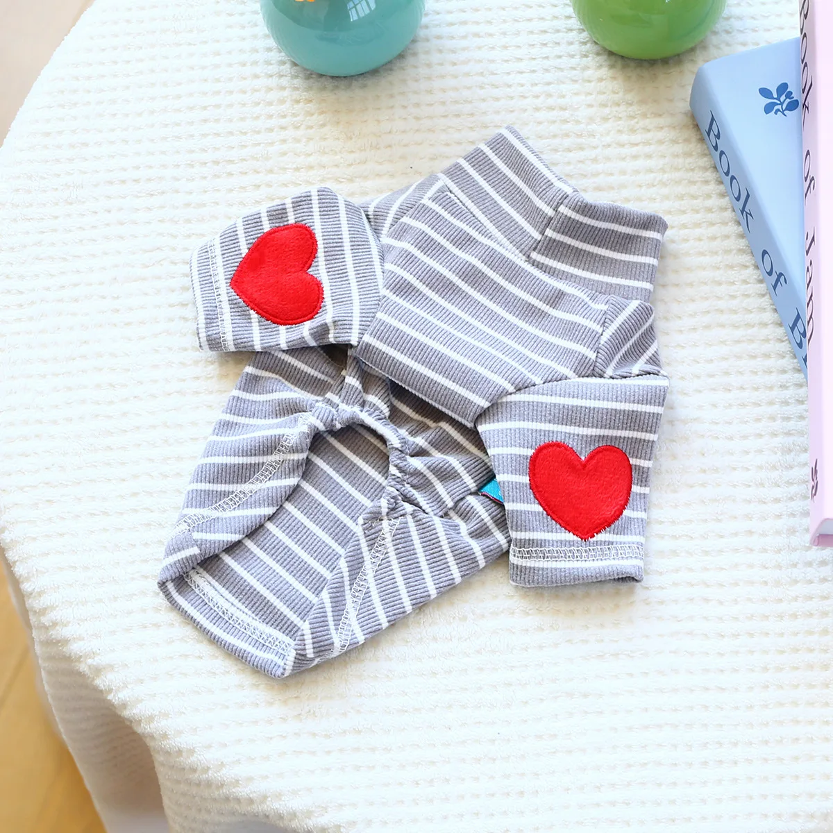 Camisa básica de cuello alto a rayas para mascotas, pijamas bonitos con mangas de corazón para perros, camiseta para perros, ropa para perros pequeños, ropa para cachorros