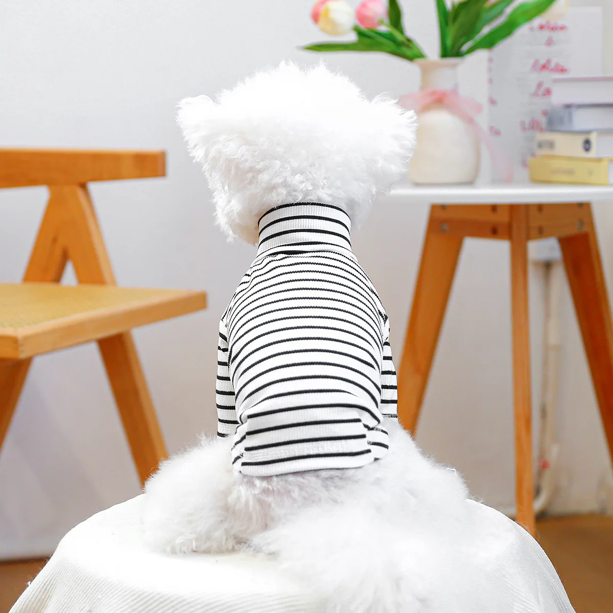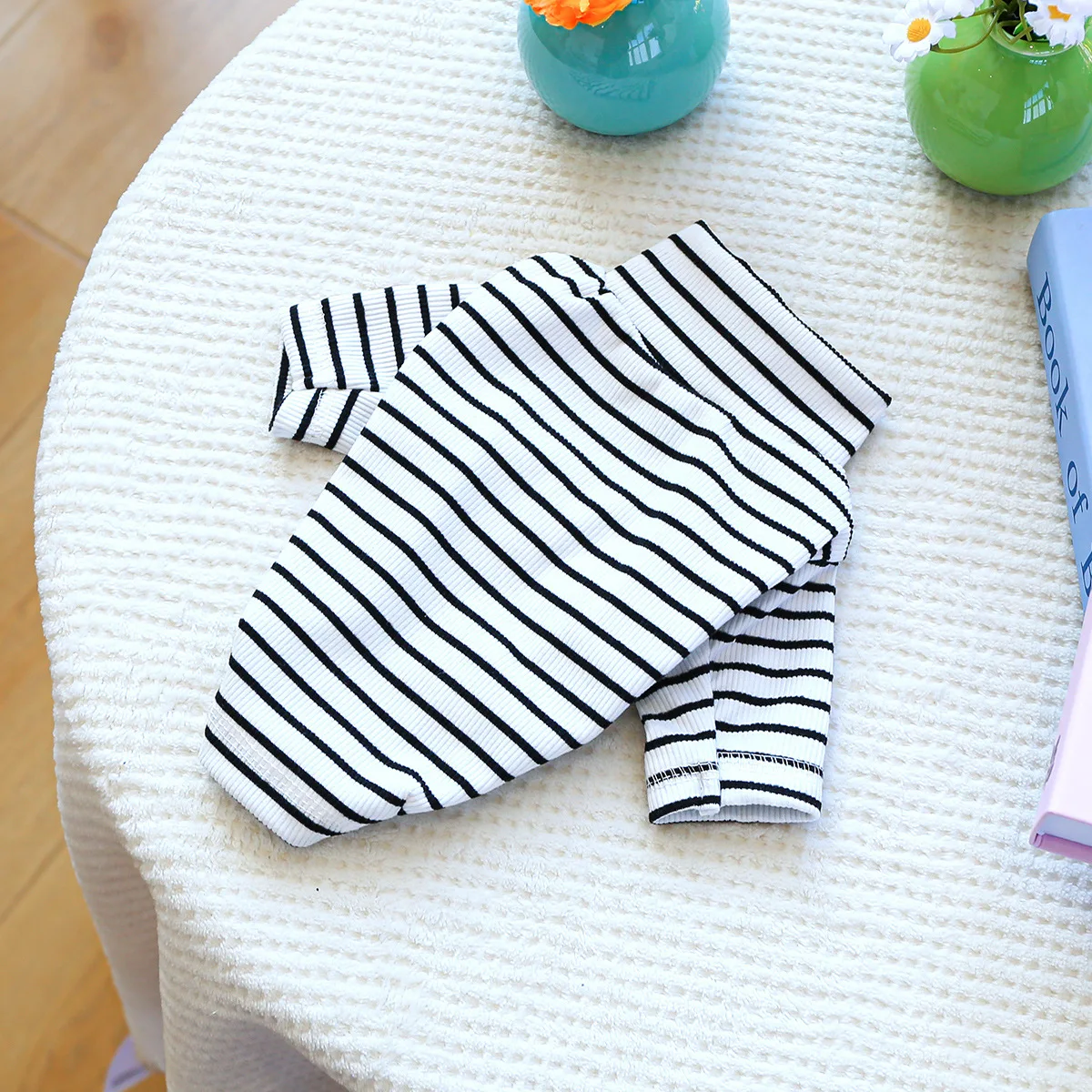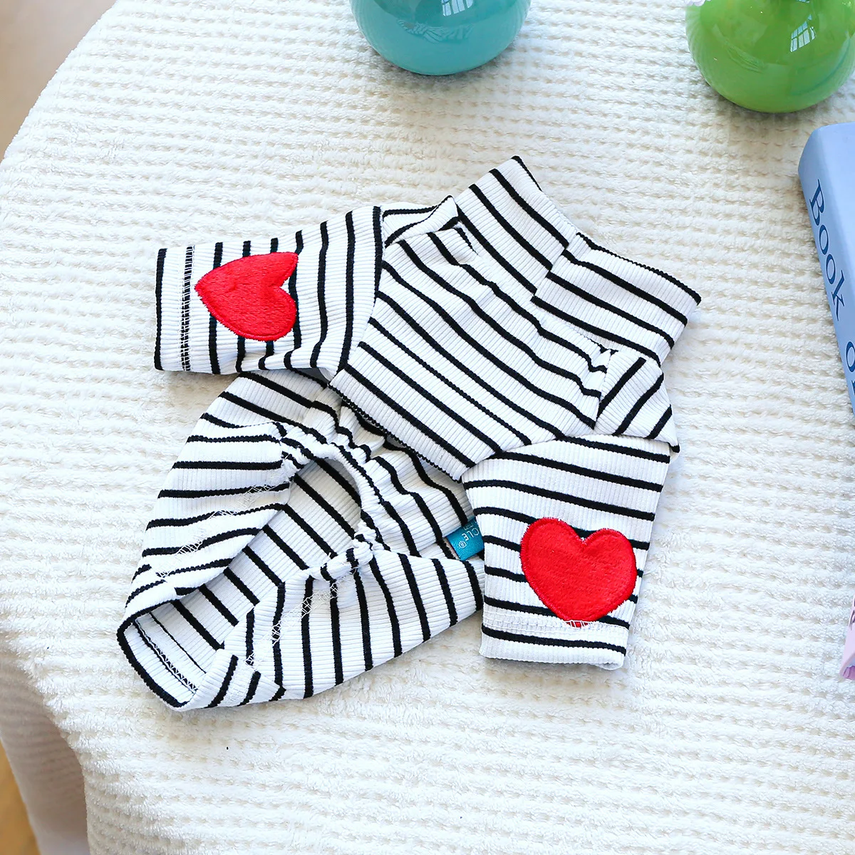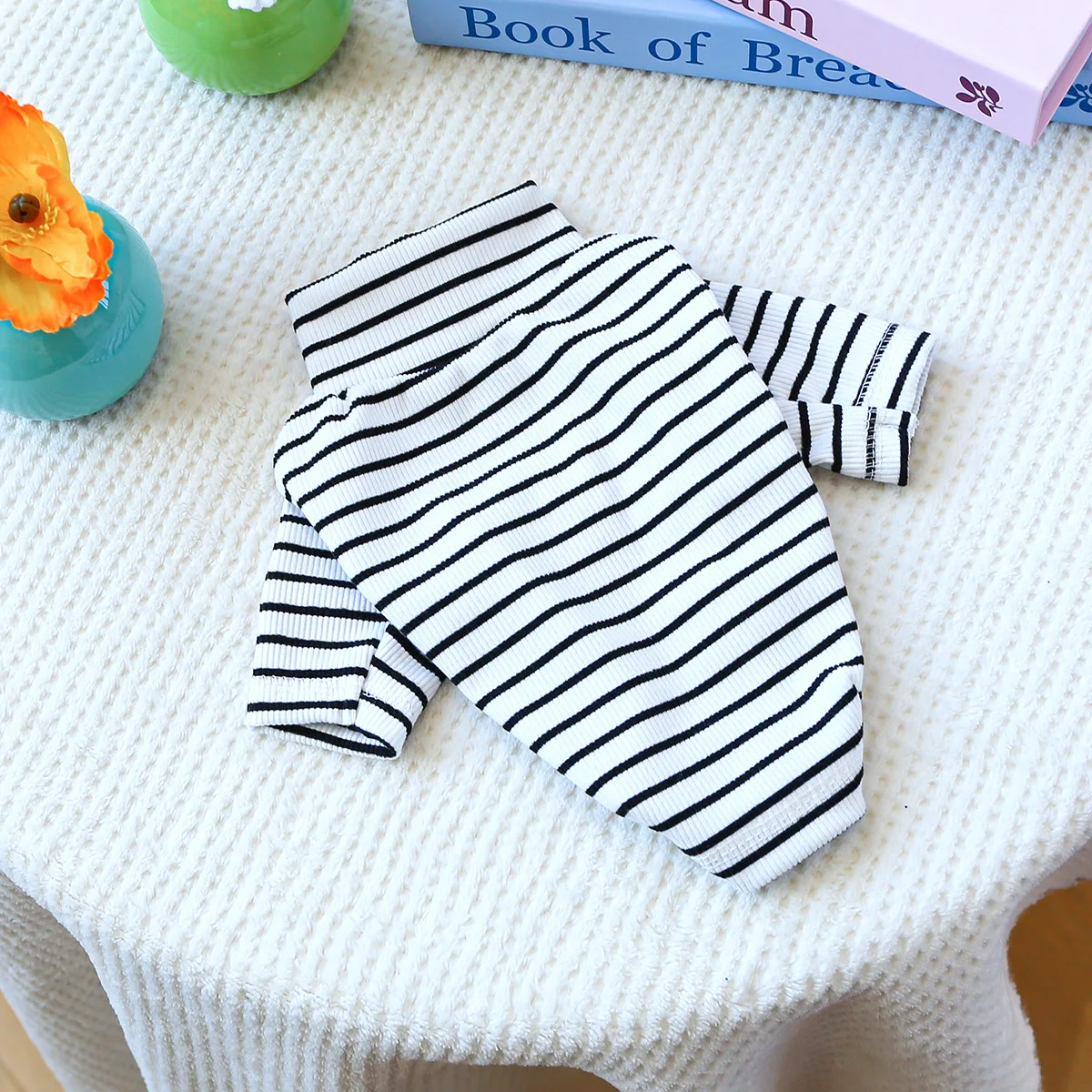 Camisa básica de cuello alto a rayas para mascotas, pijamas bonitos con mangas de corazón para perros, camiseta para perros, ropa para perros pequeños, ropa para cachorros