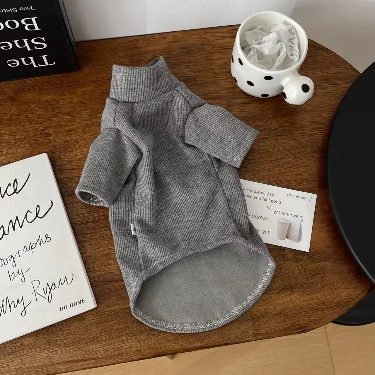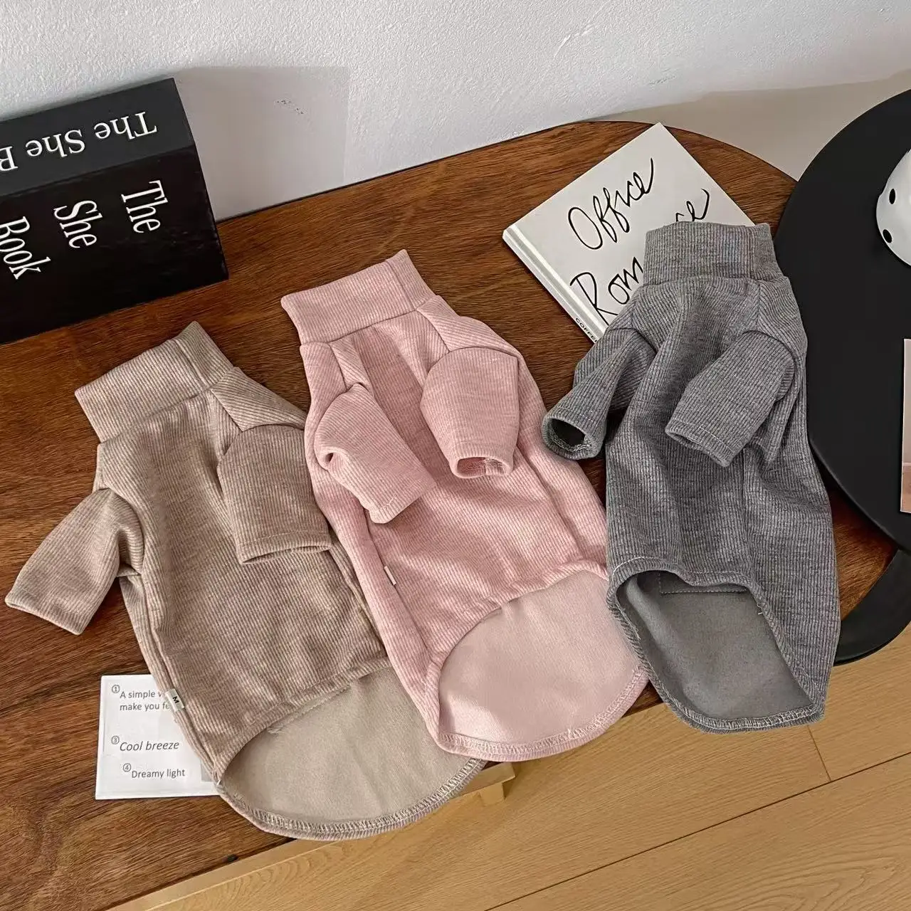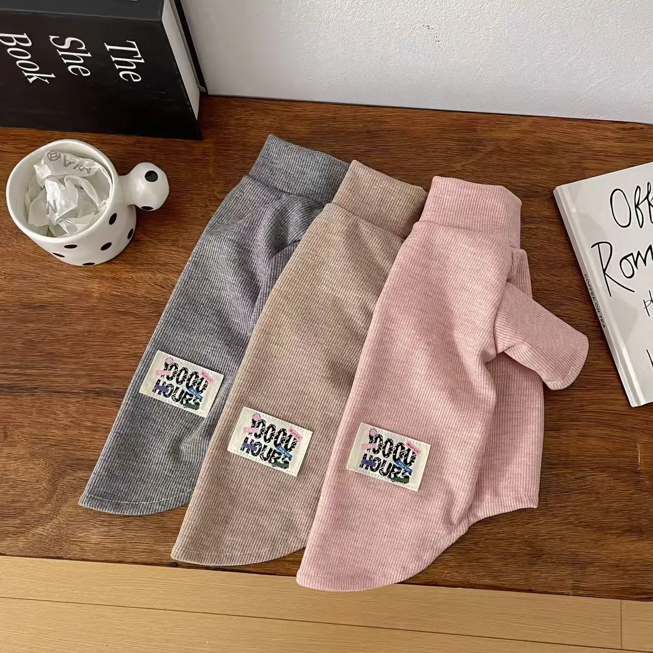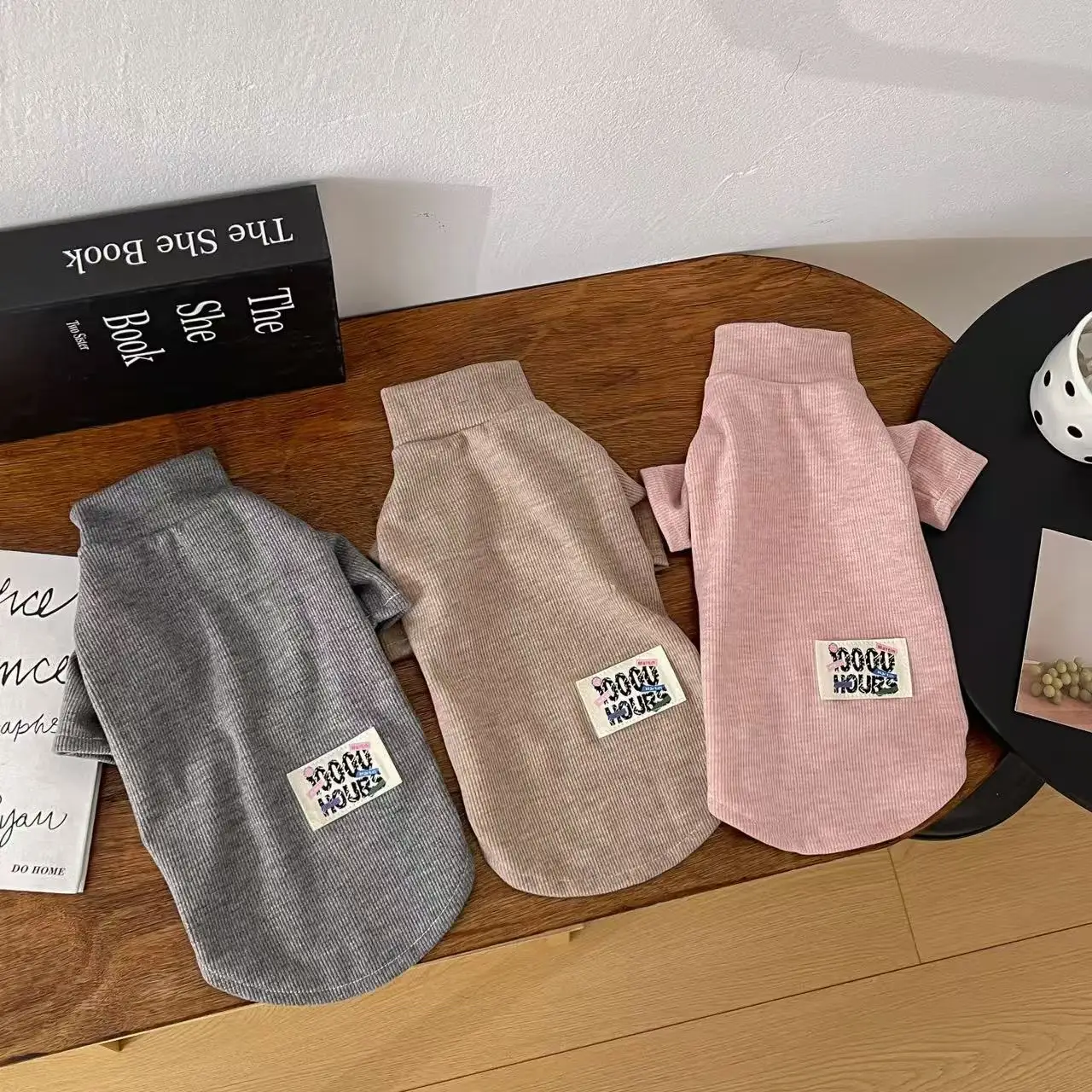 Camisa básica de cuello medio de Color sólido para mascotas, camiseta elástica de manga larga para mascotas, chaleco transpirable amigable con la piel, ropa para cachorros
