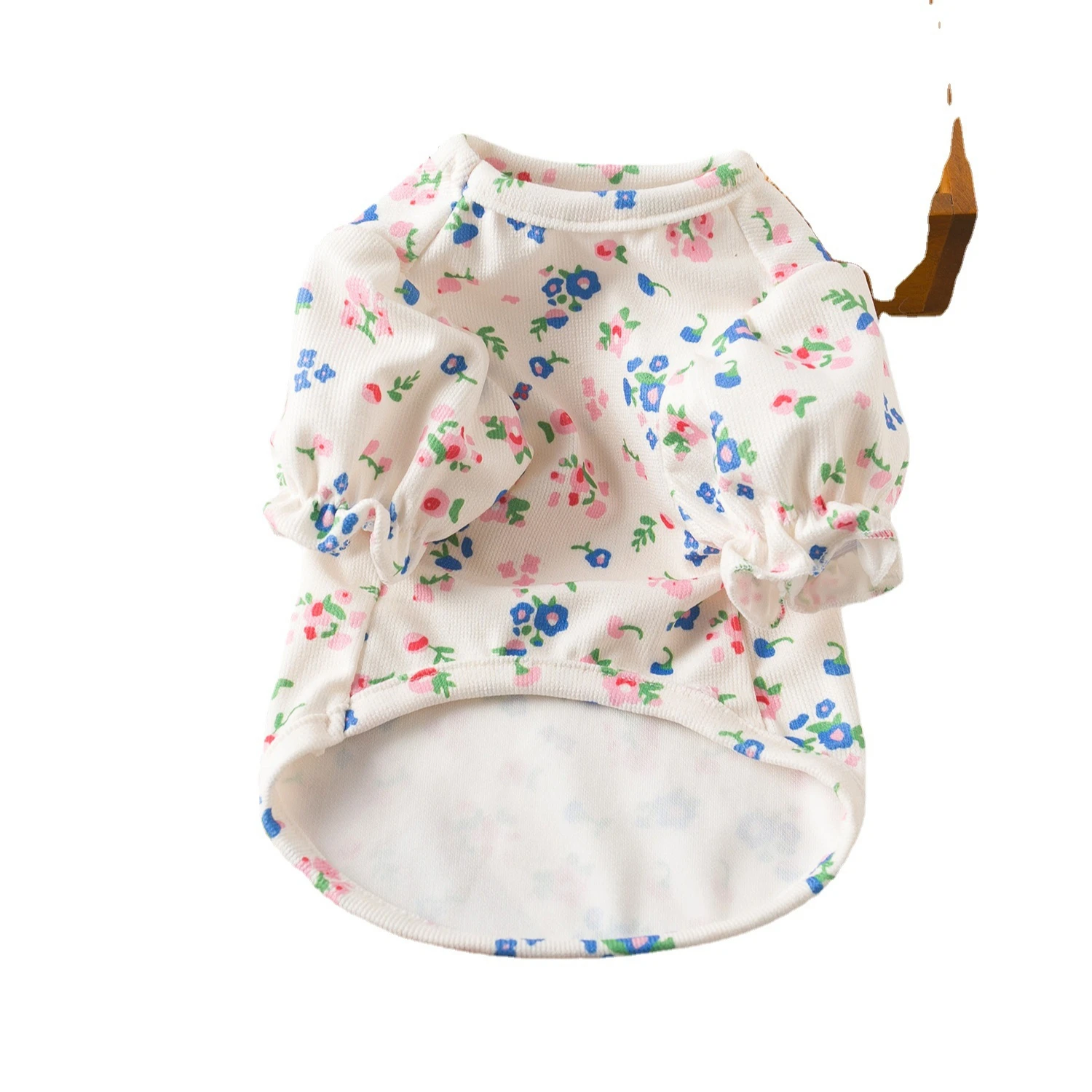 Camisa básica de manga de burbuja Floral de encaje para mascotas, oso de peluche para perros pequeños, Sudadera con capucha para gatos, ropa para perros pequeños, ropa para cachorros