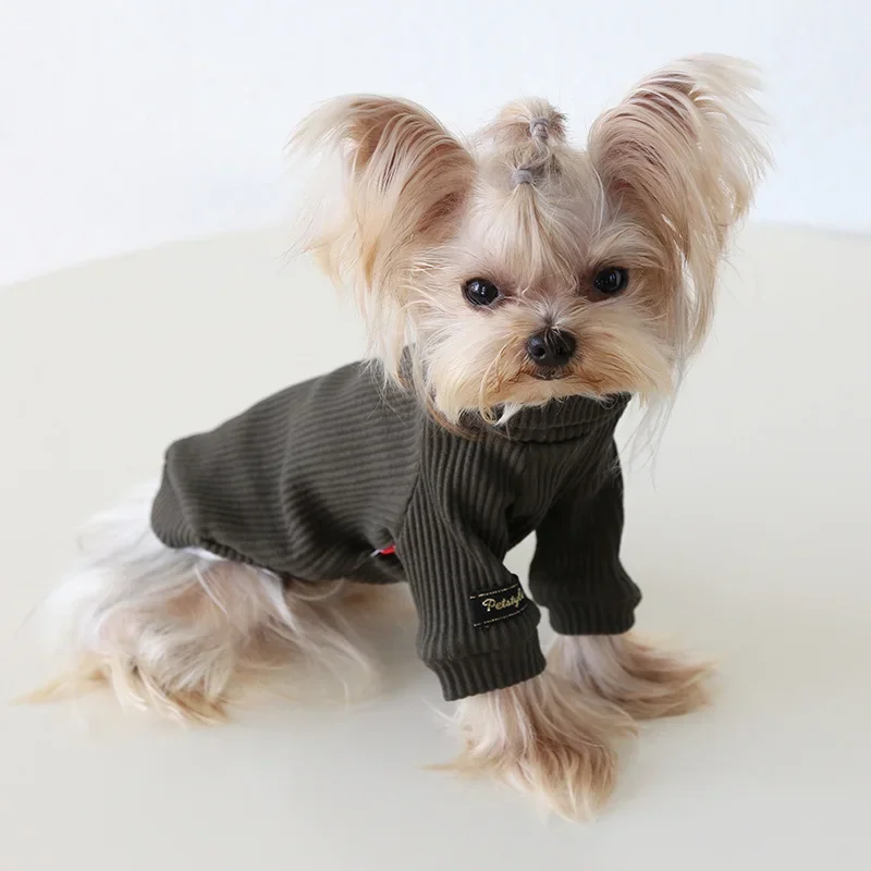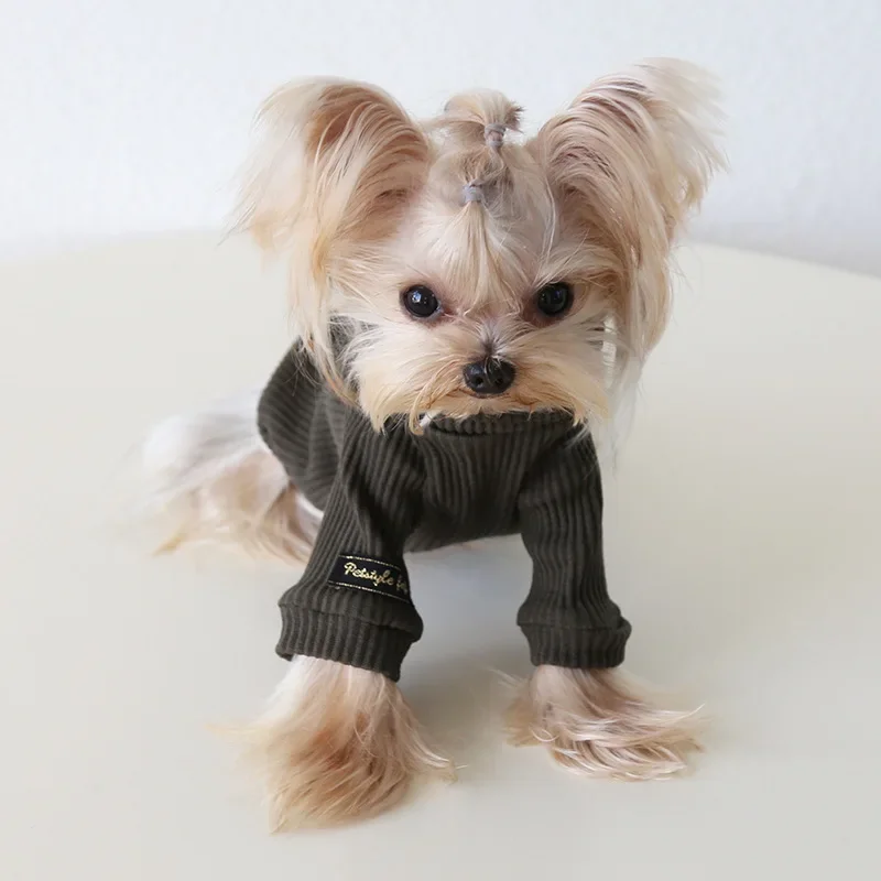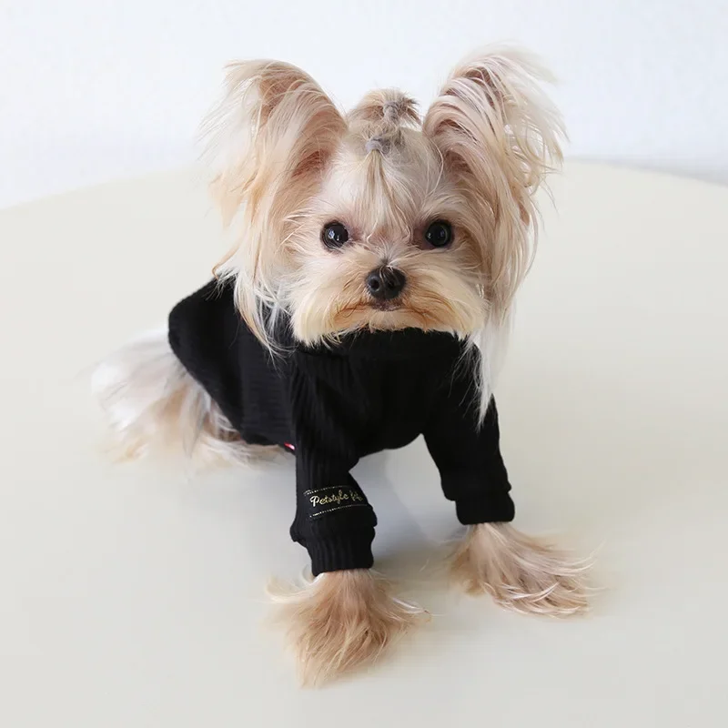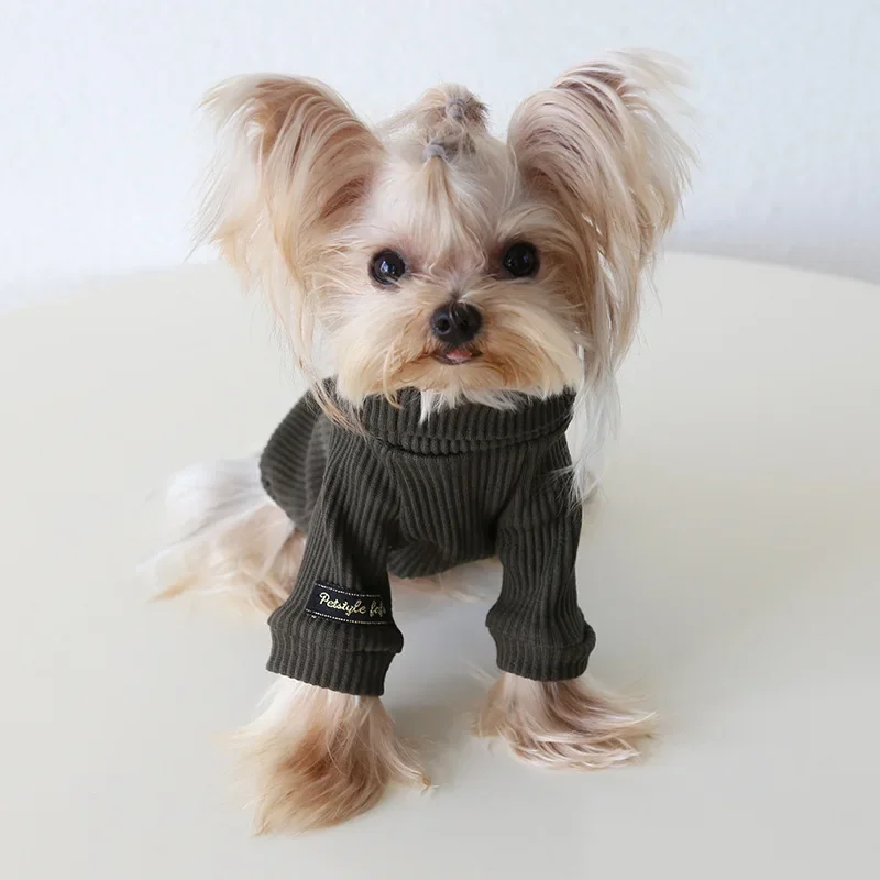 Camisa básica de manga de mosca con solapa para mascotas, ropa de cuello alto para gatos, camisa Base para mascotas, ropa de otoño e invierno con capucha para perros, ropa para cachorros