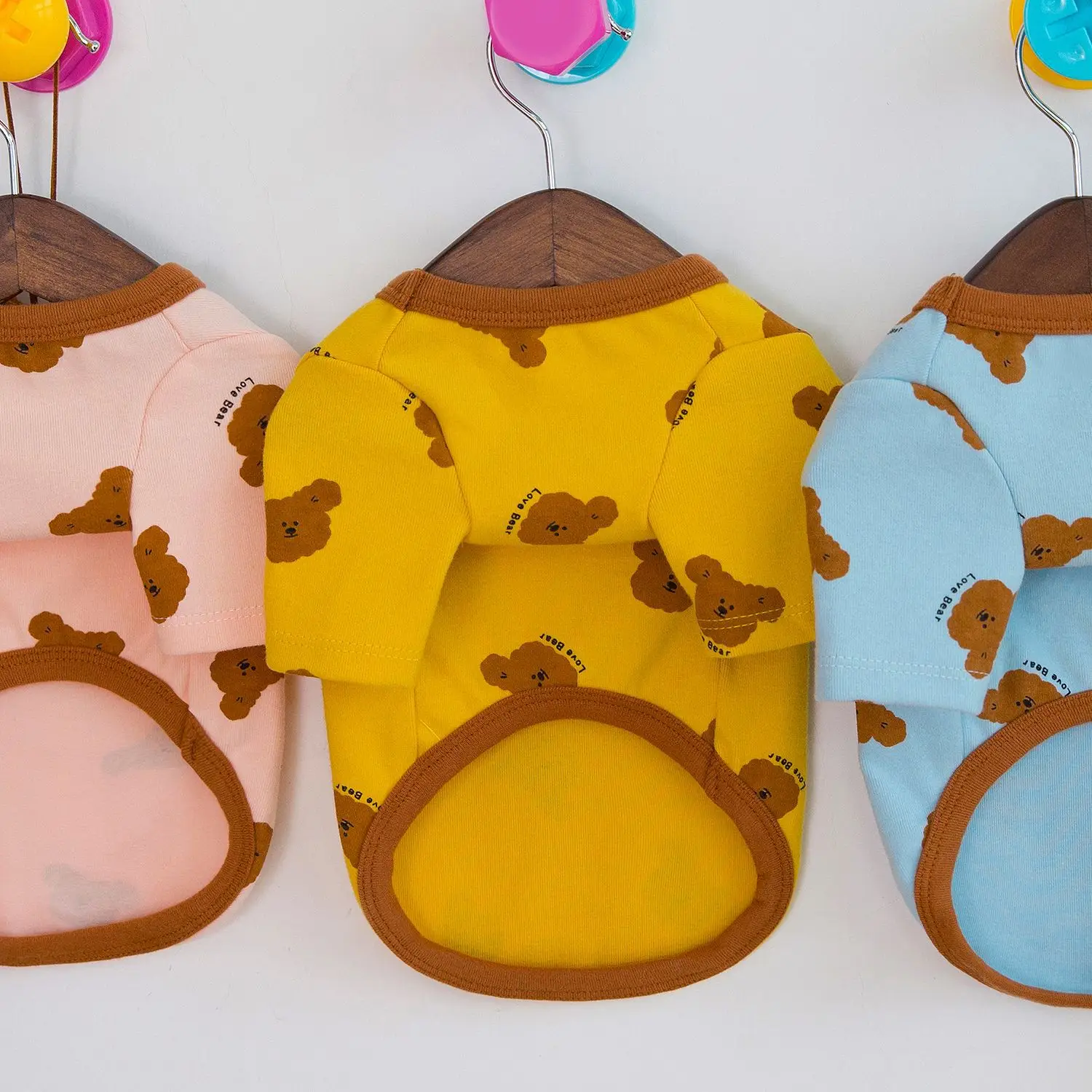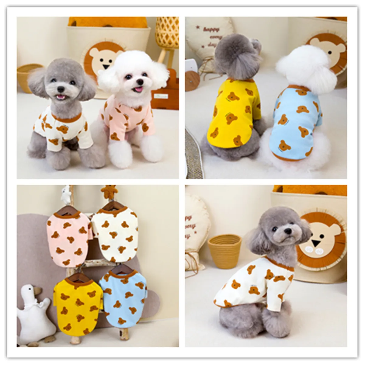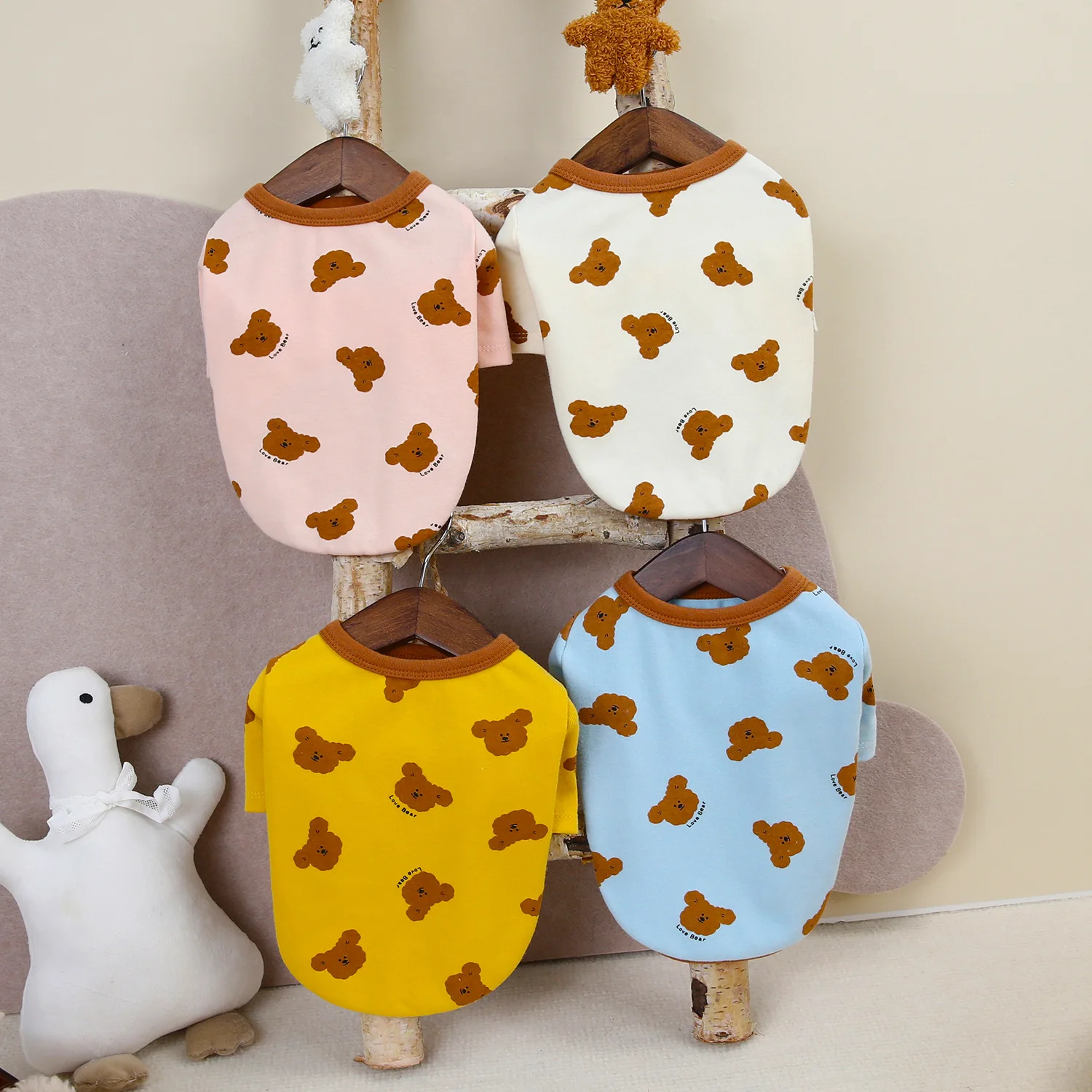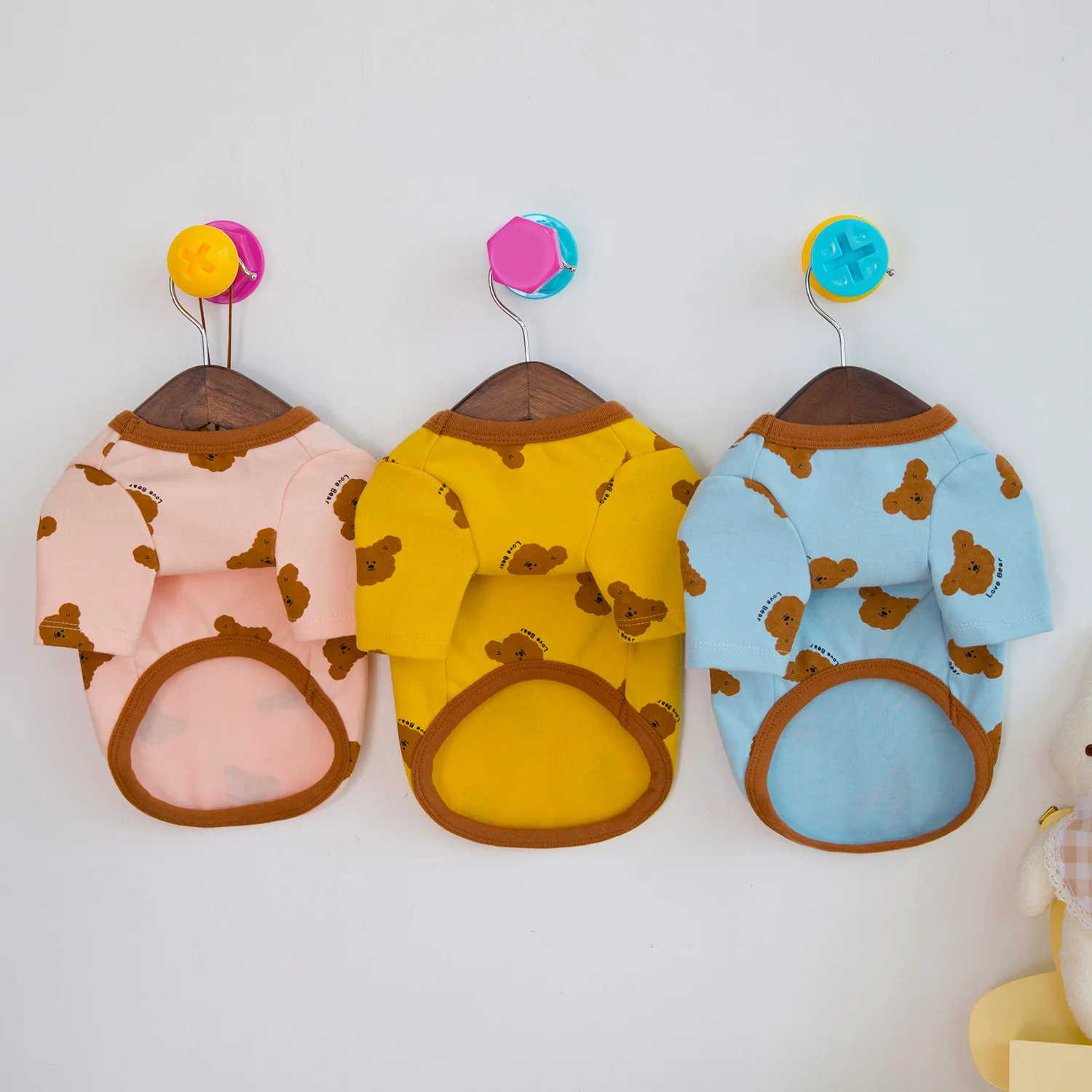 Camisa básica de oso de peluche para mascotas, ropa para perros pequeños, nueva ropa cómoda, camiseta elástica con estampado de oso de cuatro colores, ropa para cachorros