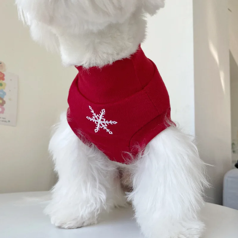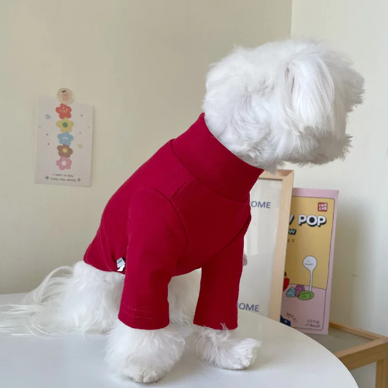 Camisa básica roja de Año Nuevo para mascotas, Top con manga de burbuja navideña, Sudadera con capucha de cuello alto para perros, gato de peluche, otoño e invierno para perros pequeños