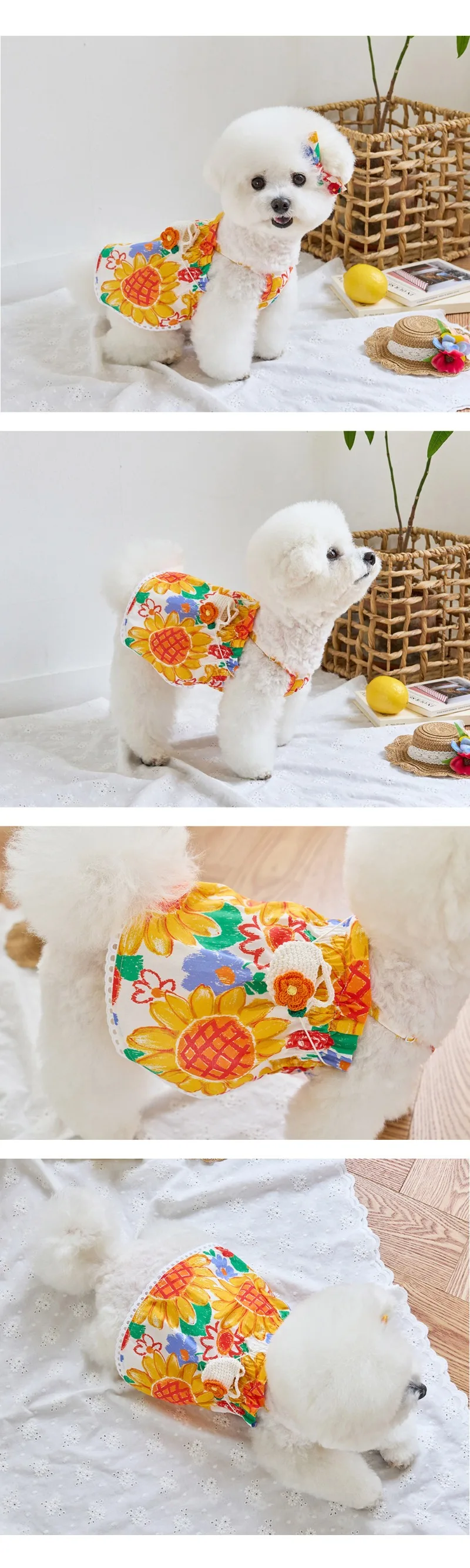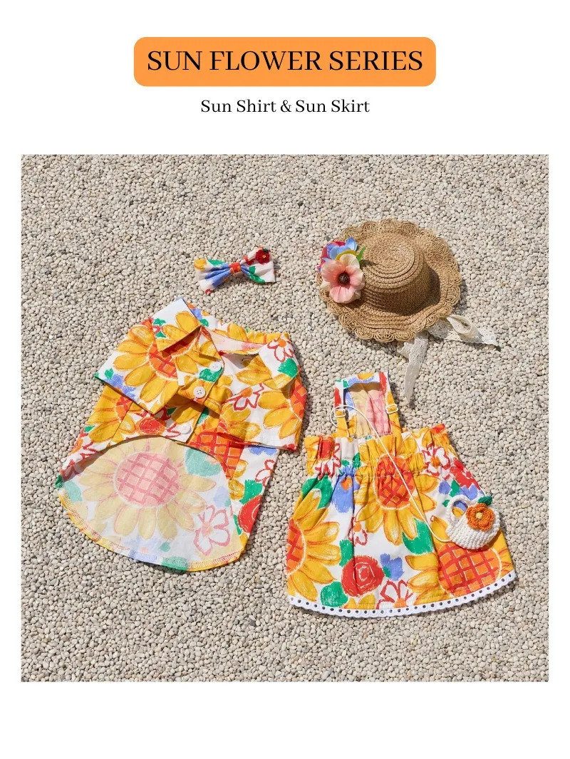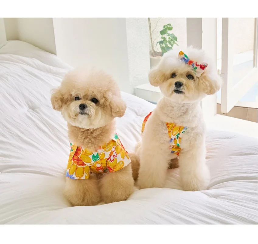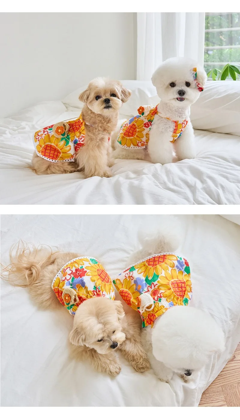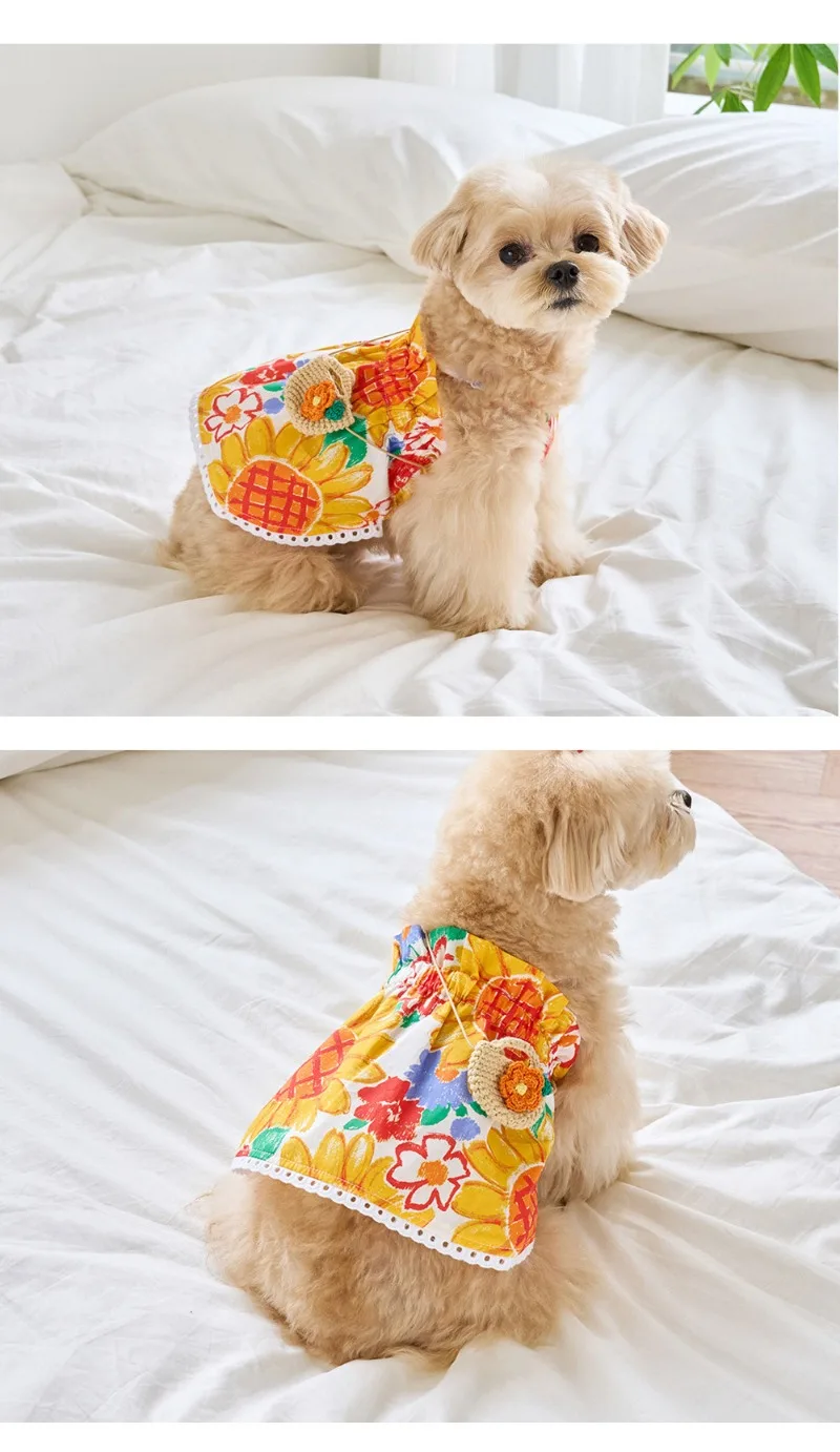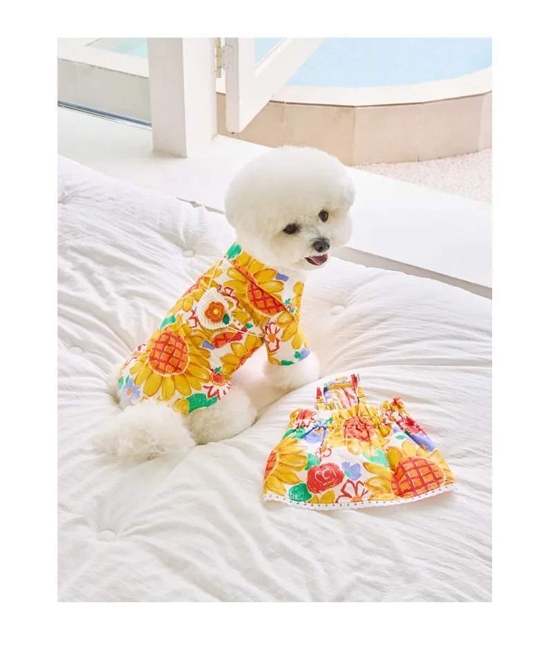 Camisa sin bolsa INS para perros pequeños, disfraz con estampado de girasoles, ropa para cachorros y mascotas, ropa suave Premium, vestido para cachorros