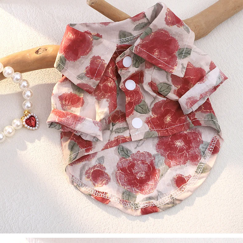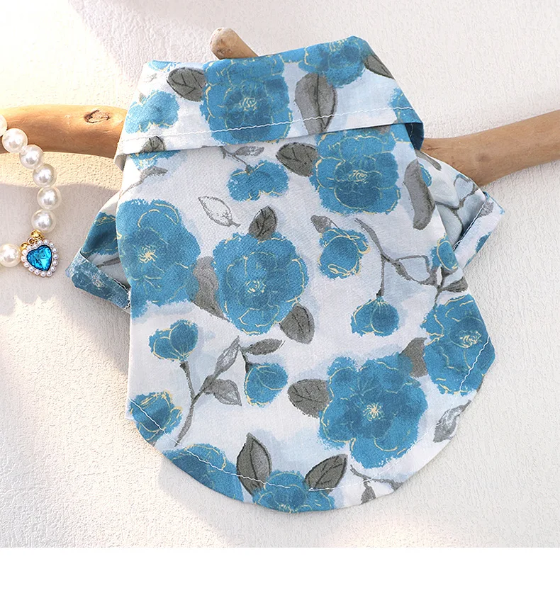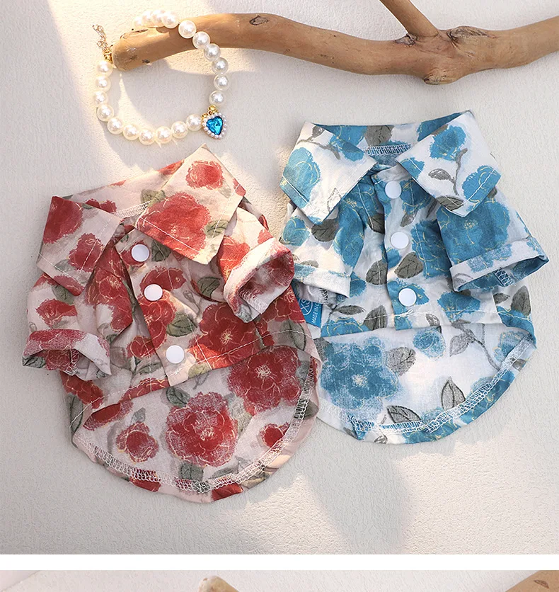 Camisa con cuello de flores para mascotas, camisa de vacaciones para perros, protector solar para perros pequeños, ropa de dos piernas, ropa para cachorros