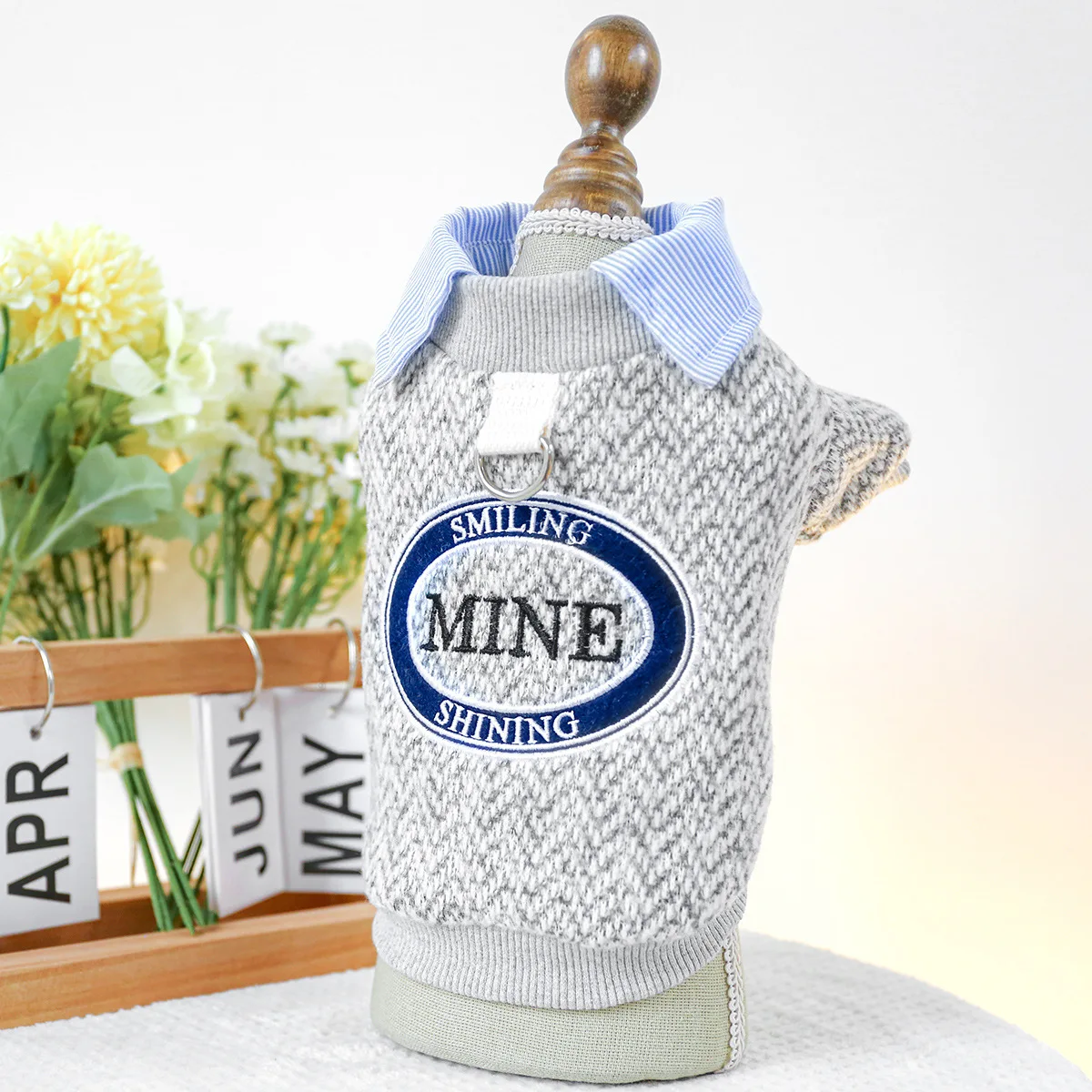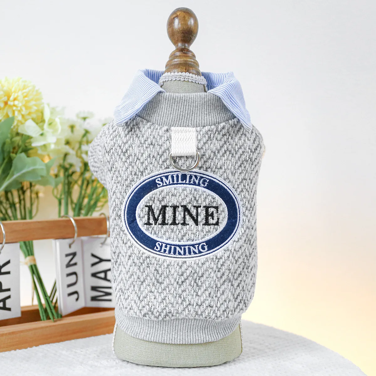 Camisa con cuello de punto para mascotas, Sudadera con capucha, ropa para perros y gatos, abrigo falso de dos piezas bordado, ropa para perros pequeños