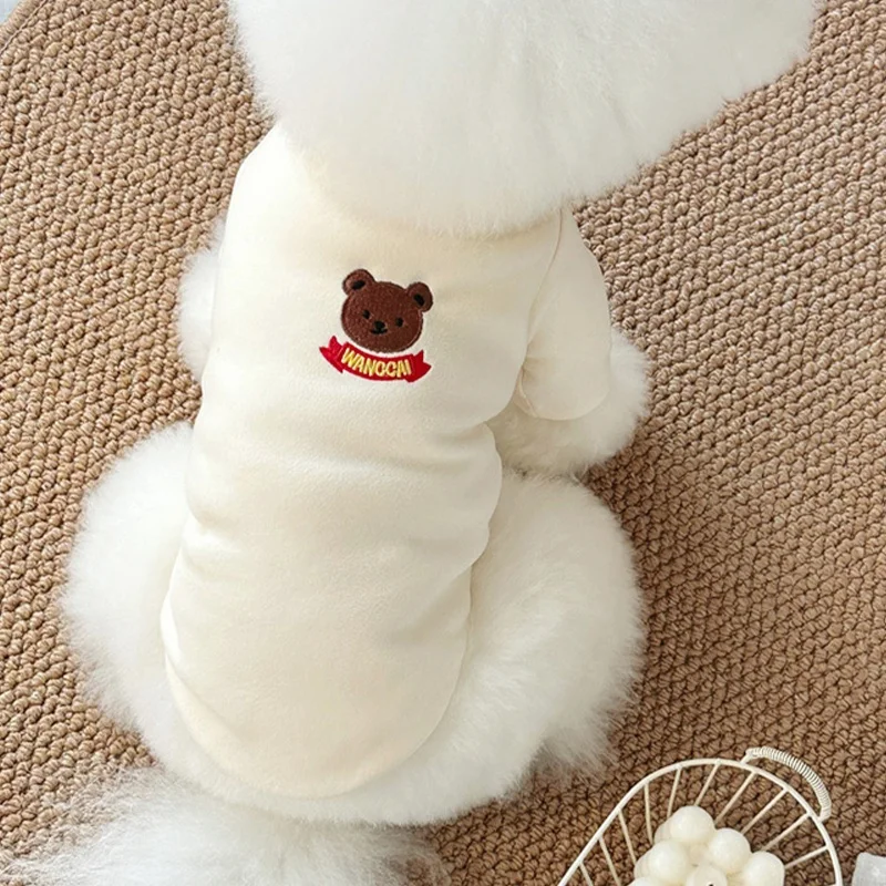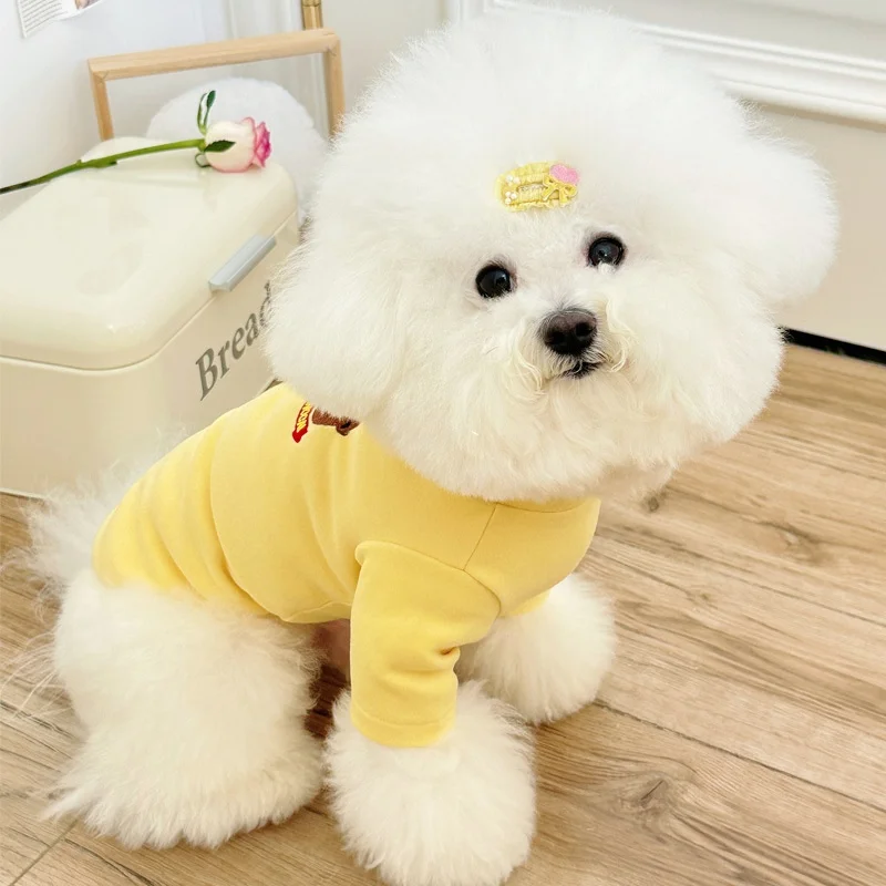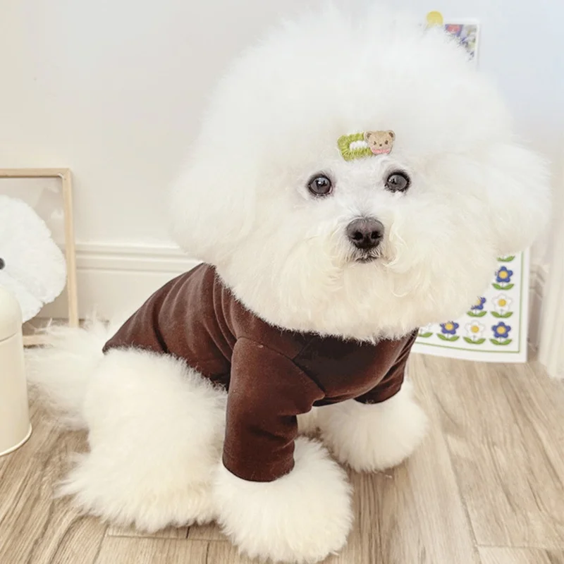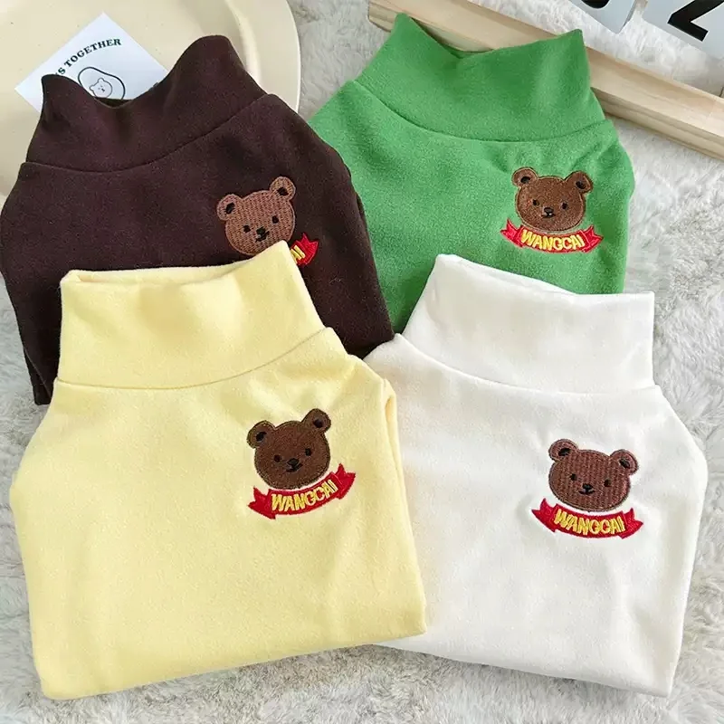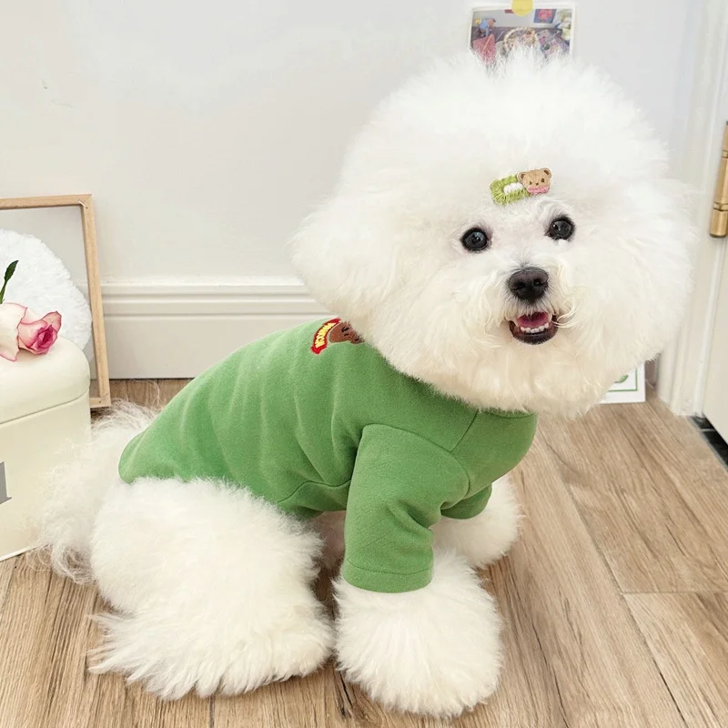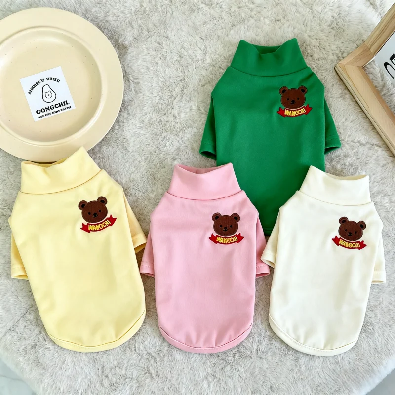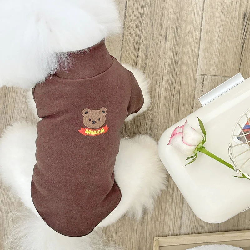 Camisa con estampado de oso para perro, jerseys, ropa de lujo para perro, sudaderas bonitas y sólidas para cachorros, camisa de cuello alto suave y cálida para mascota, trajes Bichon