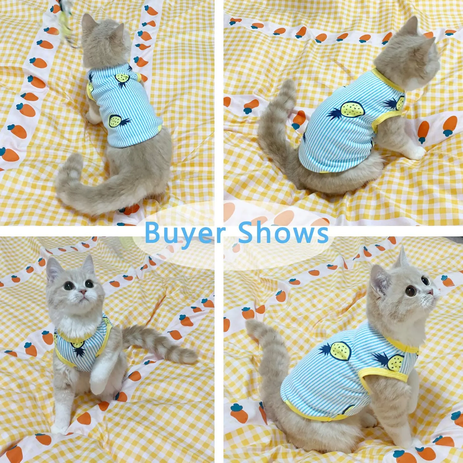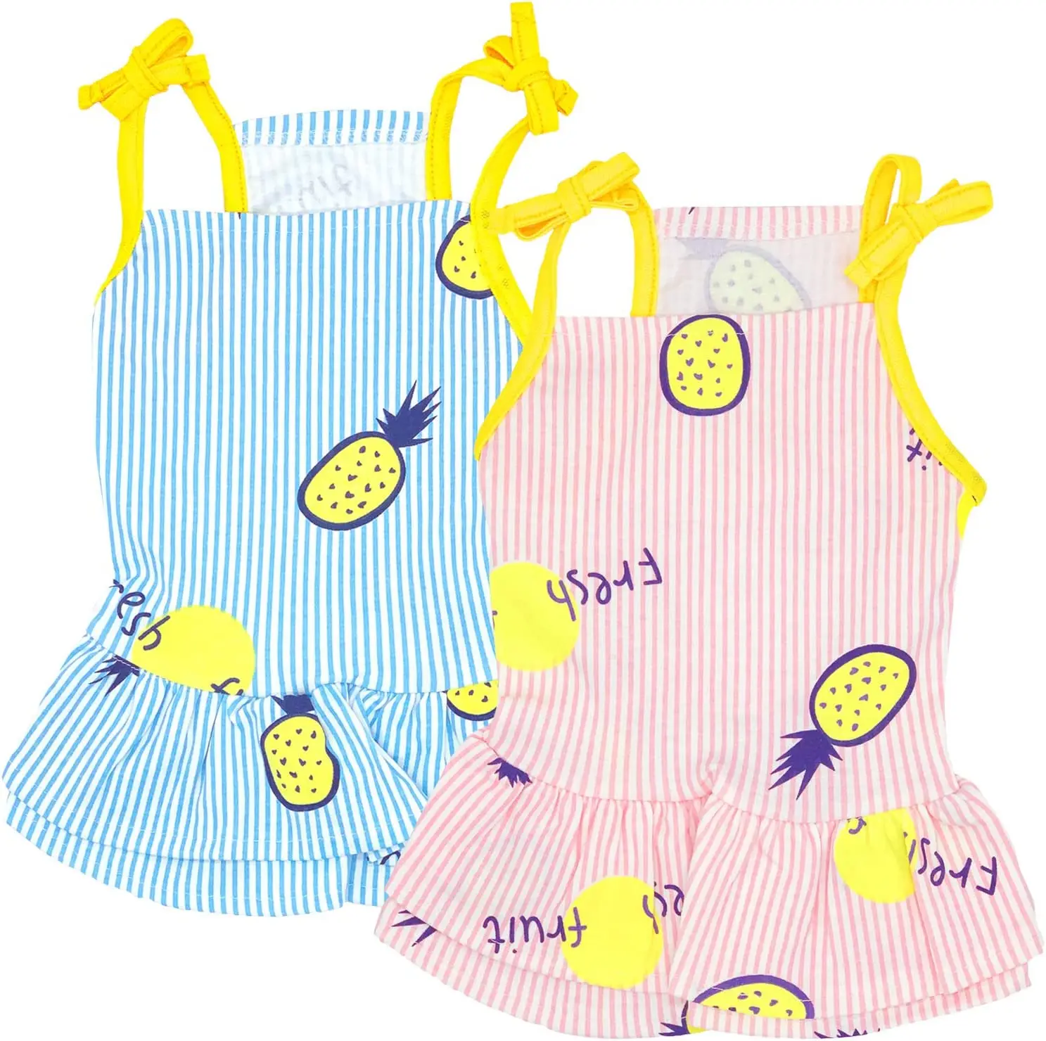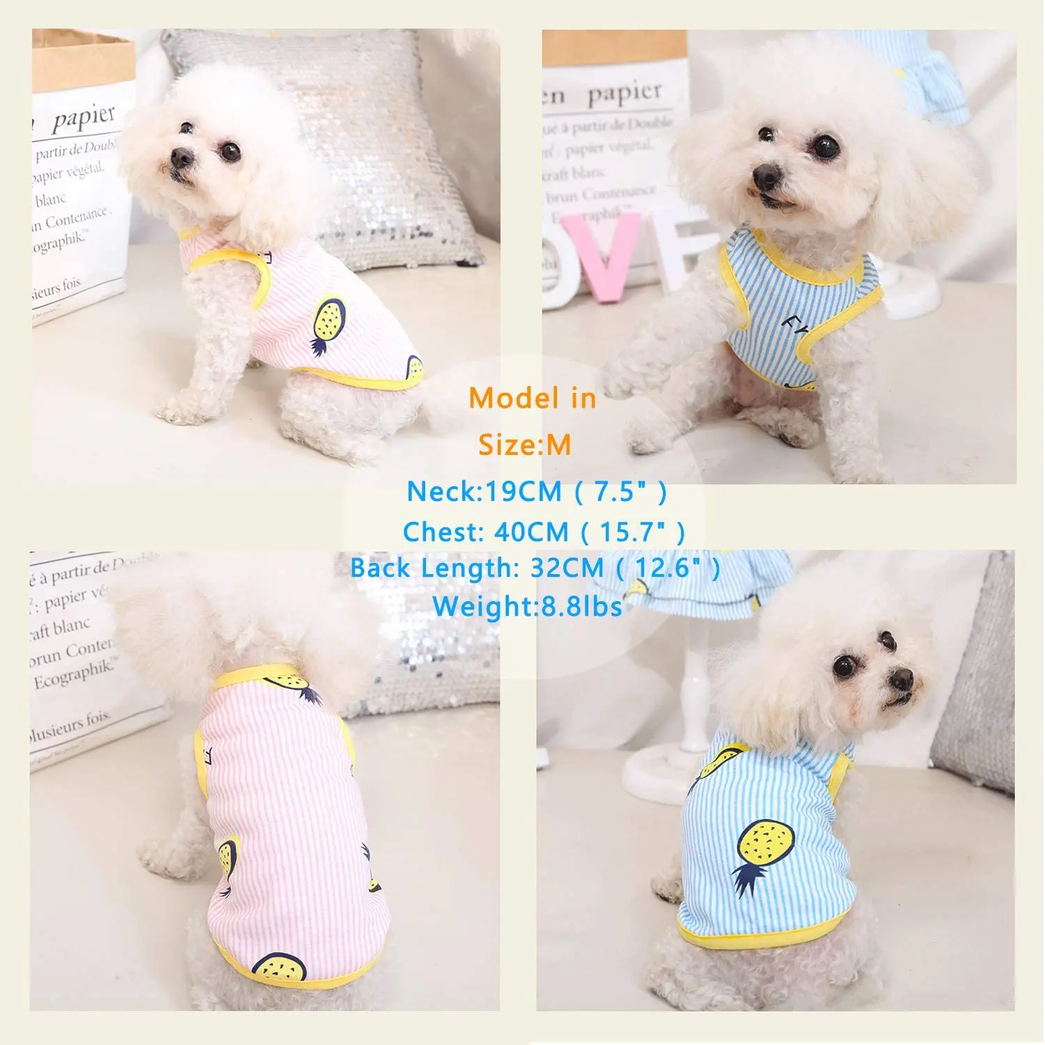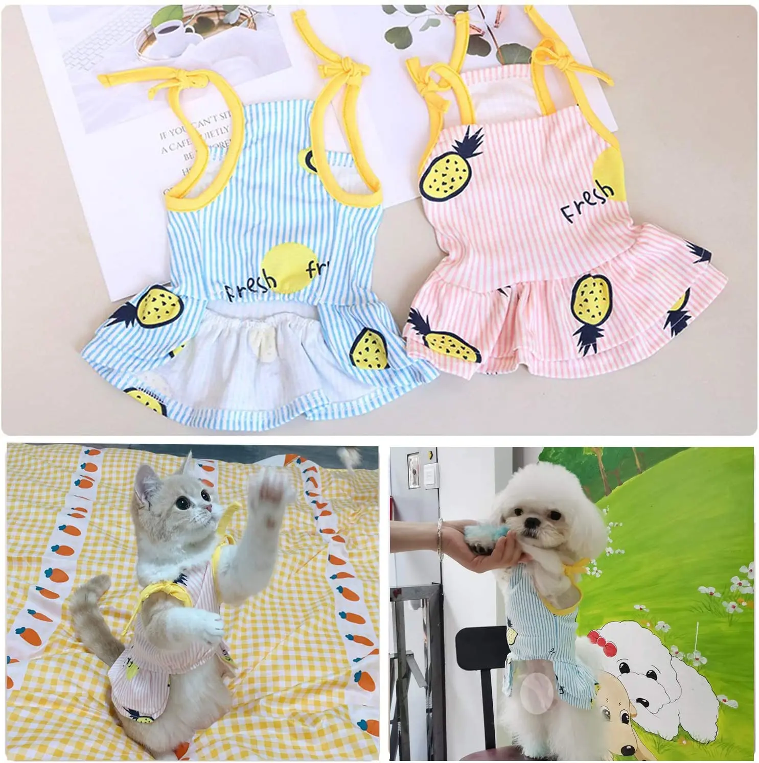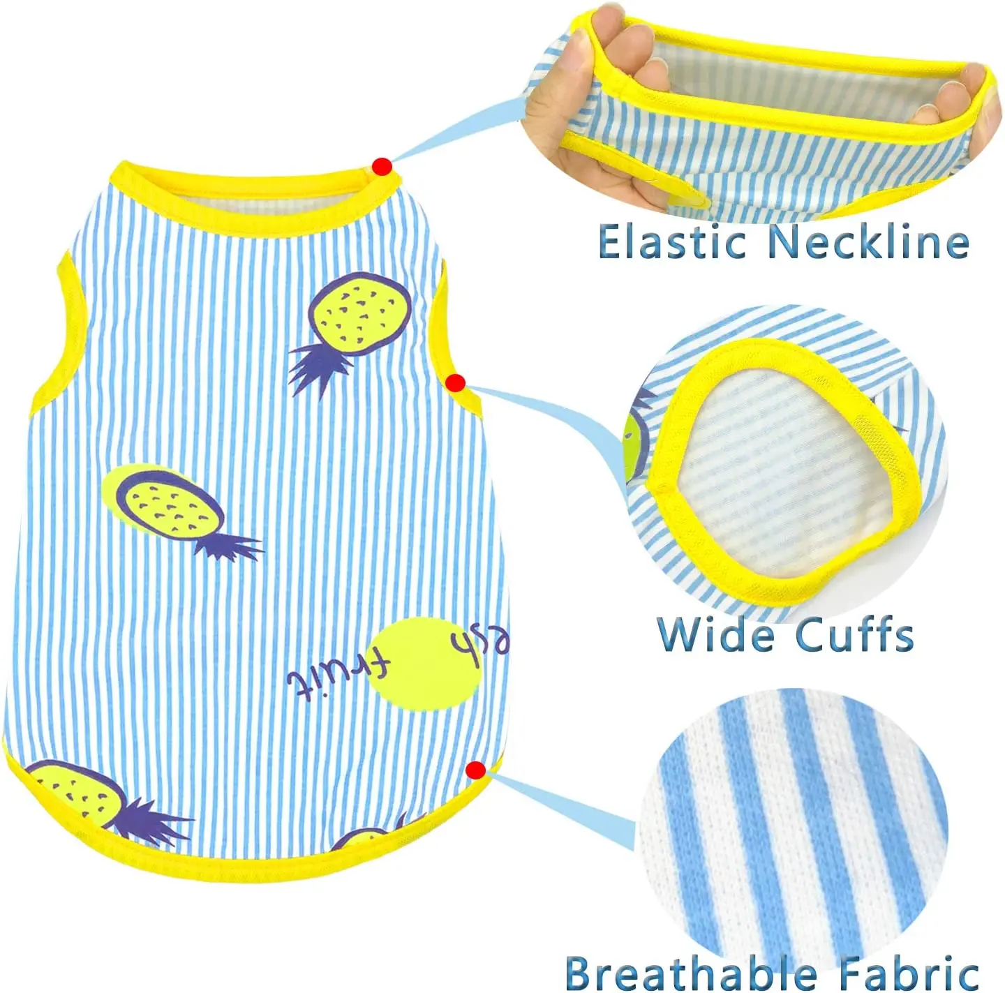 Esta ropa para mascotas con estampado de letras y gráficos de piña a rayas mantiene a su mascota Linda y encantadora y es ideal para todos los días, fiestas, cumpleaños y tomar fotos.