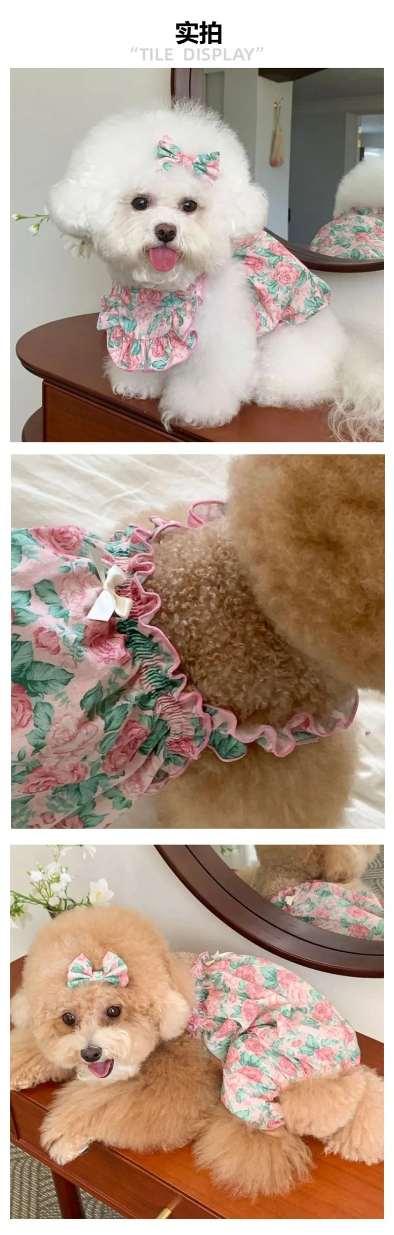 Camisa y falda de verano de encaje floral para perros pequeños: diseño ligero de dos patas con correas ajustables, cachorro con mangas voladoras