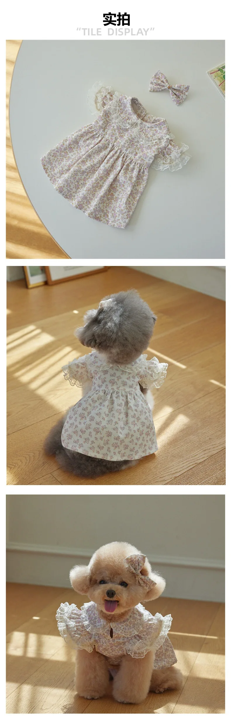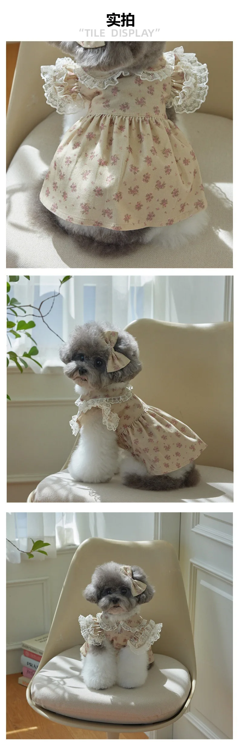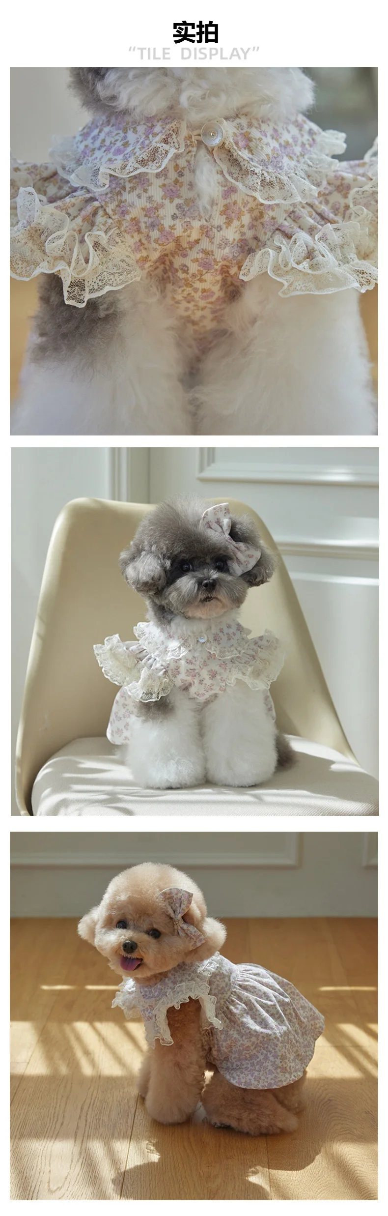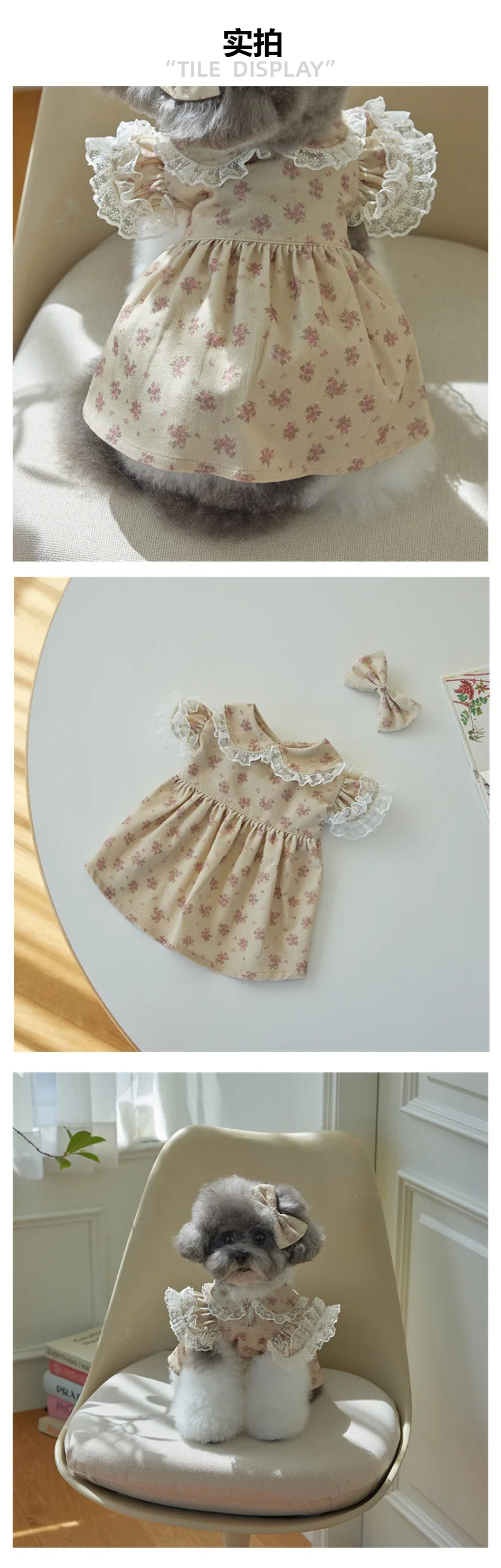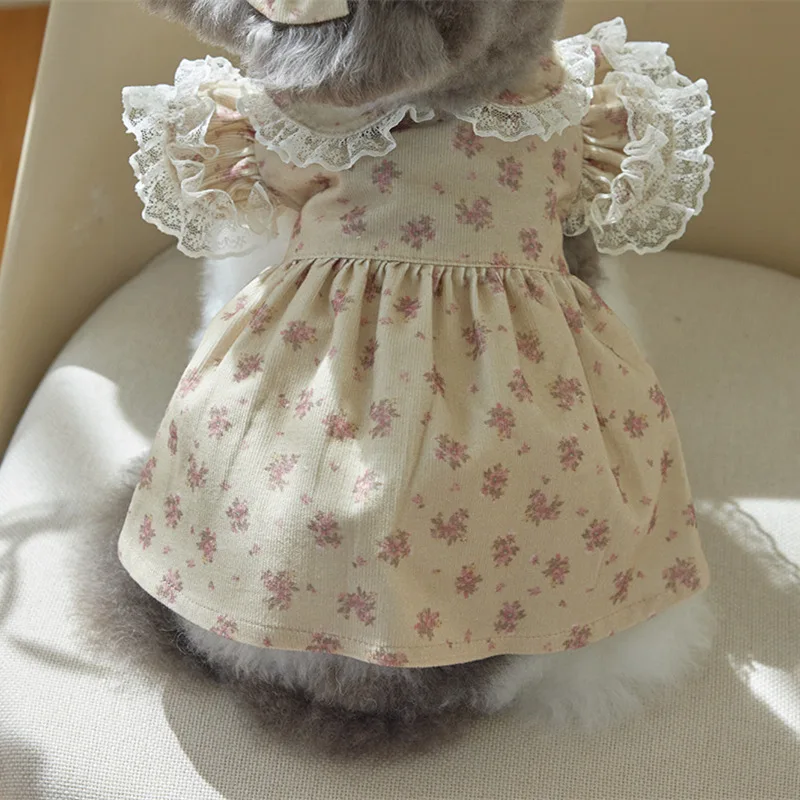 Camisa Floral de primavera para mascotas, falda para gato, vestido estampado de pana de otoño, cuello de peluche, Top de encaje, ropa para cachorros, vestidos para perros pequeños