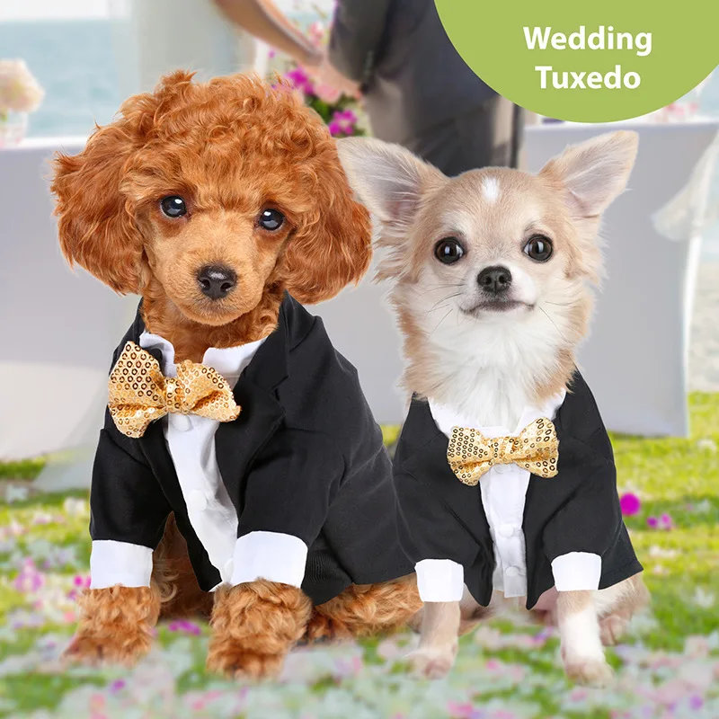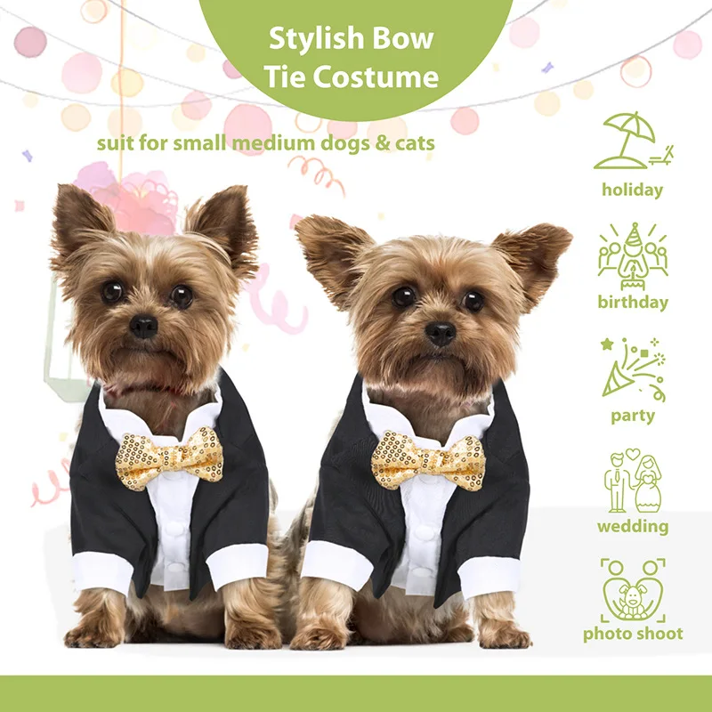 Camisa formal para perros pequeños, esmoquin de lentejuelas doradas, ropa de estilo occidental, traje de boda, disfraz de cachorro para gatos