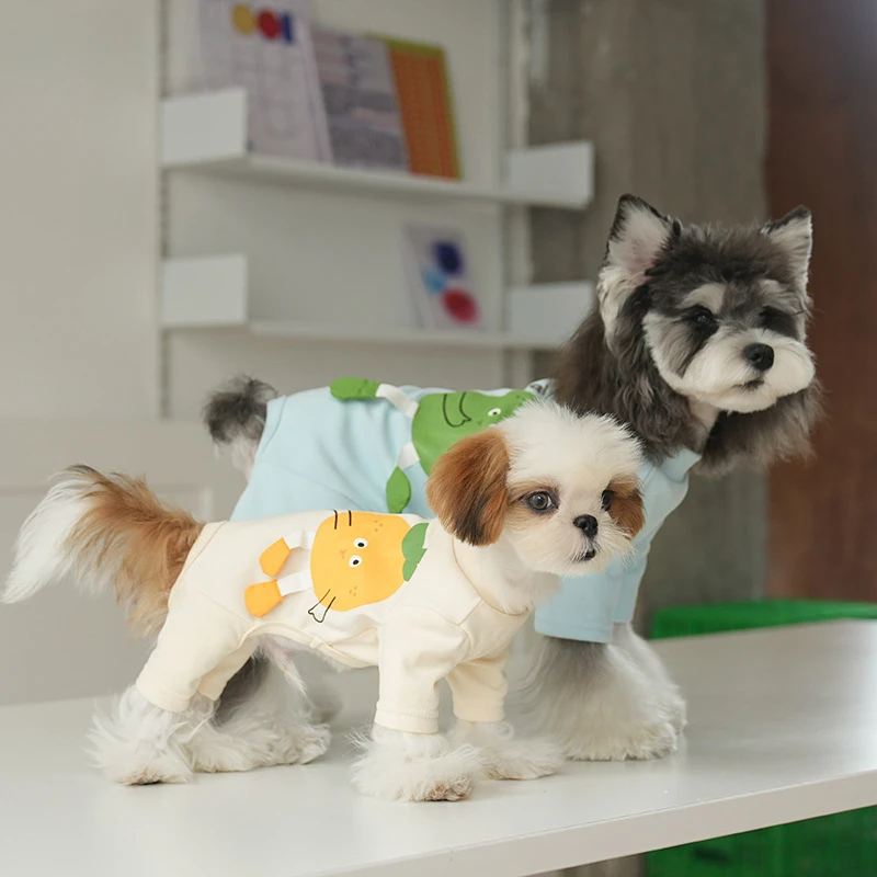 Camisa inferior de cuatro patas para mascota, pijama con estampado de dibujos animados, mono para perro, pantalones de cuatro piernas, ropa para cachorro, disfraz de invierno para perro, Otoño/Invierno