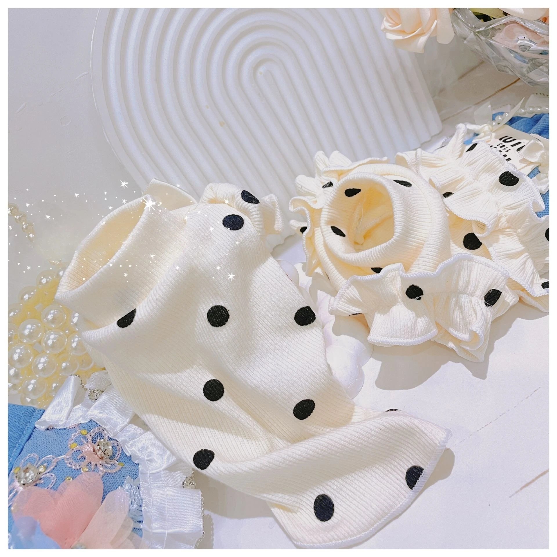 Camisa inferior de manga de burbuja para primavera/verano para mascotas, camiseta sin mangas con borde de oreja y punto ondulado de alta elasticidad, ropa para cachorros