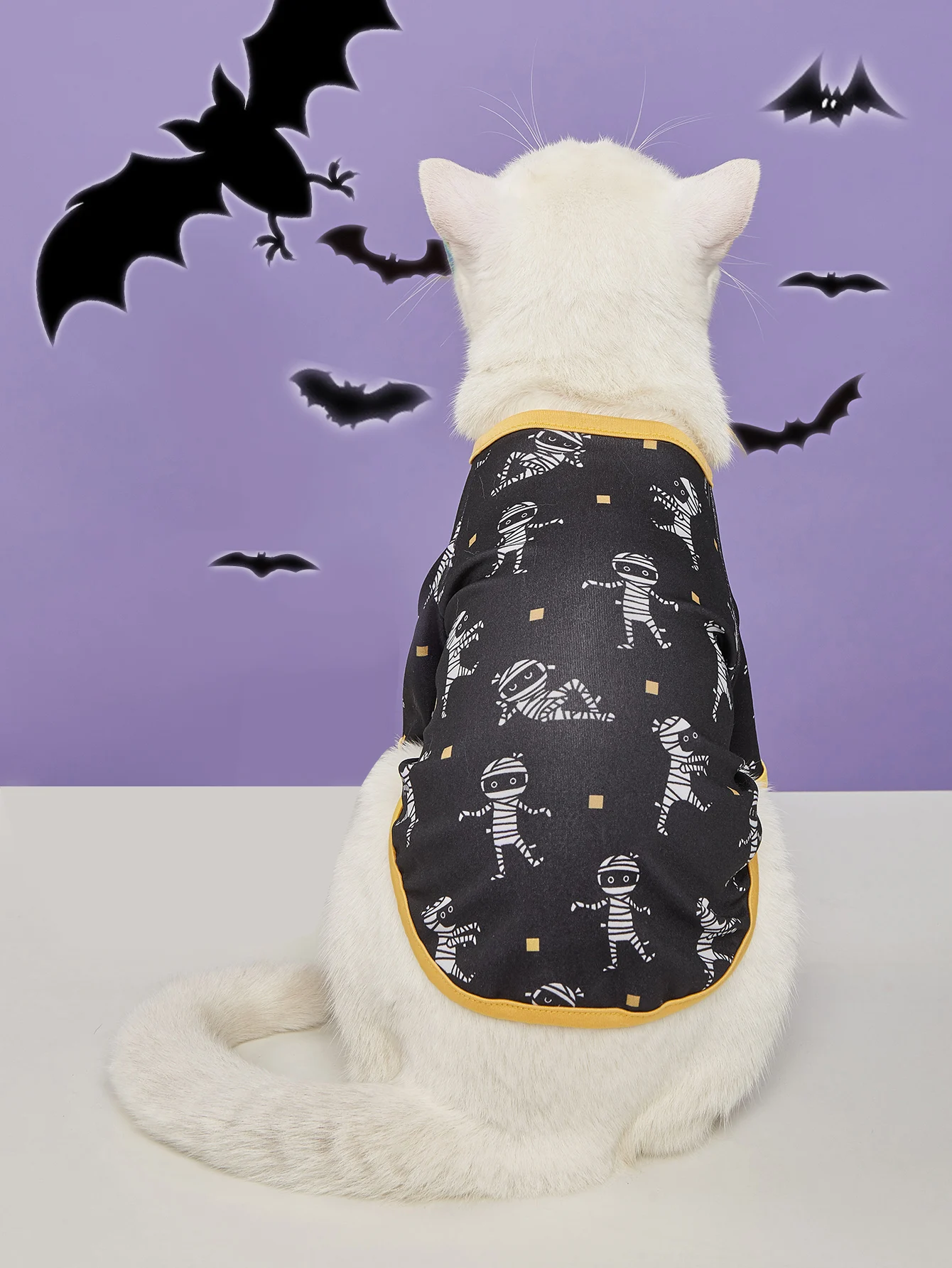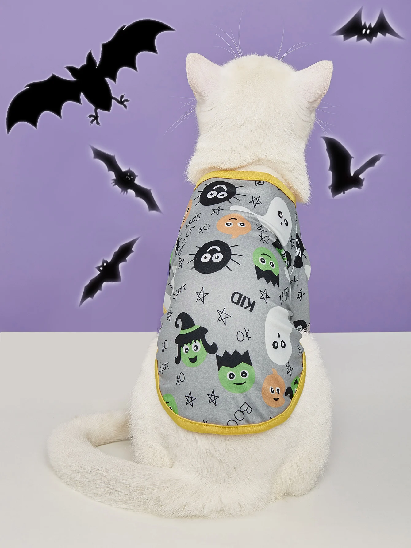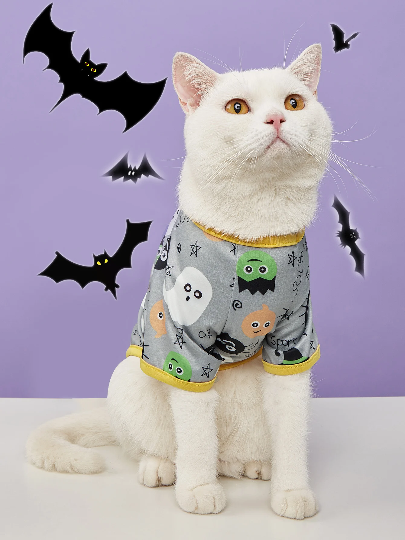 Camisa de invierno para perro, ropa con Calavera, esqueleto de fantasmas, disfraz de mascota impreso, divertido y aterrador
