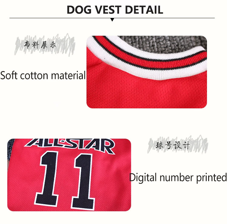 Camiseta para mascotas, chaleco de algodón suave para cachorros, camisa de baloncesto, ropa para mascotas, camiseta sin mangas de verano, ropa para perros pequeños y medianos Tamaño: S M L XL XXL