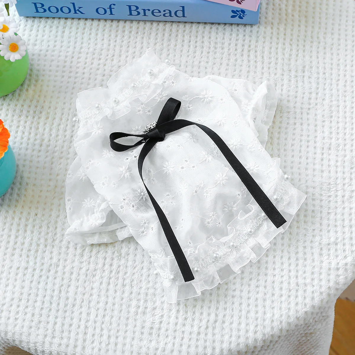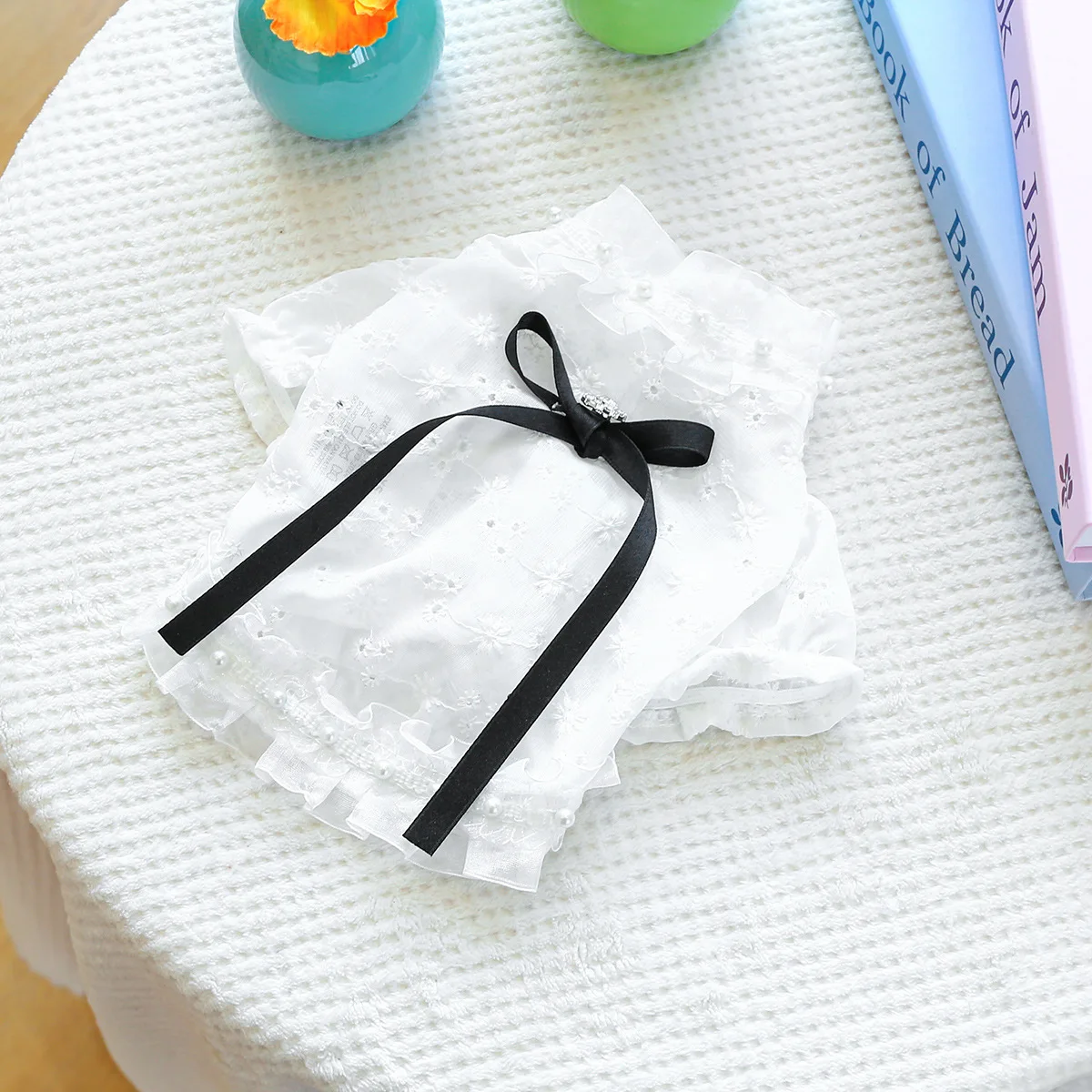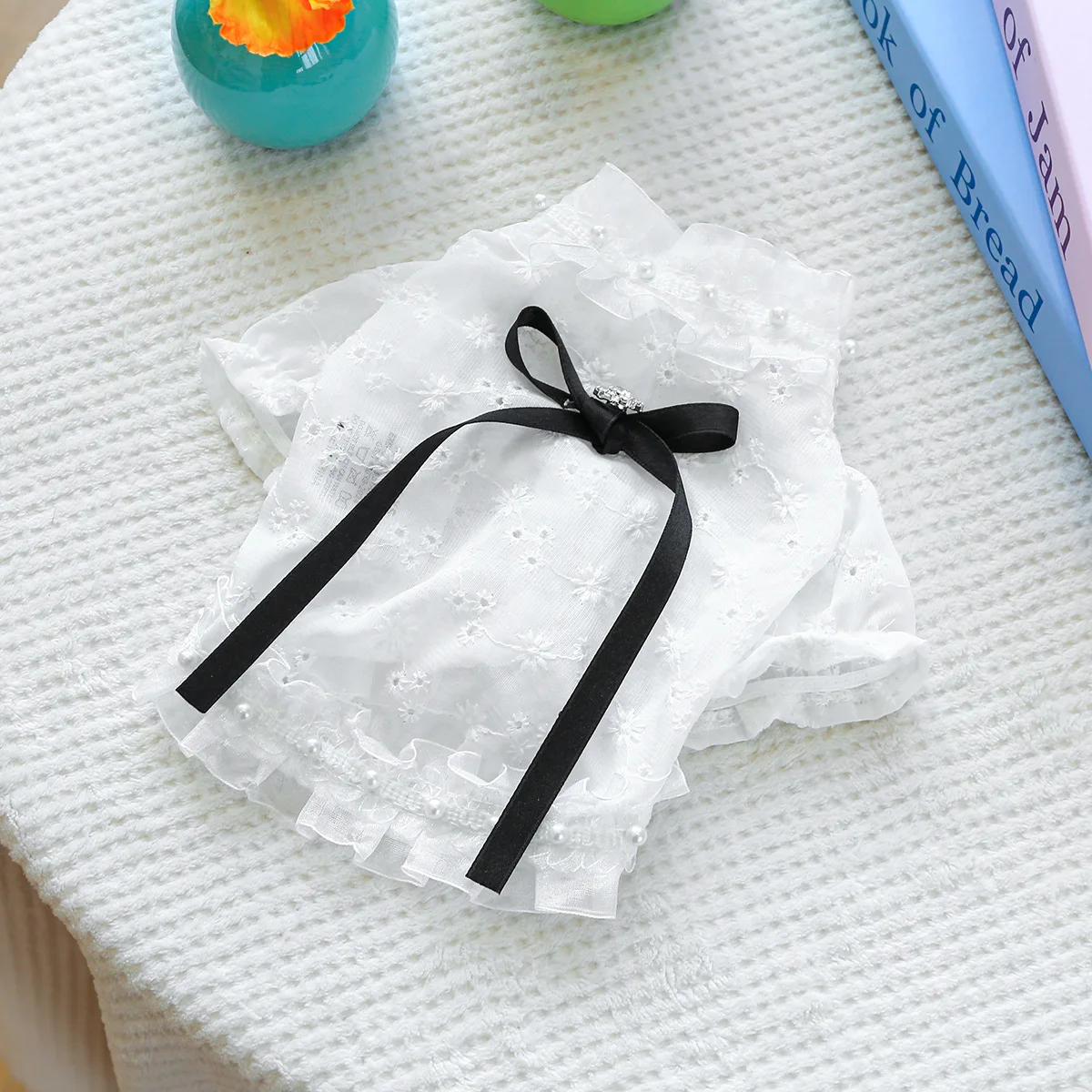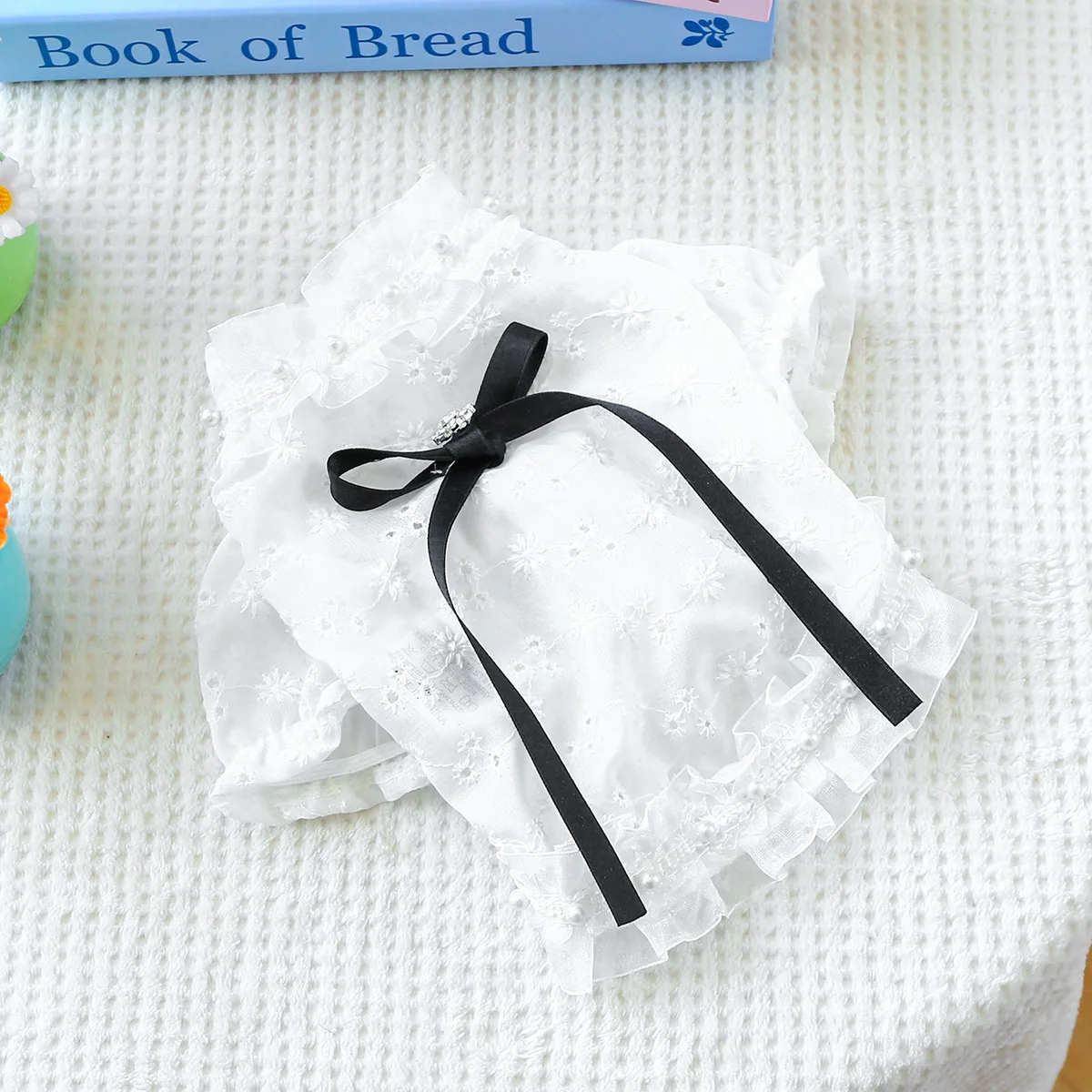 Camisa de manga de burbuja con cuello alto de encaje para mascotas, ropa para perros, camiseta con lazo ahuecado, ropa para mascotas, ropa para cachorros