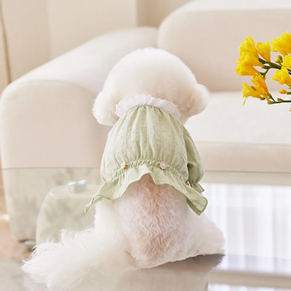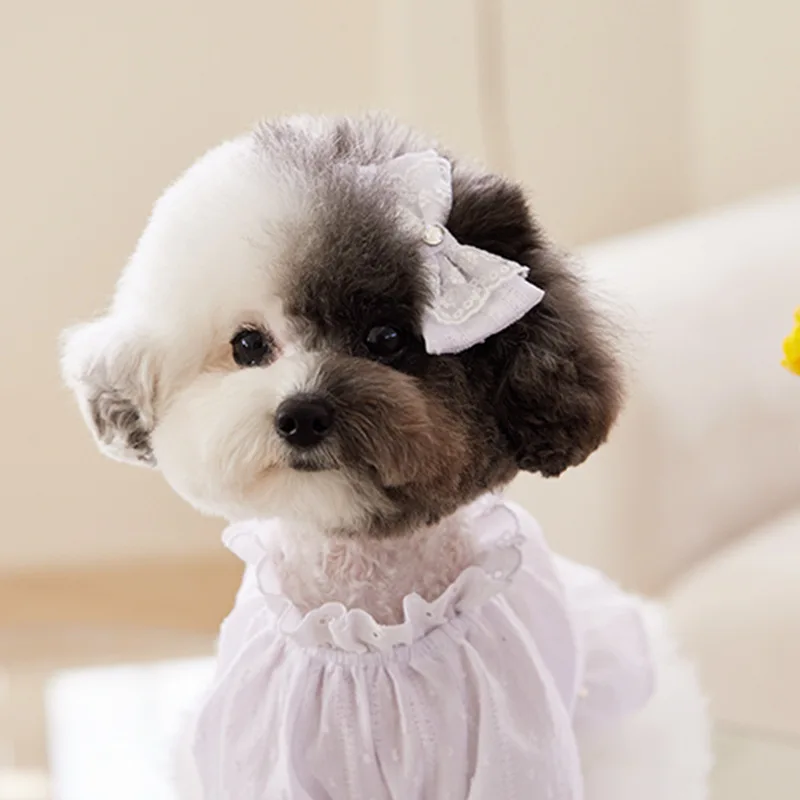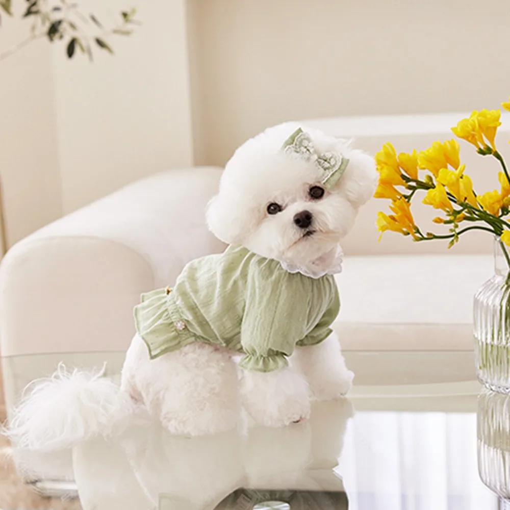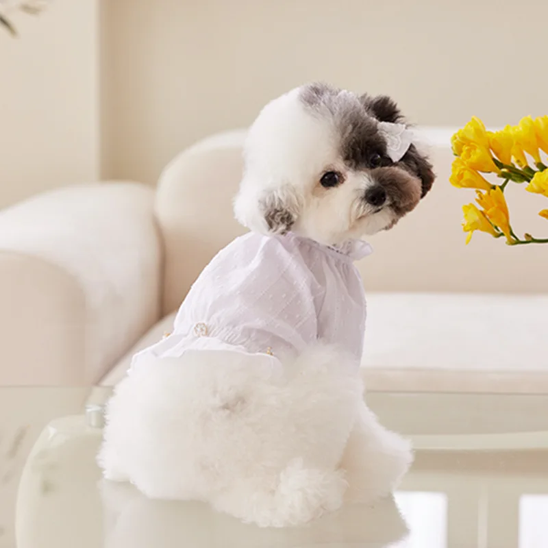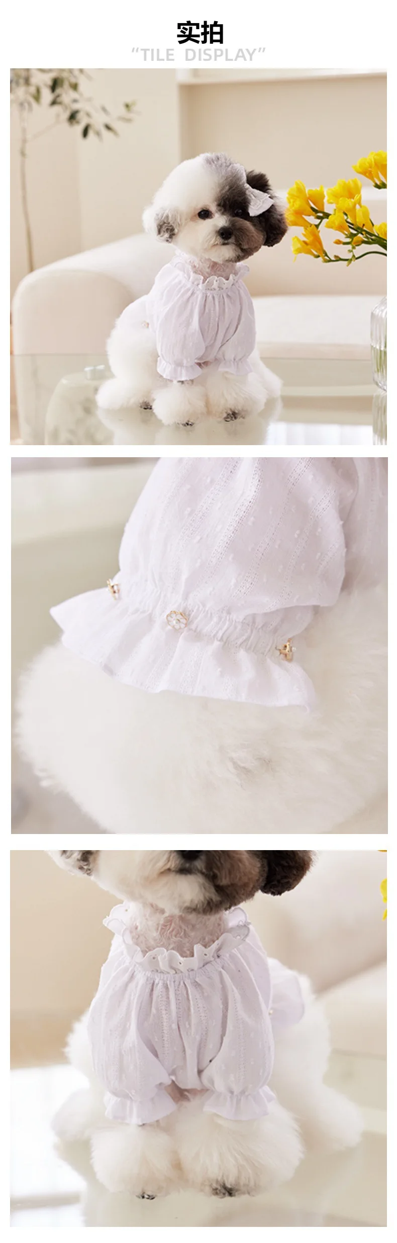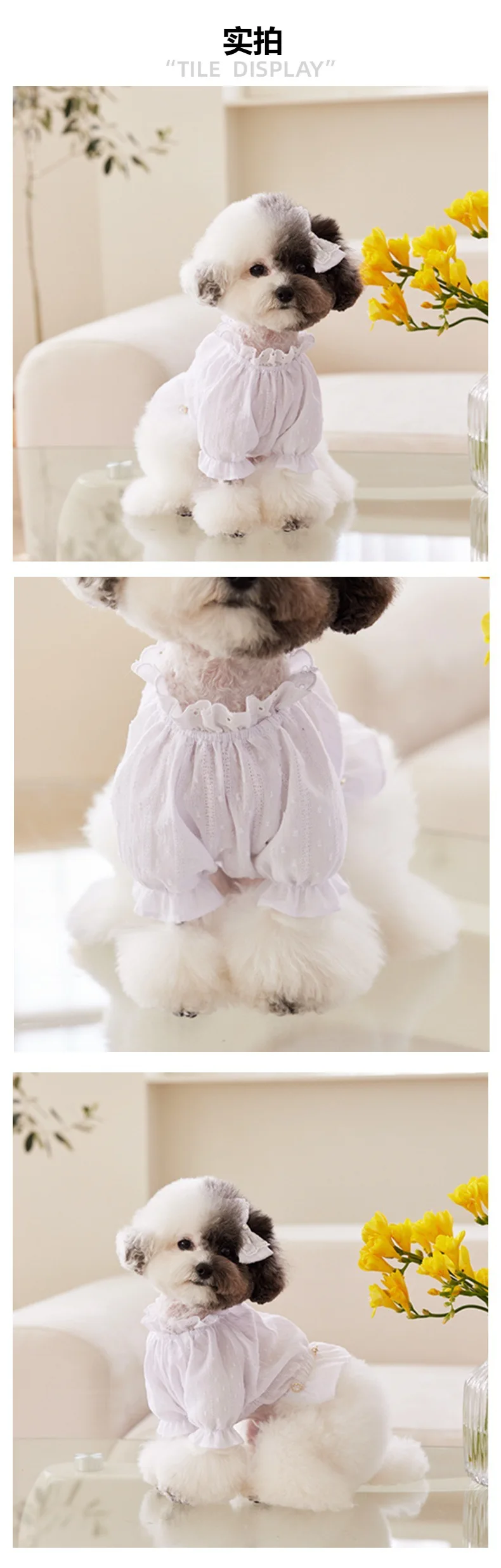 Camisa de manga de burbuja de primavera para mascotas, camiseta transpirable para perros, Top para gatos, peluches, tocado con lazo para mascotas, ropa para cachorros para perros pequeños