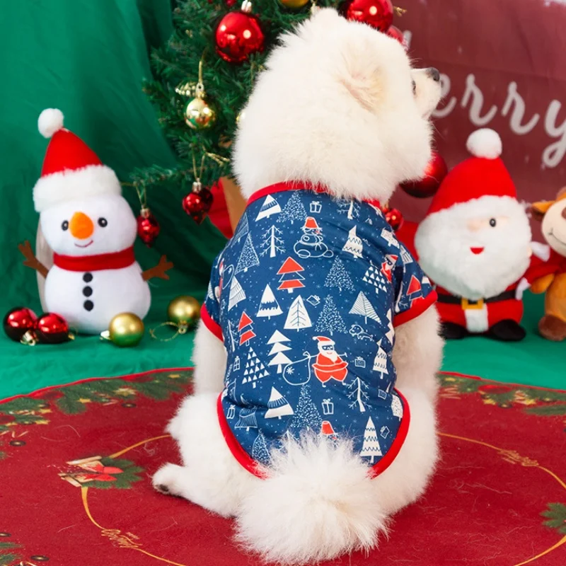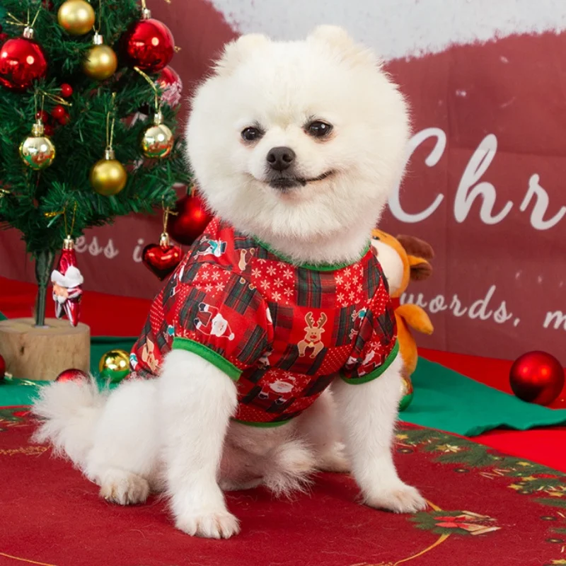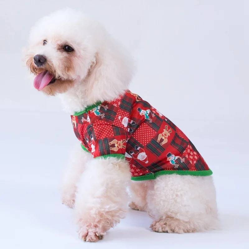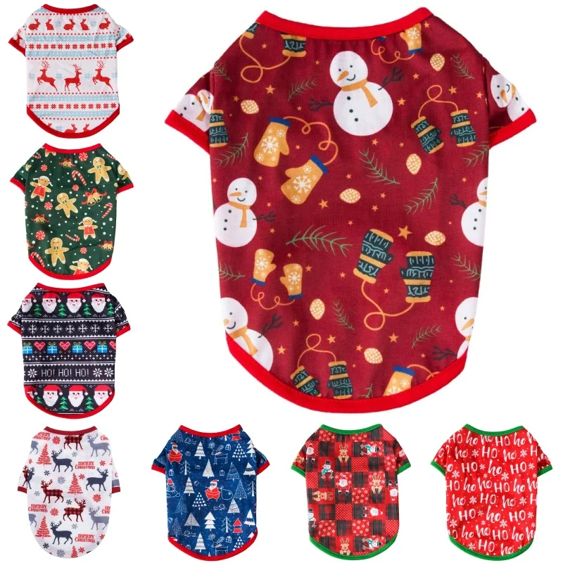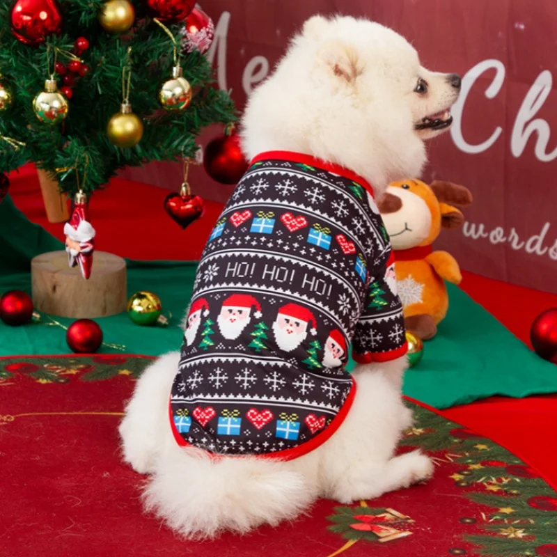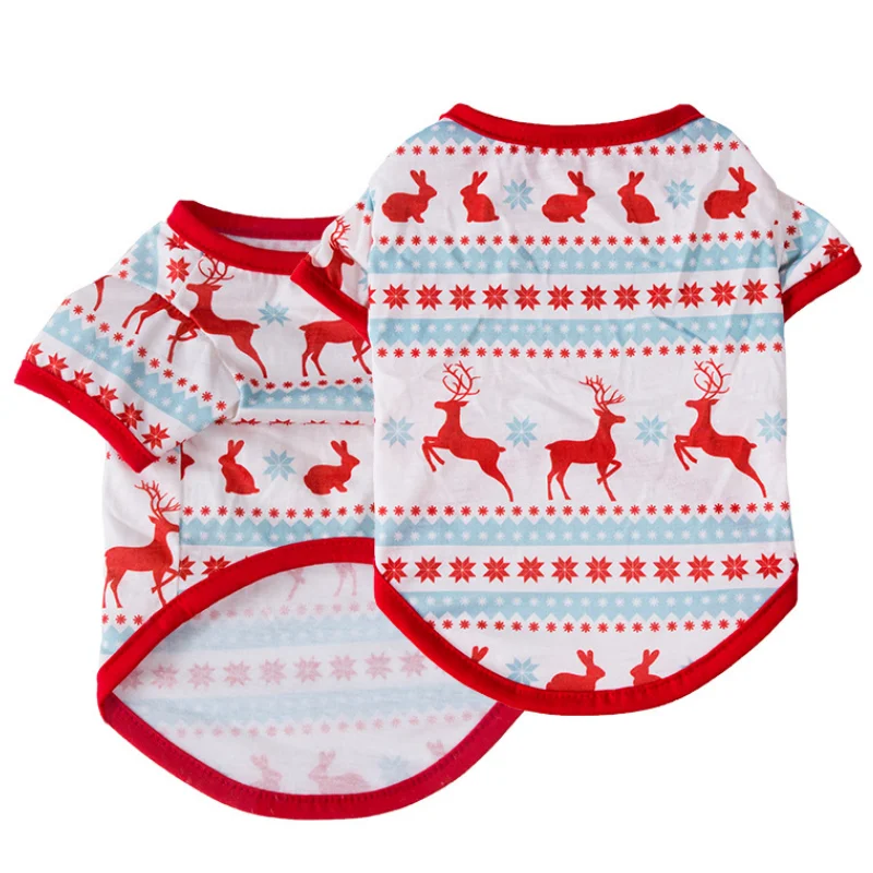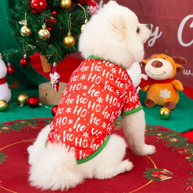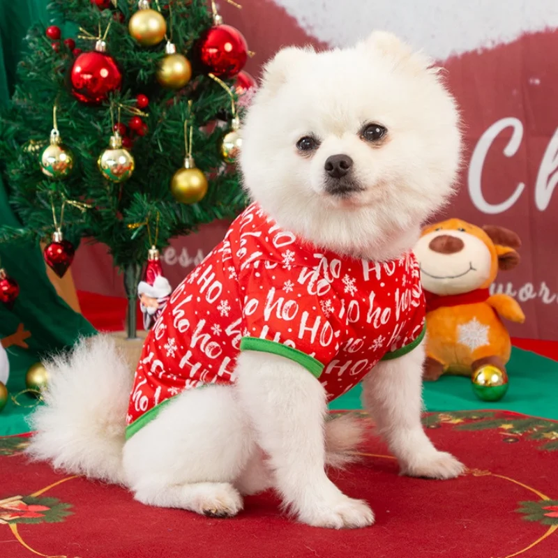 Camisa de moda para perros, ropa navideña para perros, jerseys para cachorros de Año Nuevo, camisa con estampado bonito para gatos, disfraces para mascotas con flecos bichon, suministros para perros