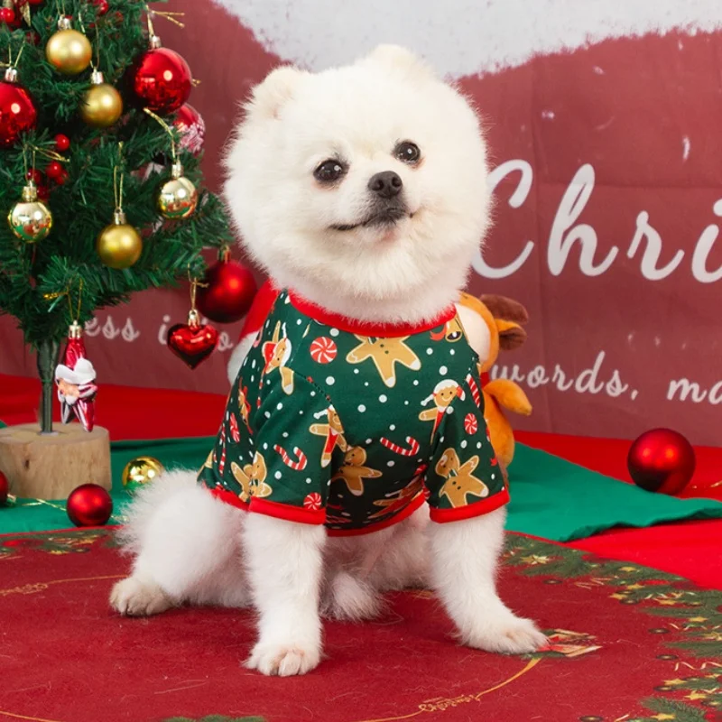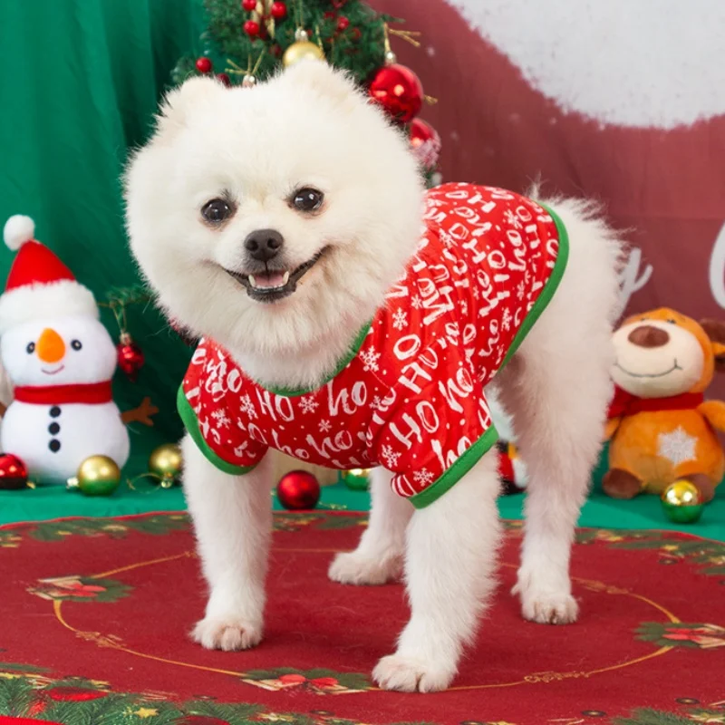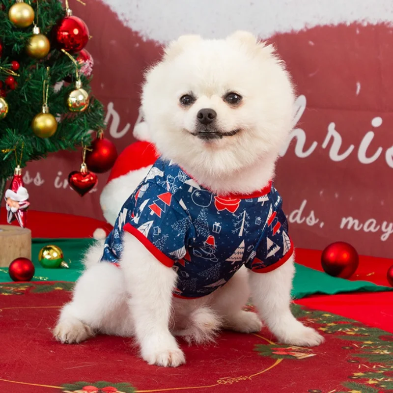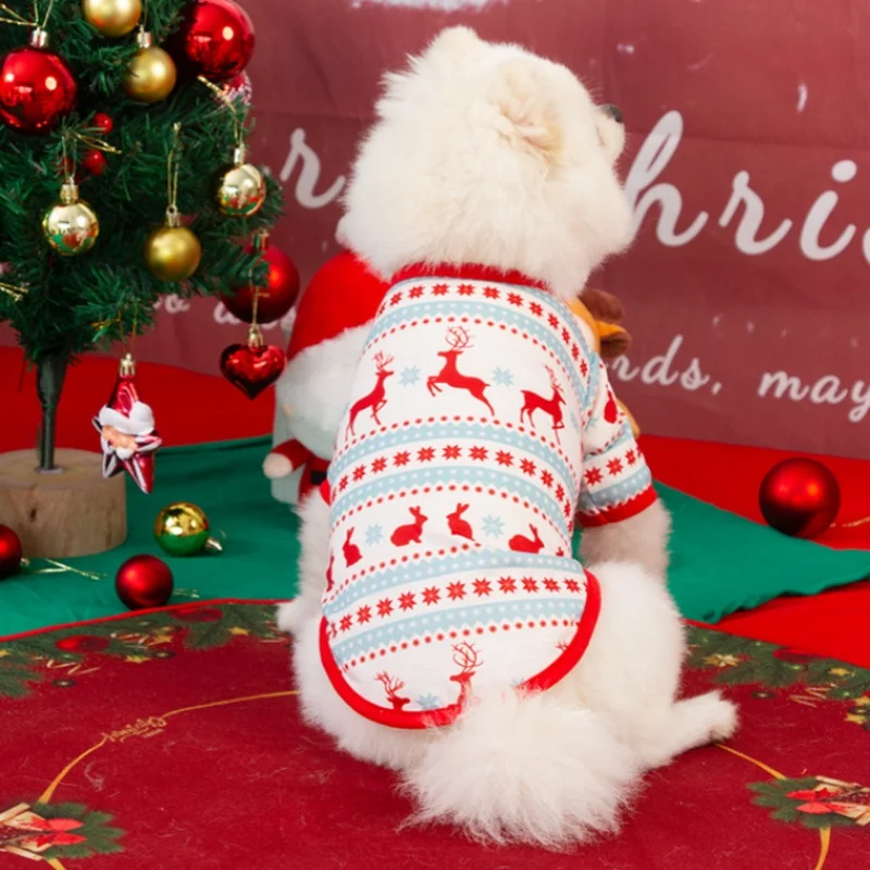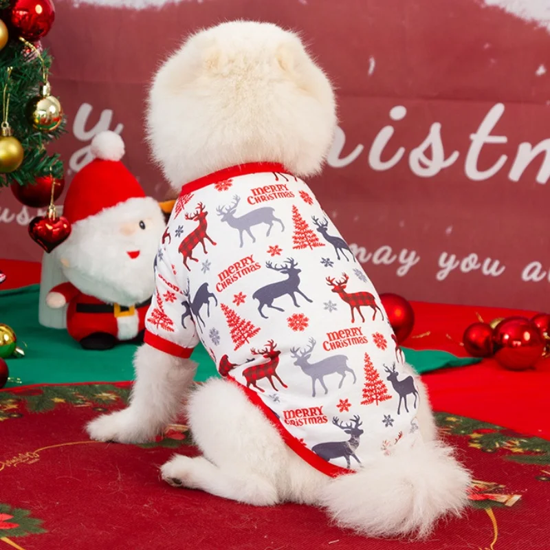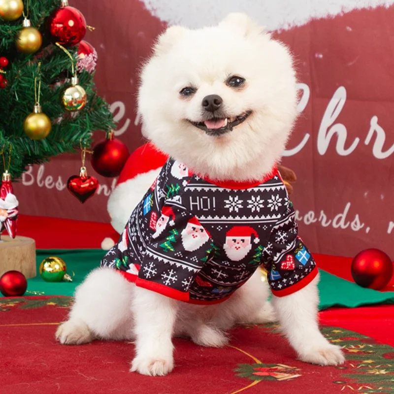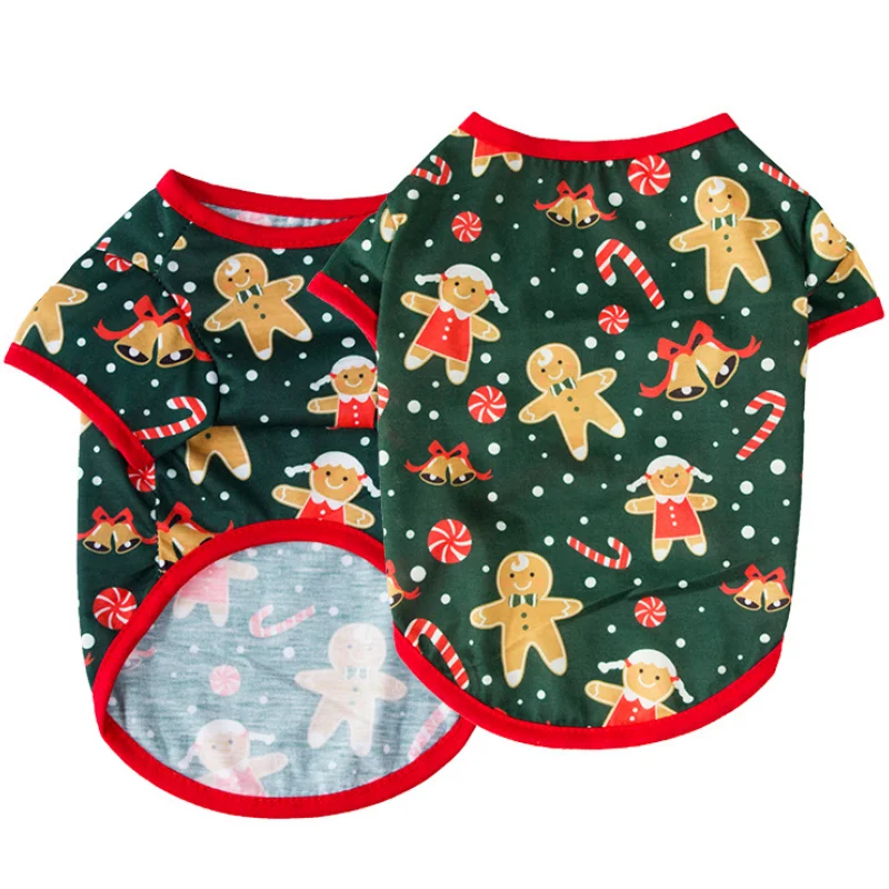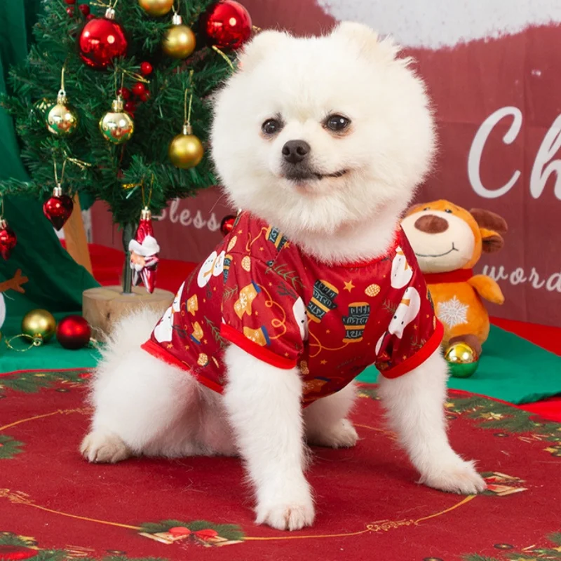 Camisa de moda para perros, ropa navideña para perros, jerseys para cachorros de Año Nuevo, camisa con estampado bonito para gatos, disfraces para mascotas con flecos bichon, suministros para perros