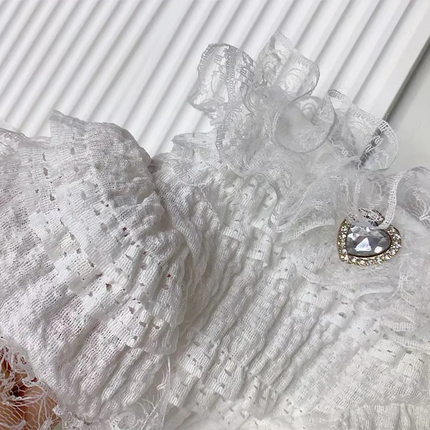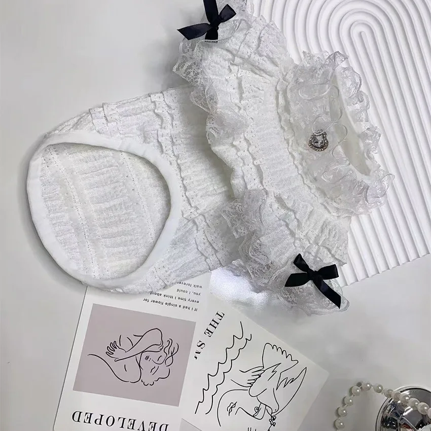 Camisa con parte inferior de encaje y cuello alto para mascotas, ropa para gatos, ropa de manga corta para perros y mascotas, ropa de princesa para cachorros