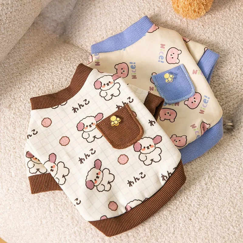 Camisa para perro mascota, sudadera con estampado de dibujos animados para perro, ropa de moda para cachorros, camisa suave para gato, jerséis de otoño para mascotas, ropa para perro Chihuahua