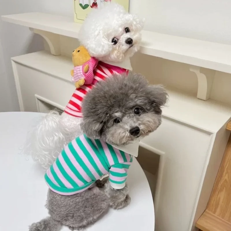 Camisa de primavera para perro, sudadera a rayas a la moda para perro, ropa para cachorros, Polo suave y bonito para gato, jerseys para mascotas, ropa informal para perro
