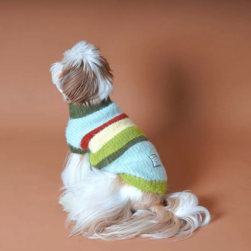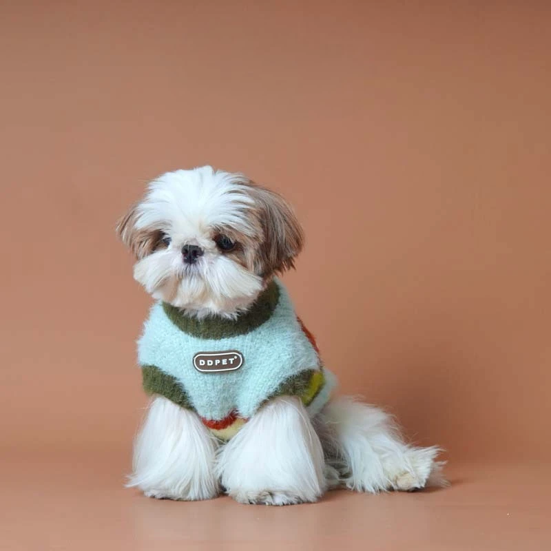 Camisa de punto a rayas para otoño/invierno para mascotas, suéter de peluche Schnauzer, chaleco de felpa para perros pequeños/gatos, ropa para perros pequeños