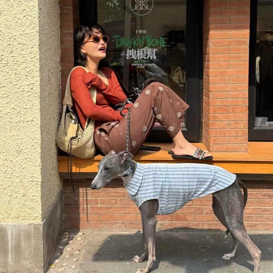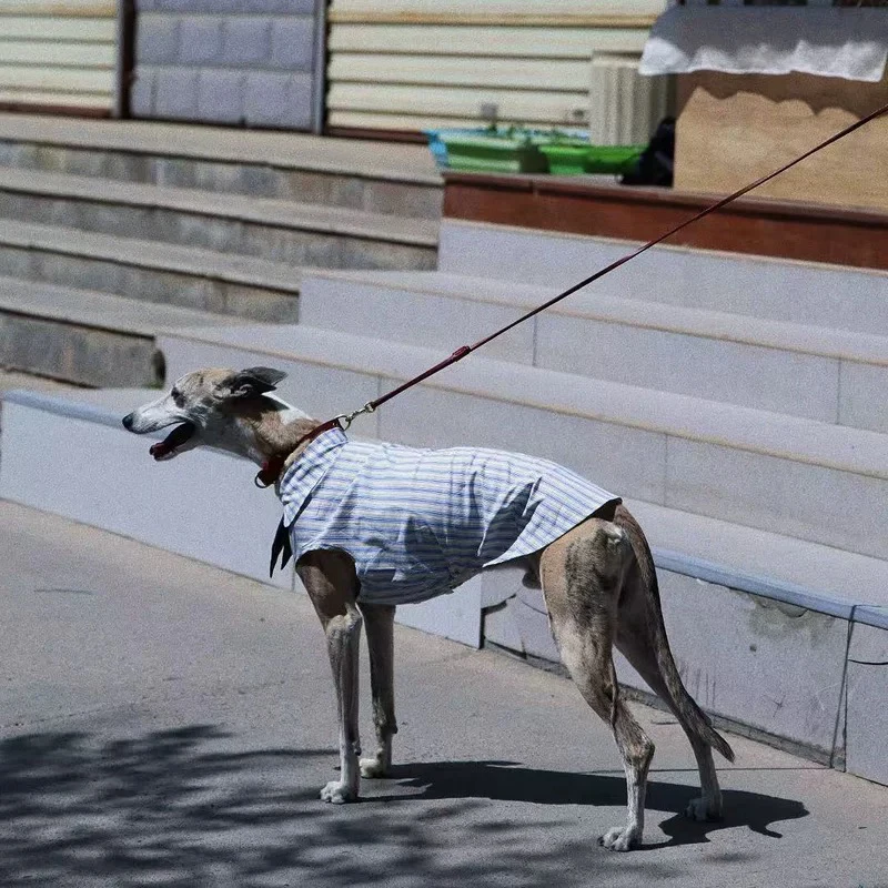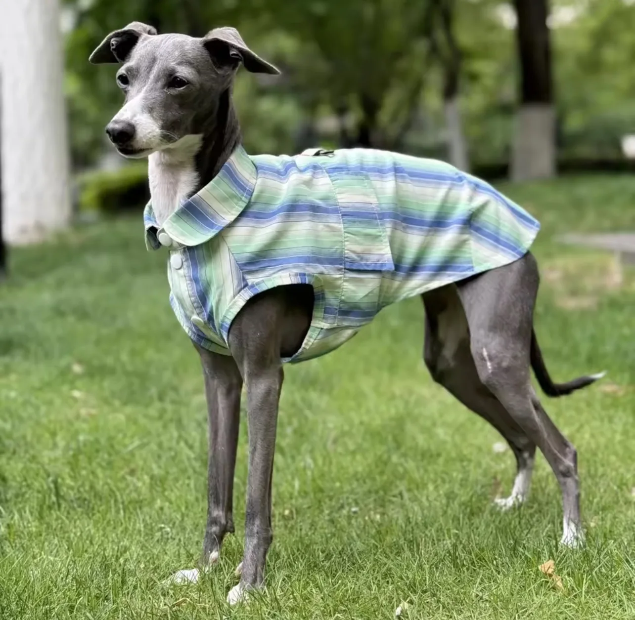 Camisa a rayas azules de moda para Chico italiano, fibra de seda helada, abrigo verde sin mangas de verano para Whipbit, perros pequeños de mediana edad