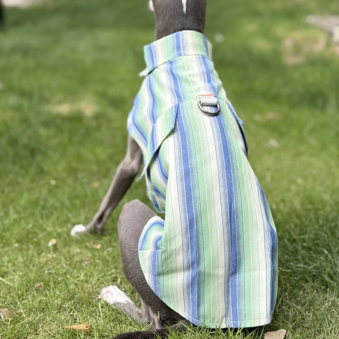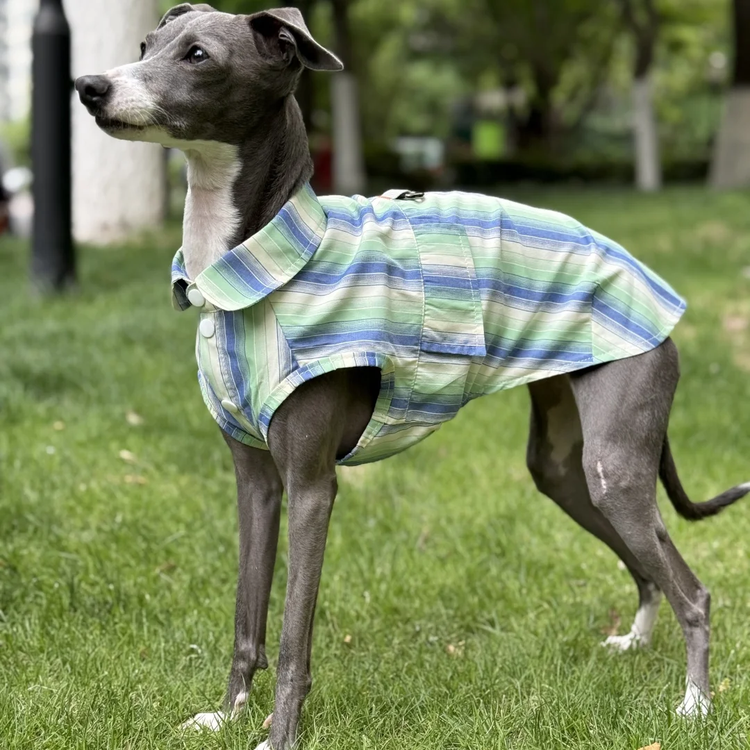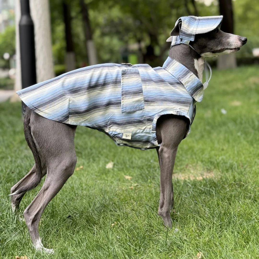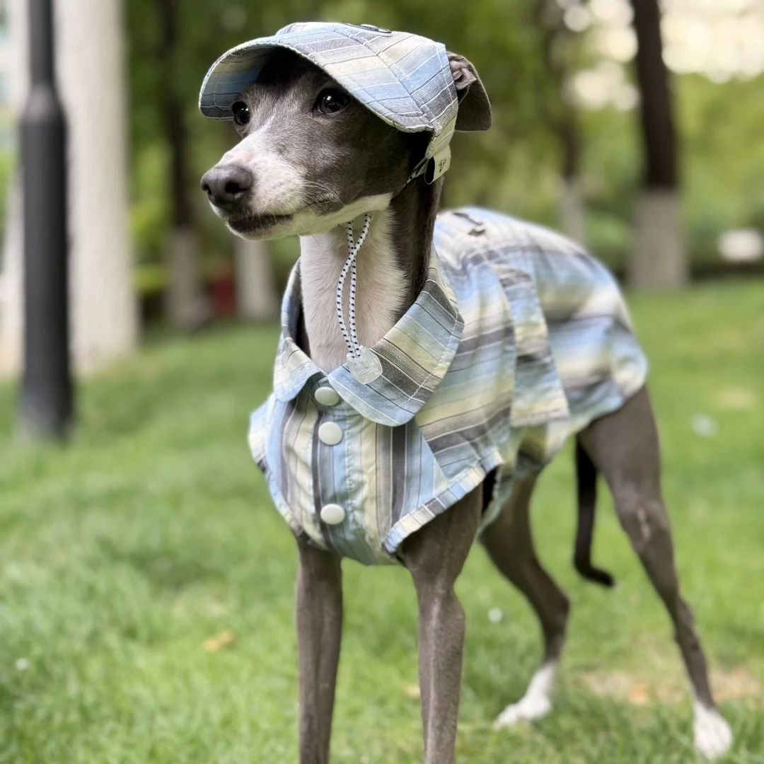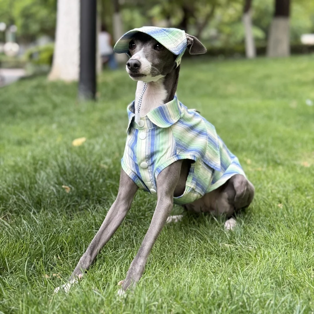 Camisa de rayas azules de protección solar para galgo italiano Abrigo verde sin mangas de fibra de seda de hielo para perros medianos Sombrero de verano para whippet